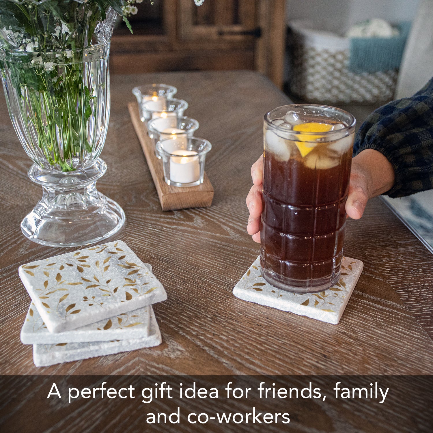 Thirstystone Gilded Vine 4-Pack Natural Marble Stone Coaster Manufactured in the USA