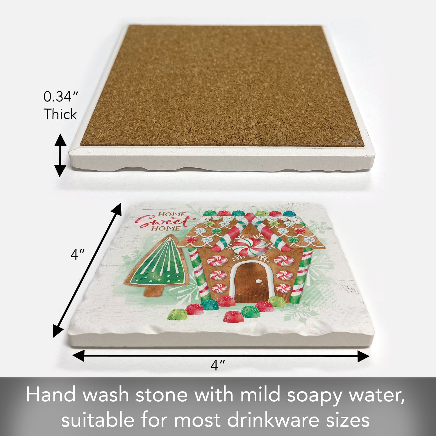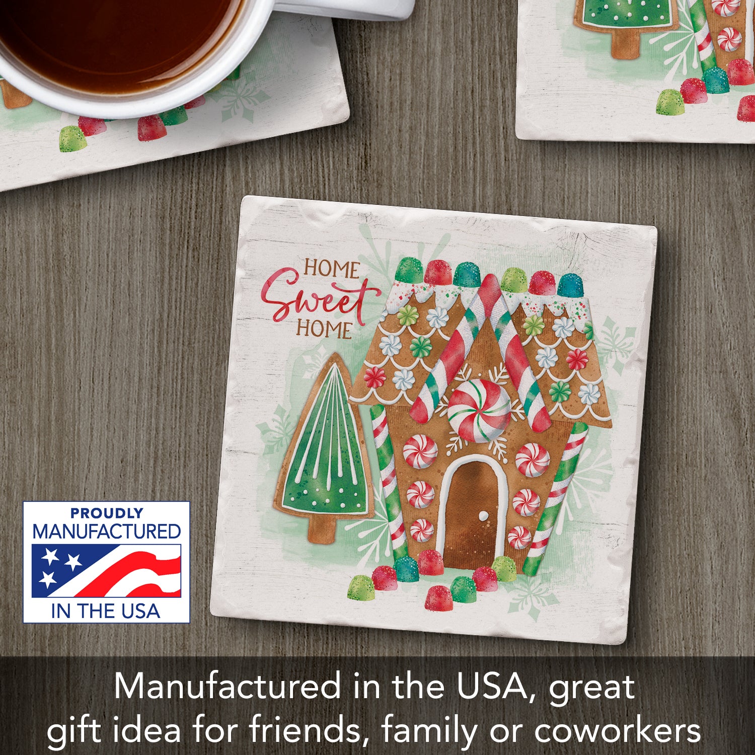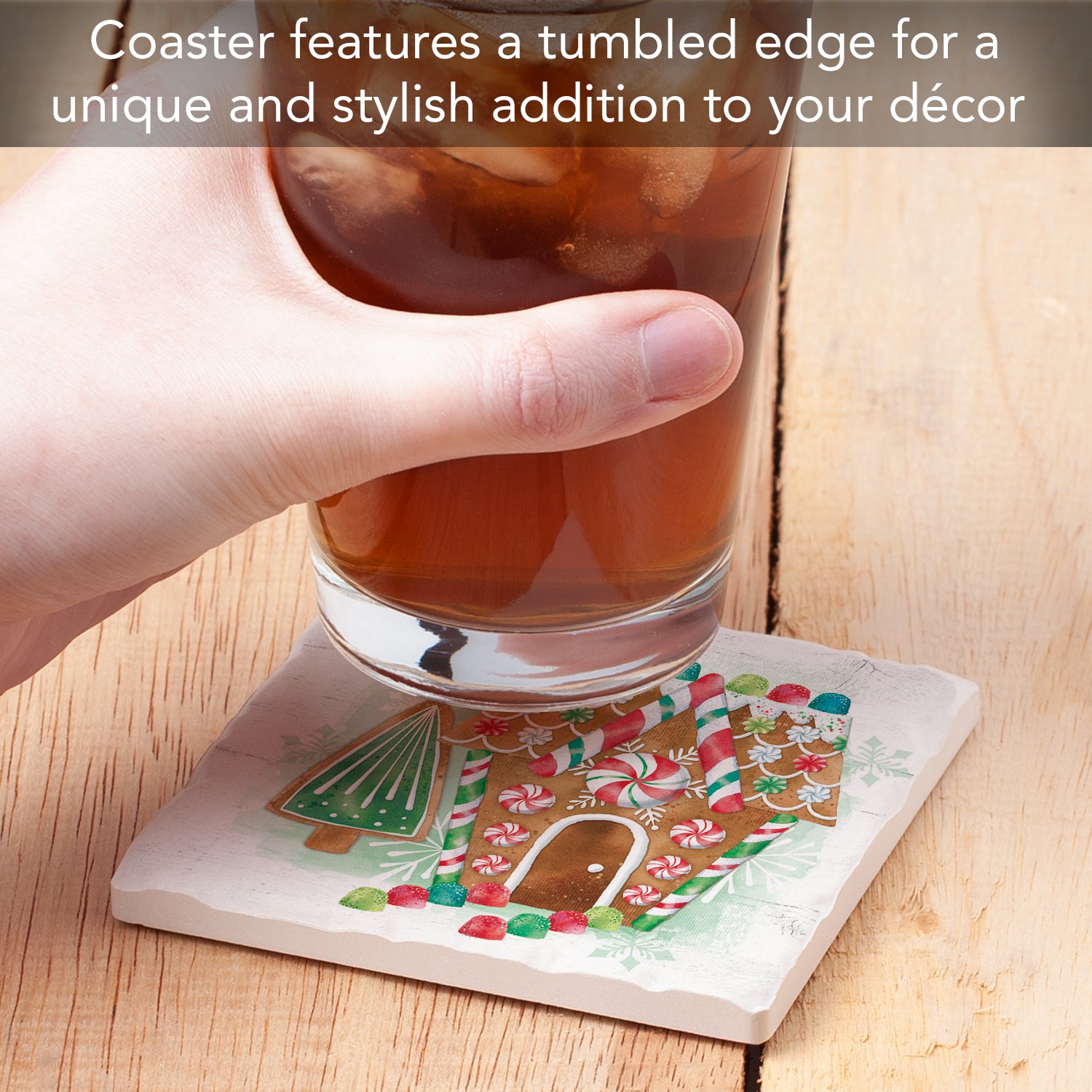 Thirstystone Gingerbread Home Single Tumbled Tile Stone Coaster with Protective Cork Backing Manufactured in The USA 4" Square, Artistic, Easily Wipes Clean