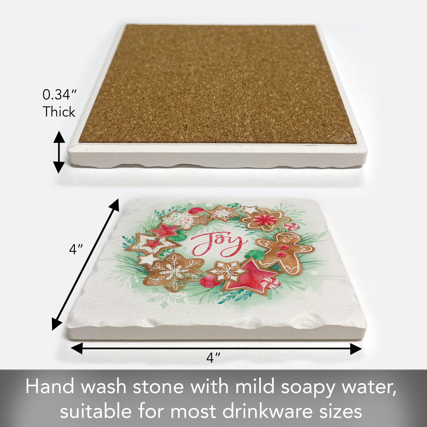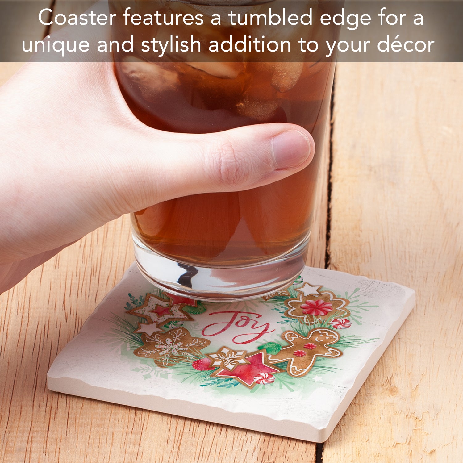 Thirstystone Gingerbread Joy Single Tumbled Tile Stone Coaster with Protective Cork Backing Manufactured in The USA 4" Square, Artistic, Easily Wipes Clean