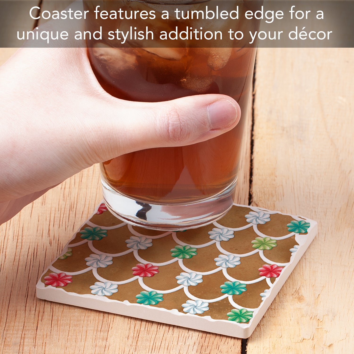 Thirstystone Gingerbread Rooftop Single Tumbled Tile Stone Coaster with Protective Cork Backing Manufactured in The USA 4" Square, Artistic, Easily Wipes Clean