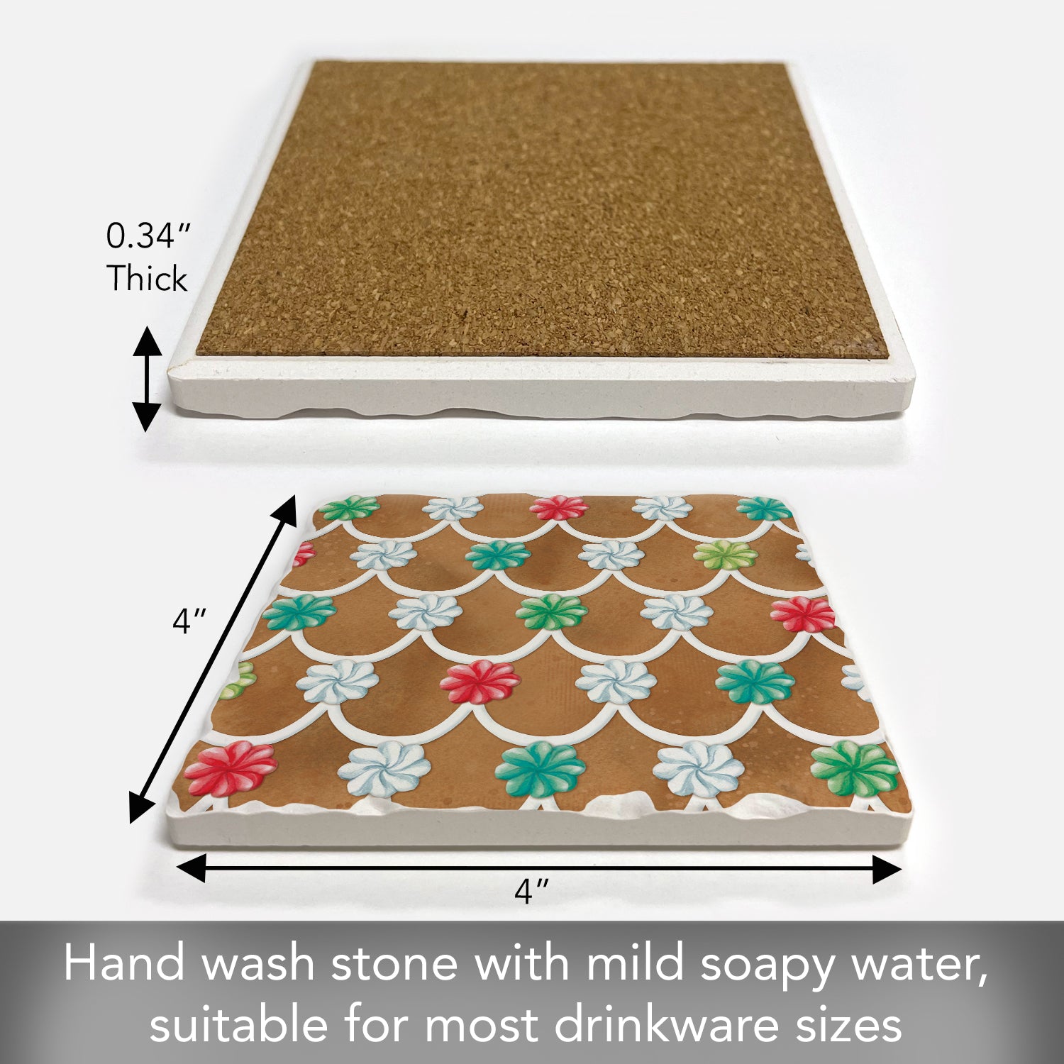 FUNCTIONAL ART-Beautiful artistic design allows the Coaster to remain displayed even when not in use. Each Coaster measures 4” x 4” x .25”. Sized to fit larger Mugs & Glasses.