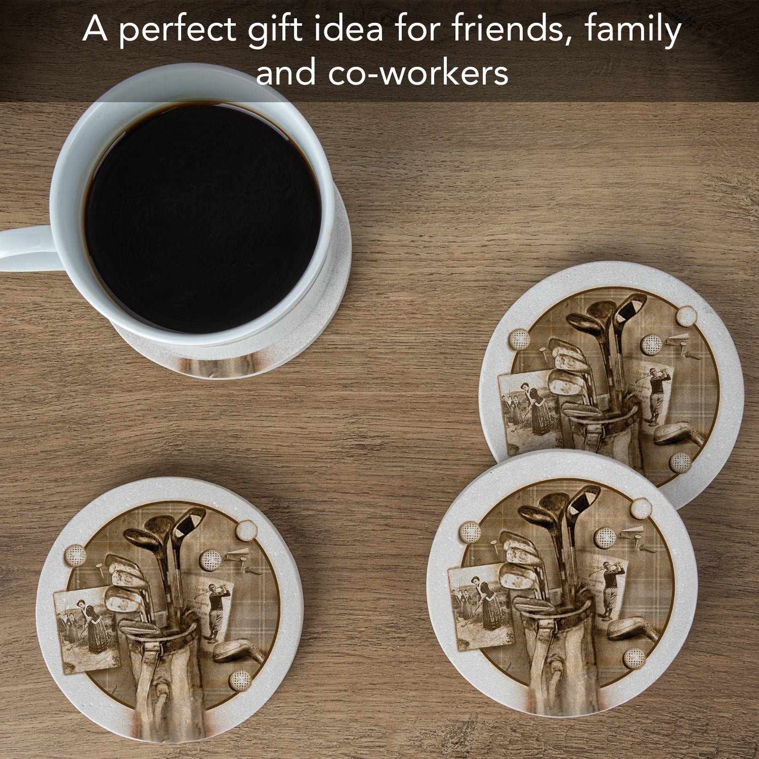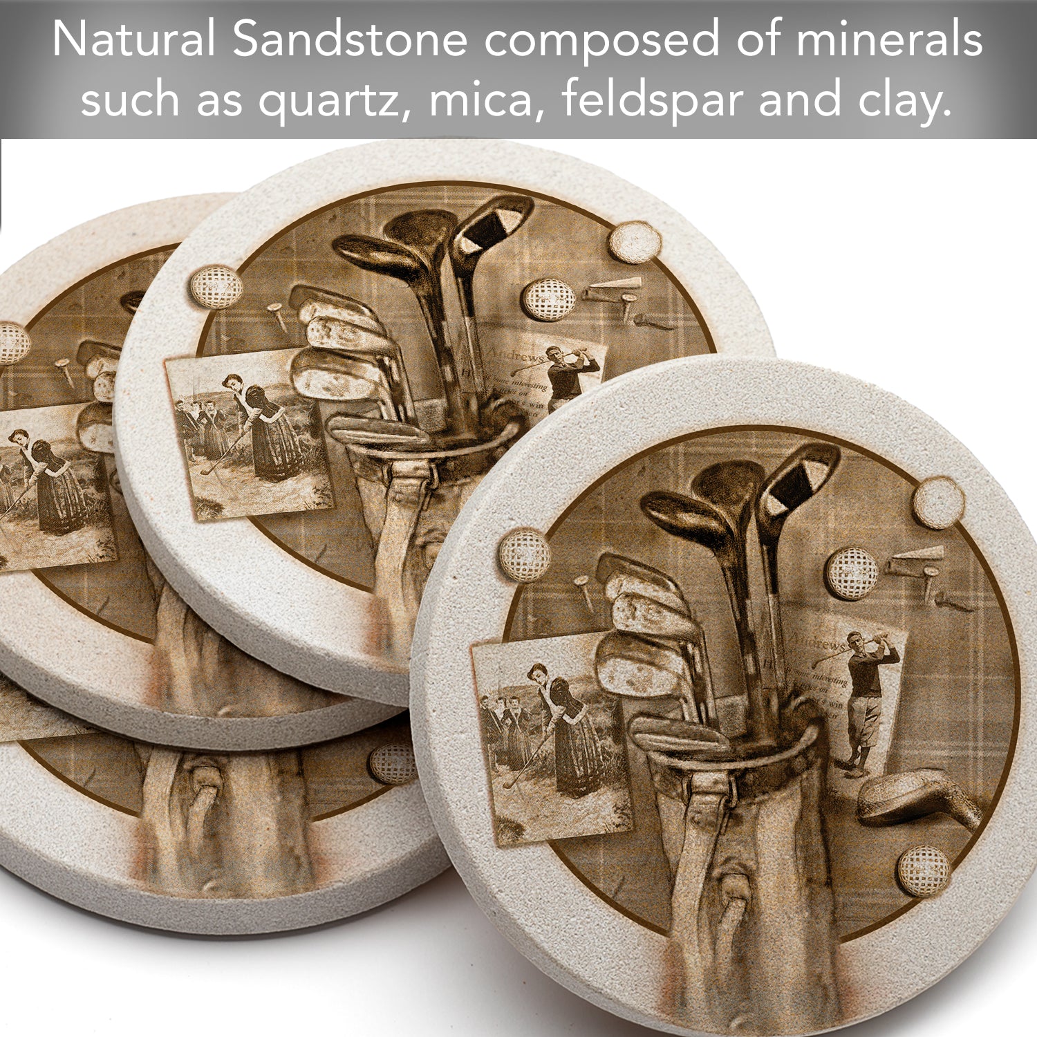 Thirstystone Golf Treasures 4 Pack Natural Sandstone Coasters 4" Round