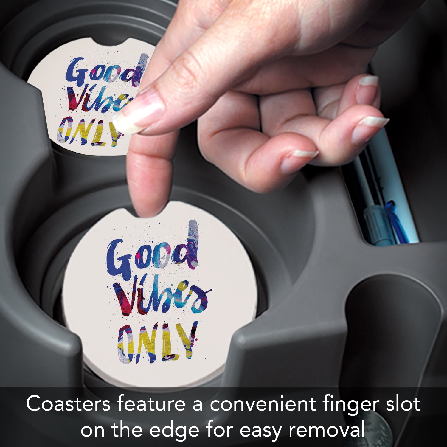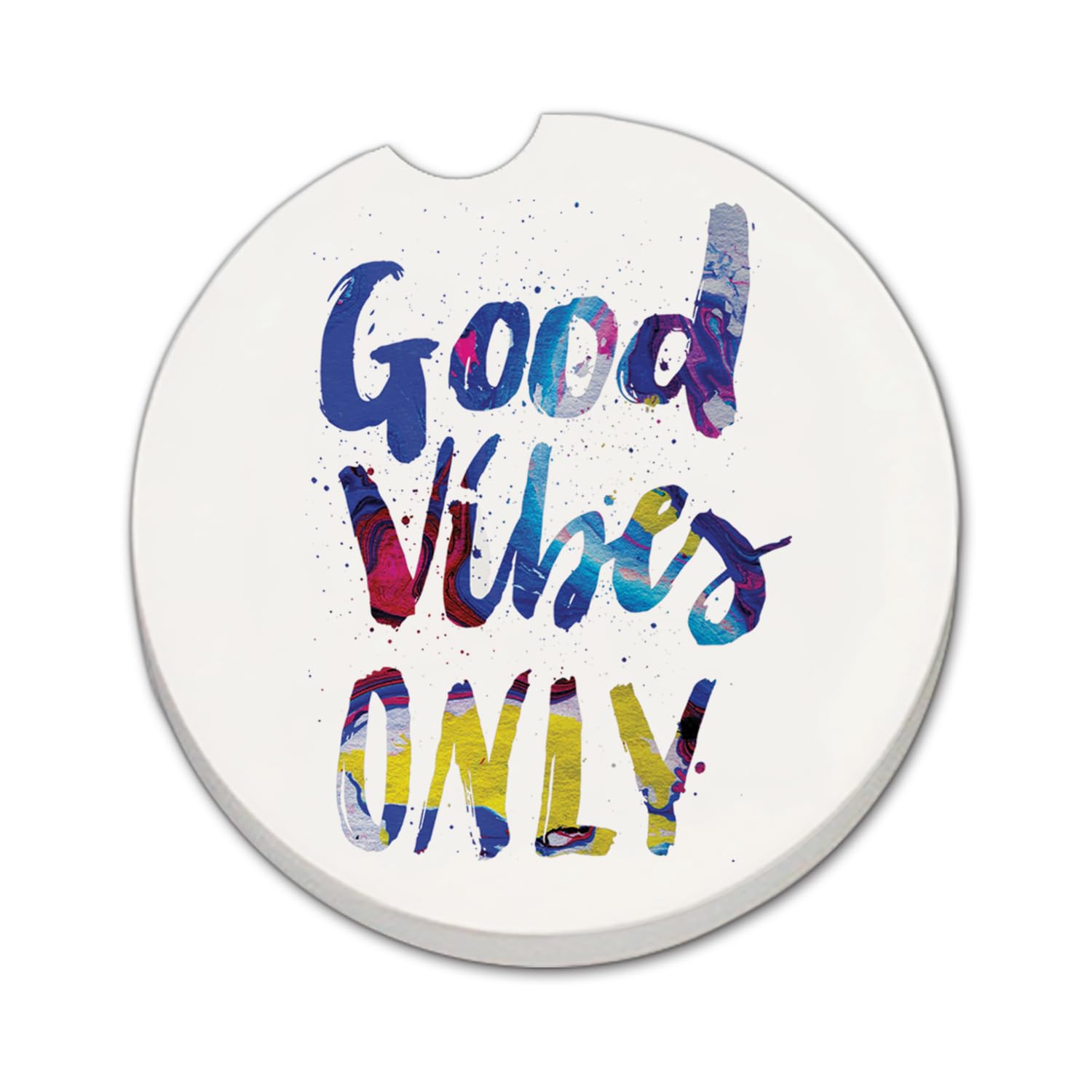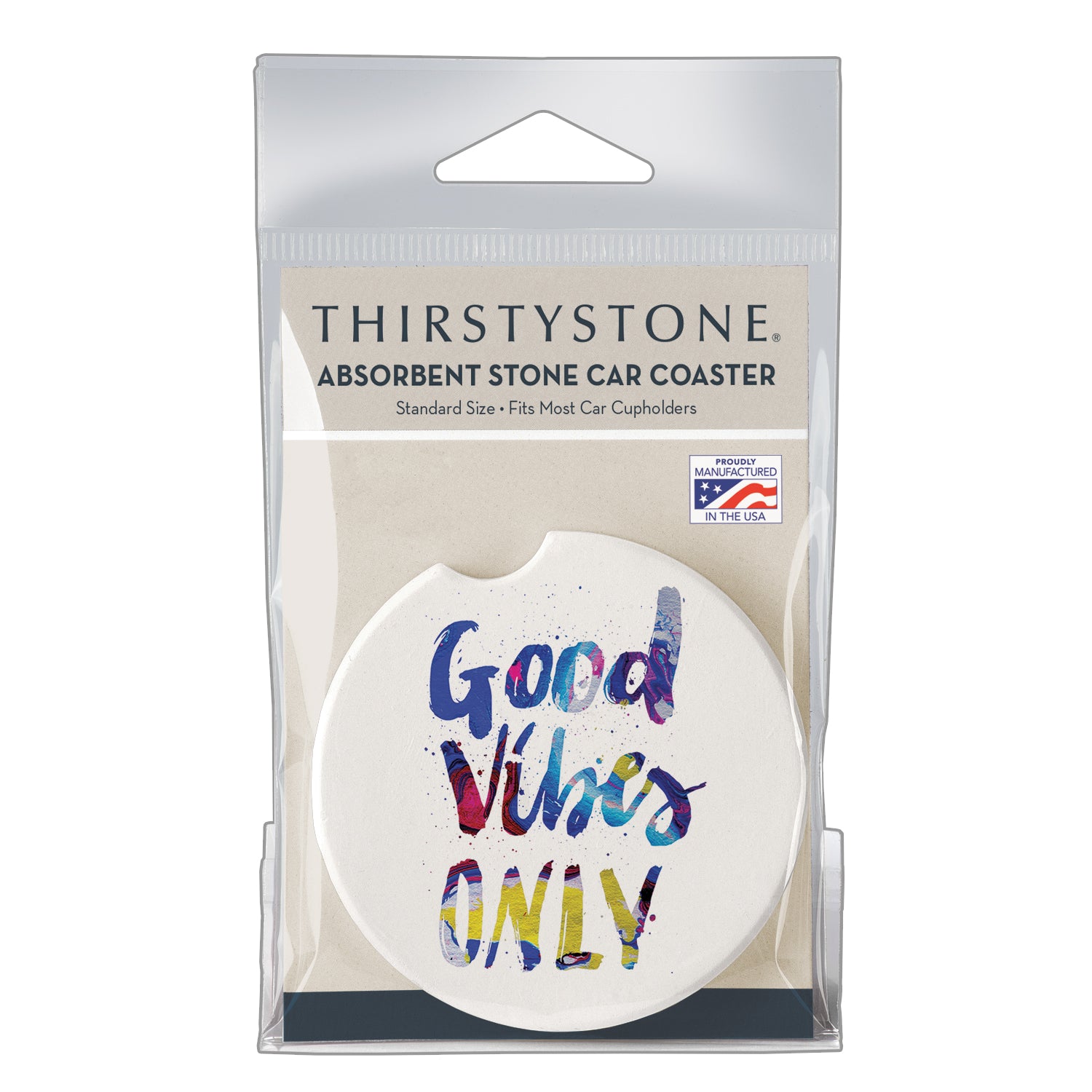 Thirstystone Good Vibes Only Single Absorbent Stone Car Coaster 2.6” Diameter Manufactured in the USA