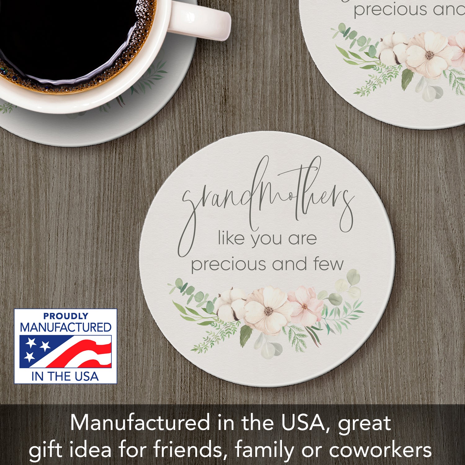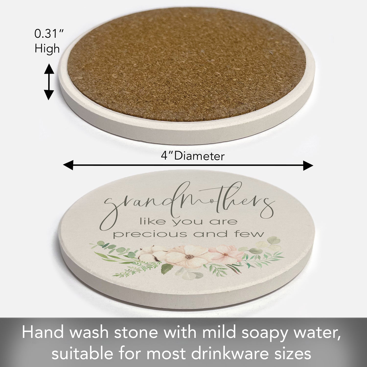 Thirstystone Grandmothers Single Round Absorbent Stone Coaster with Protective Cork Backing Manufactured in The USA 4" Diameter