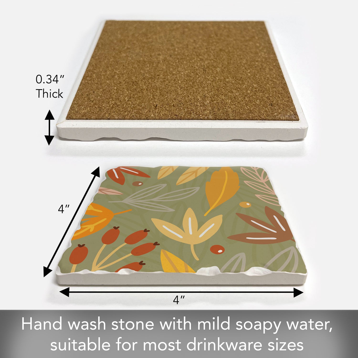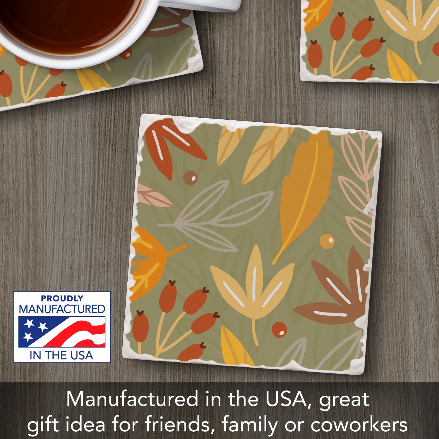 Thirstystone Green Fall Single Tumbled Tile Stone Coaster with Protective Cork Backing Manufactured in The USA 4" Square, Colorful, Artistiic, Easily Wipes Clean