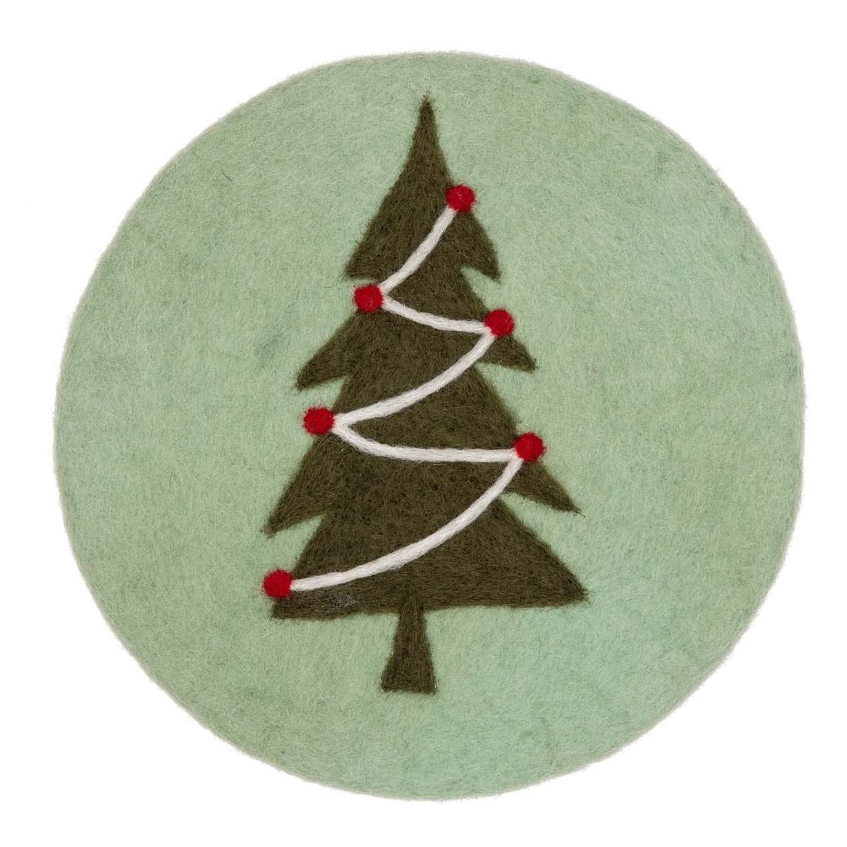 Thirstystone Green Felted Wool Tree Trivet 8.25” Diameter Protects Countertops, Decorative, Easily Wipes Clean