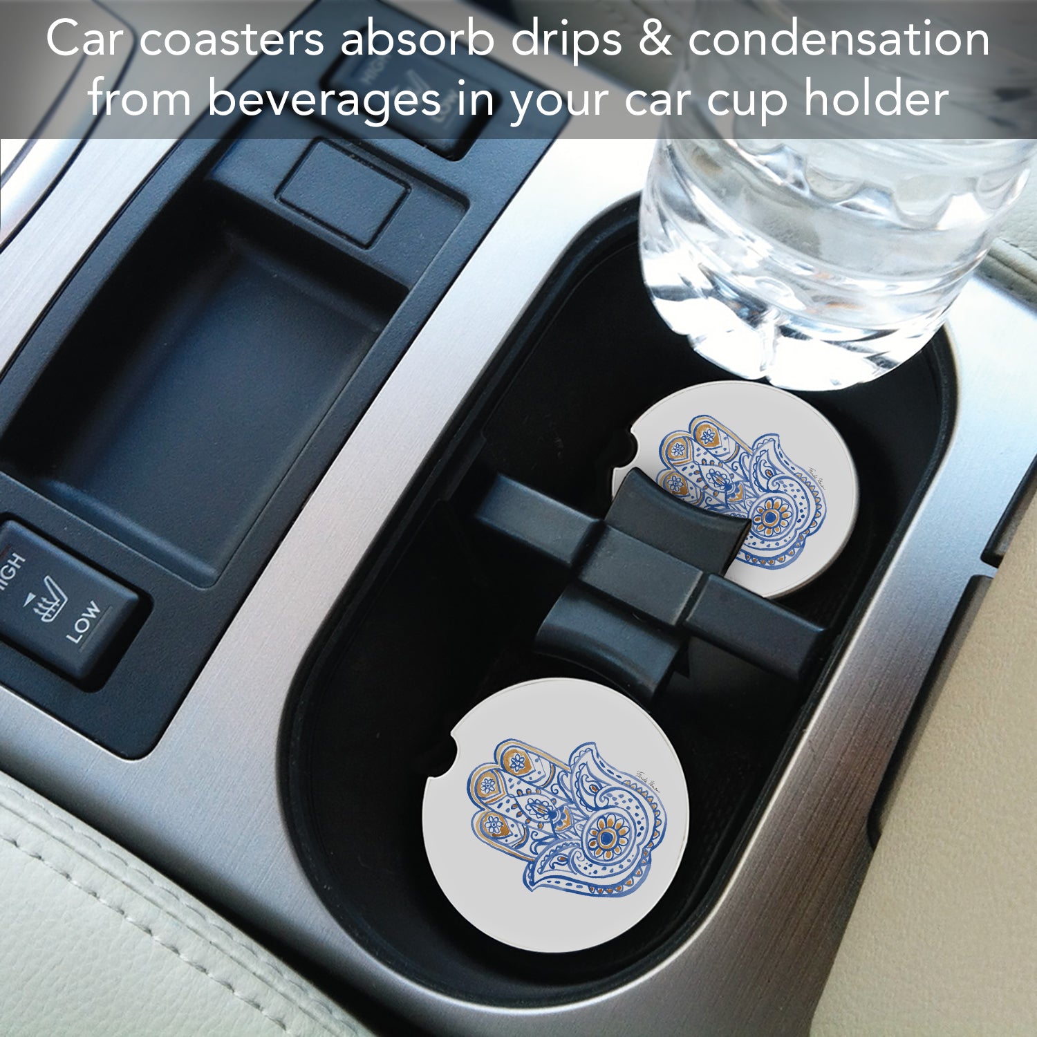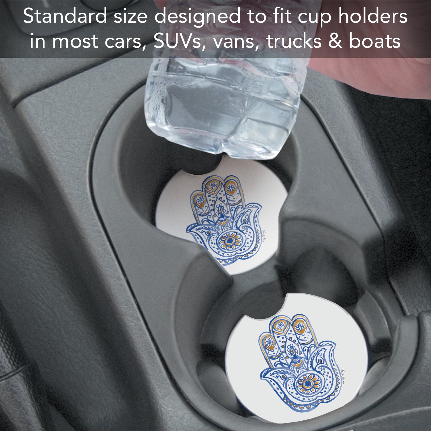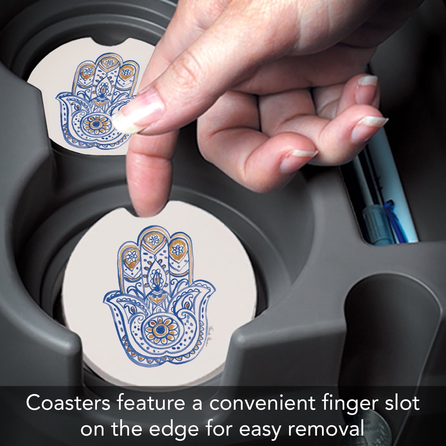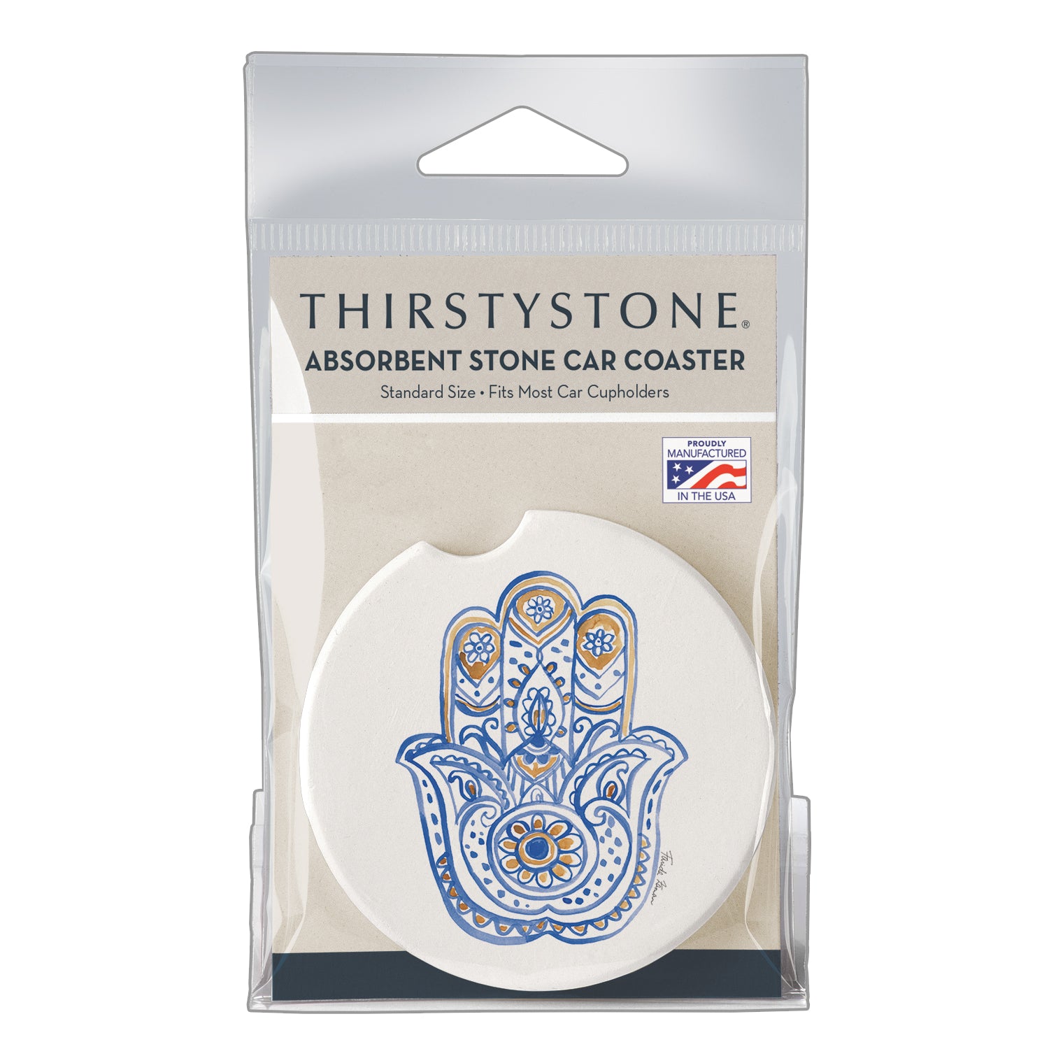 Thirstystone Hamsa Single Absorbent Stone Coaster for Vehicle Cup Holder 2.6” Diameter Manufactured in The USA