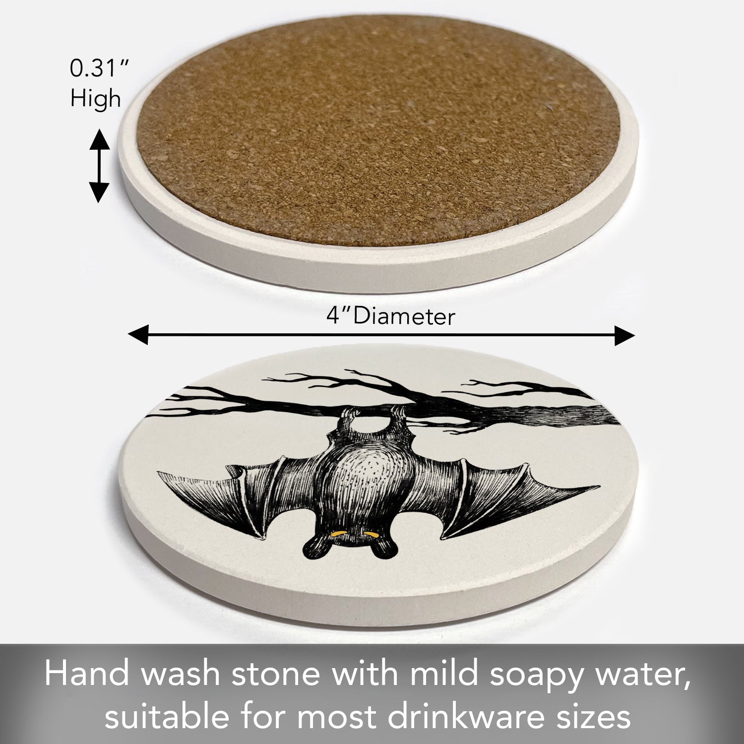 Thirstystone Hanging Bat Round Absorbent Stone Coaster with Protective Cork Backing Manufactured in The USA 4" Diameter