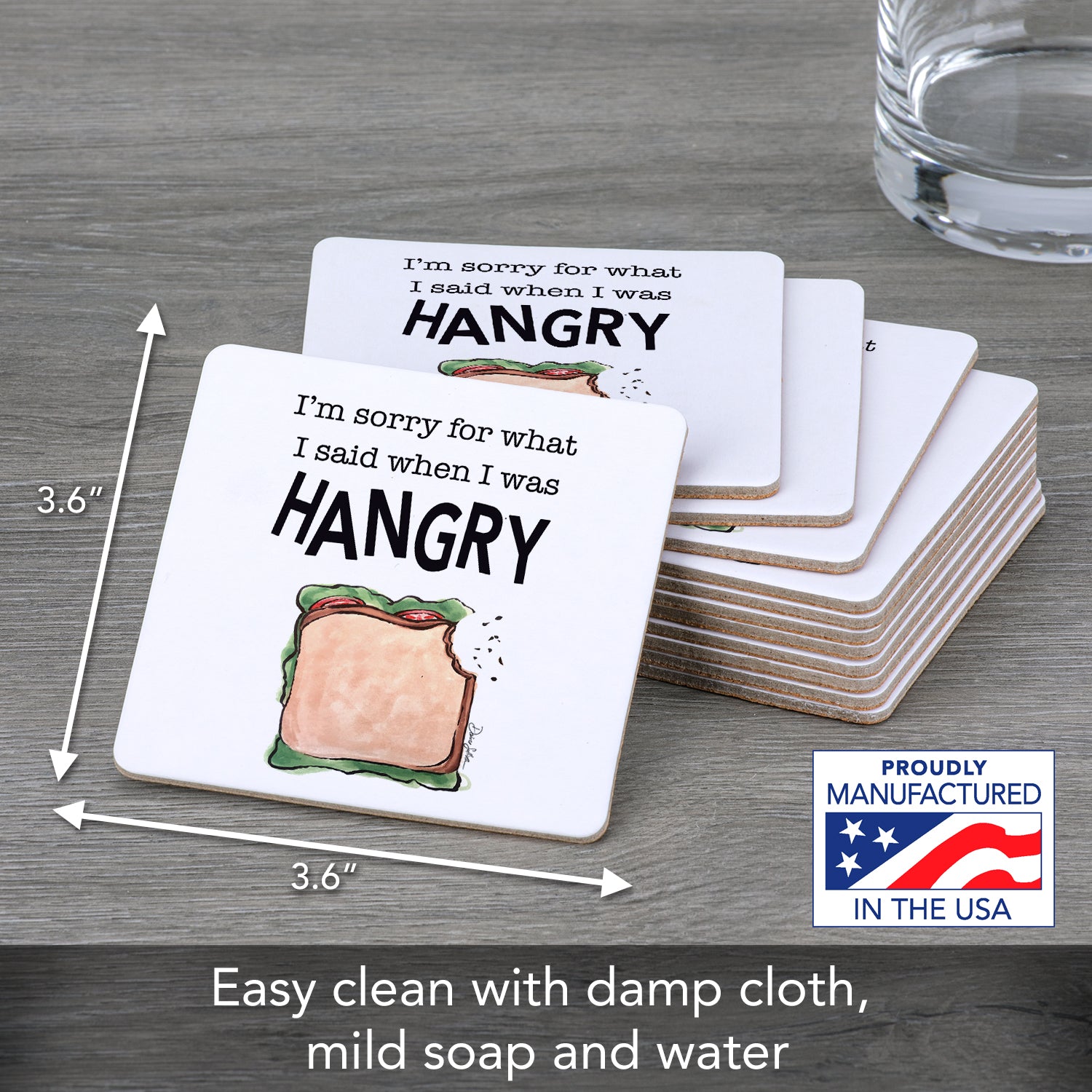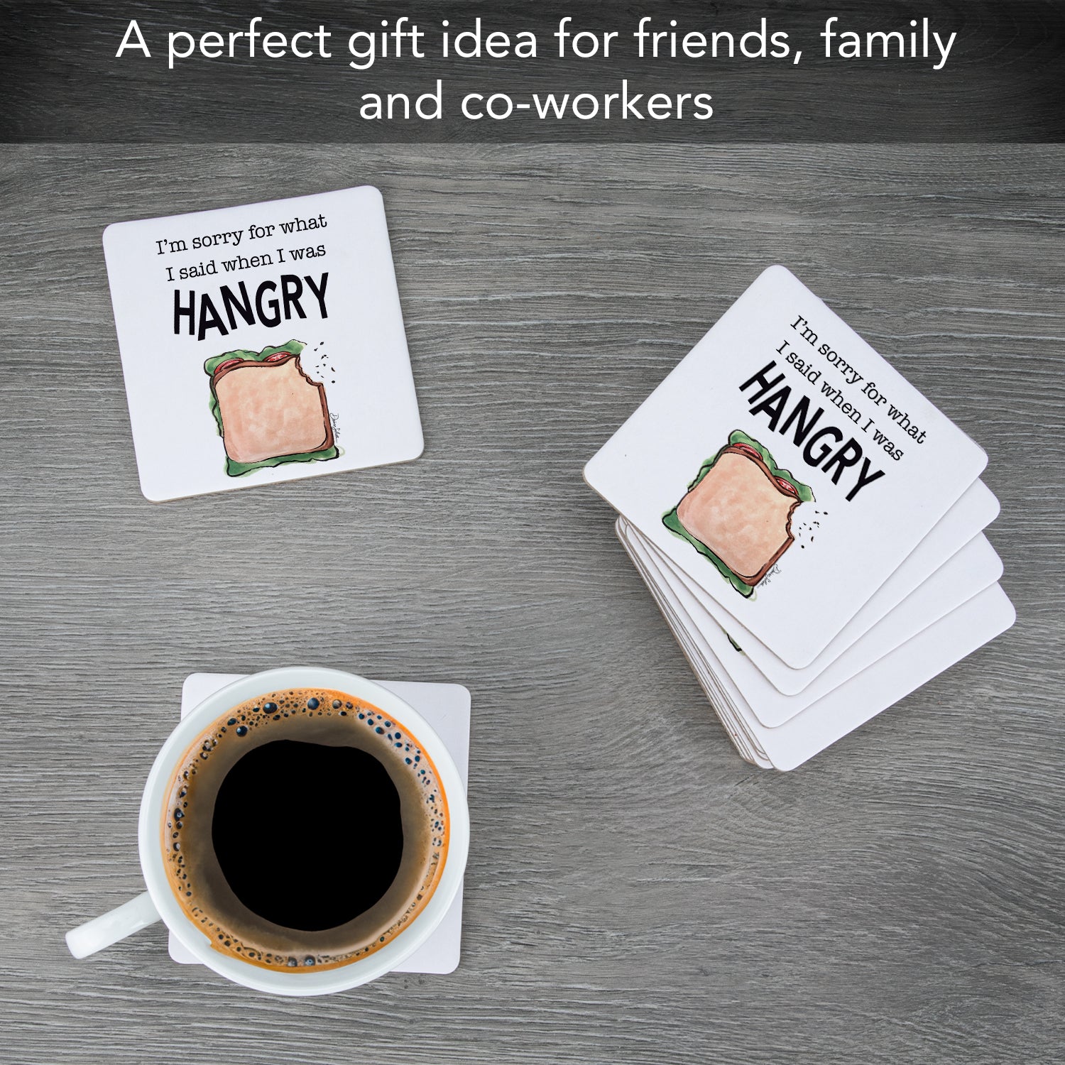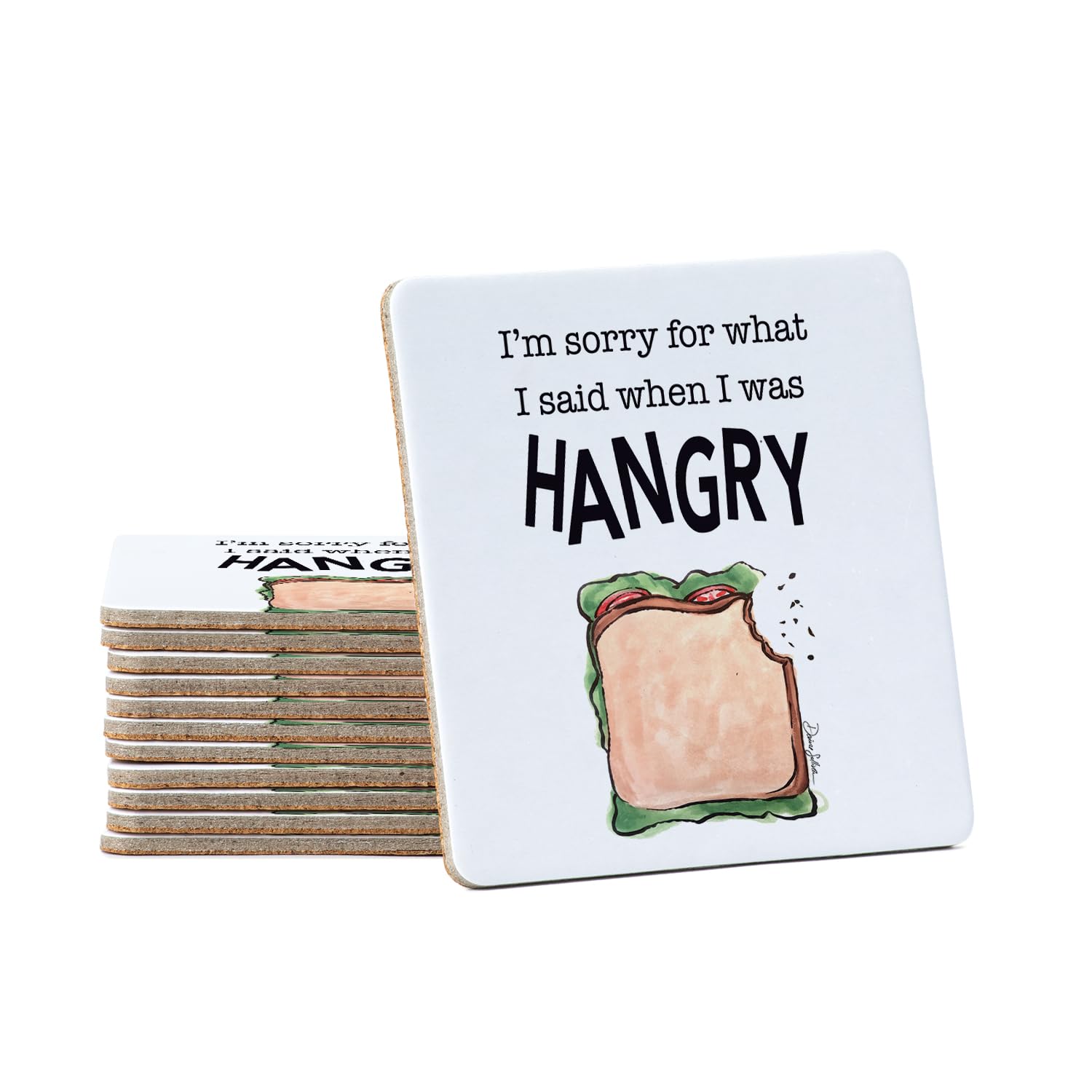 Thirstystone Hangry 12-Pack Cork Back Paper Bar Coasters Made in The USA Humourous Quotes Attractive Designs
