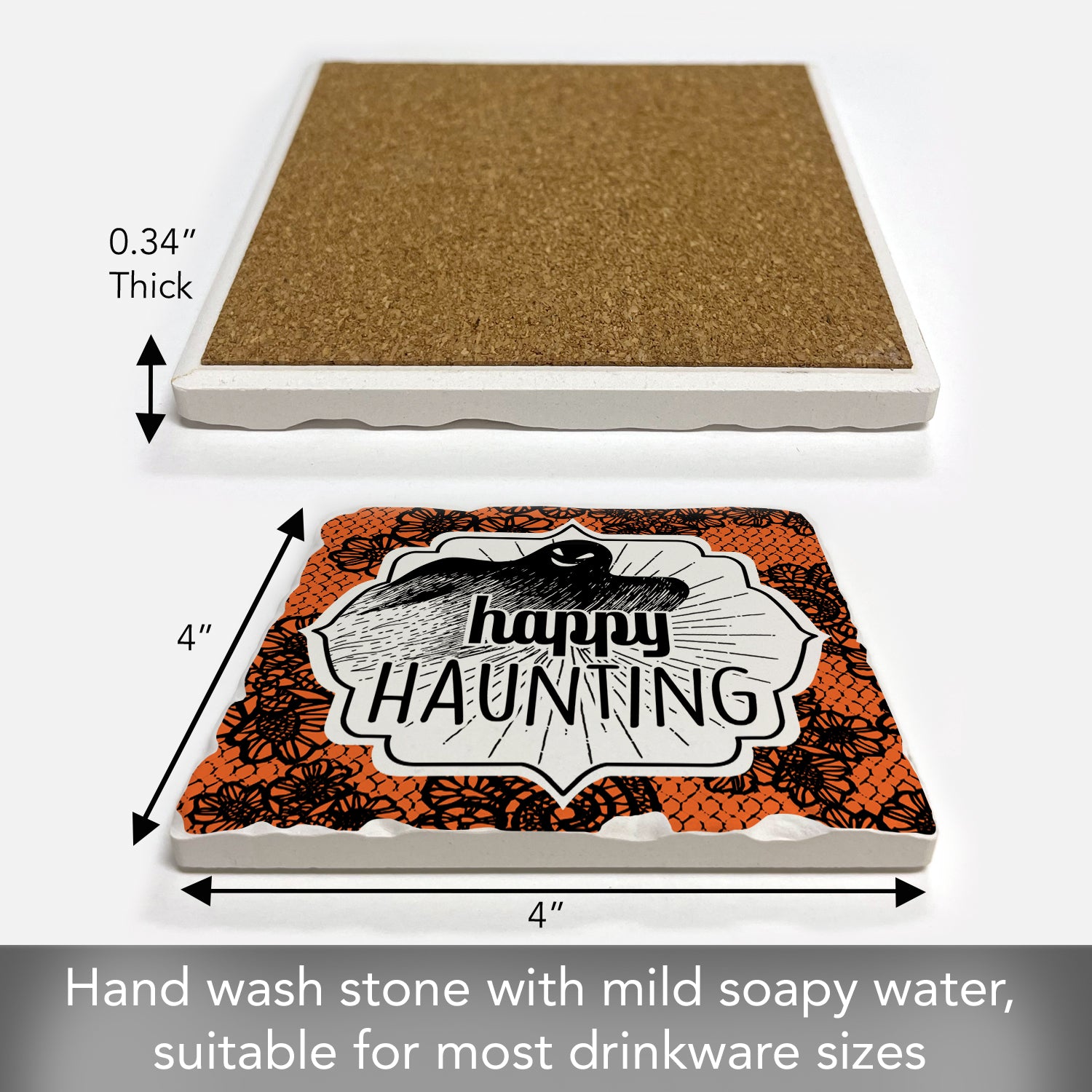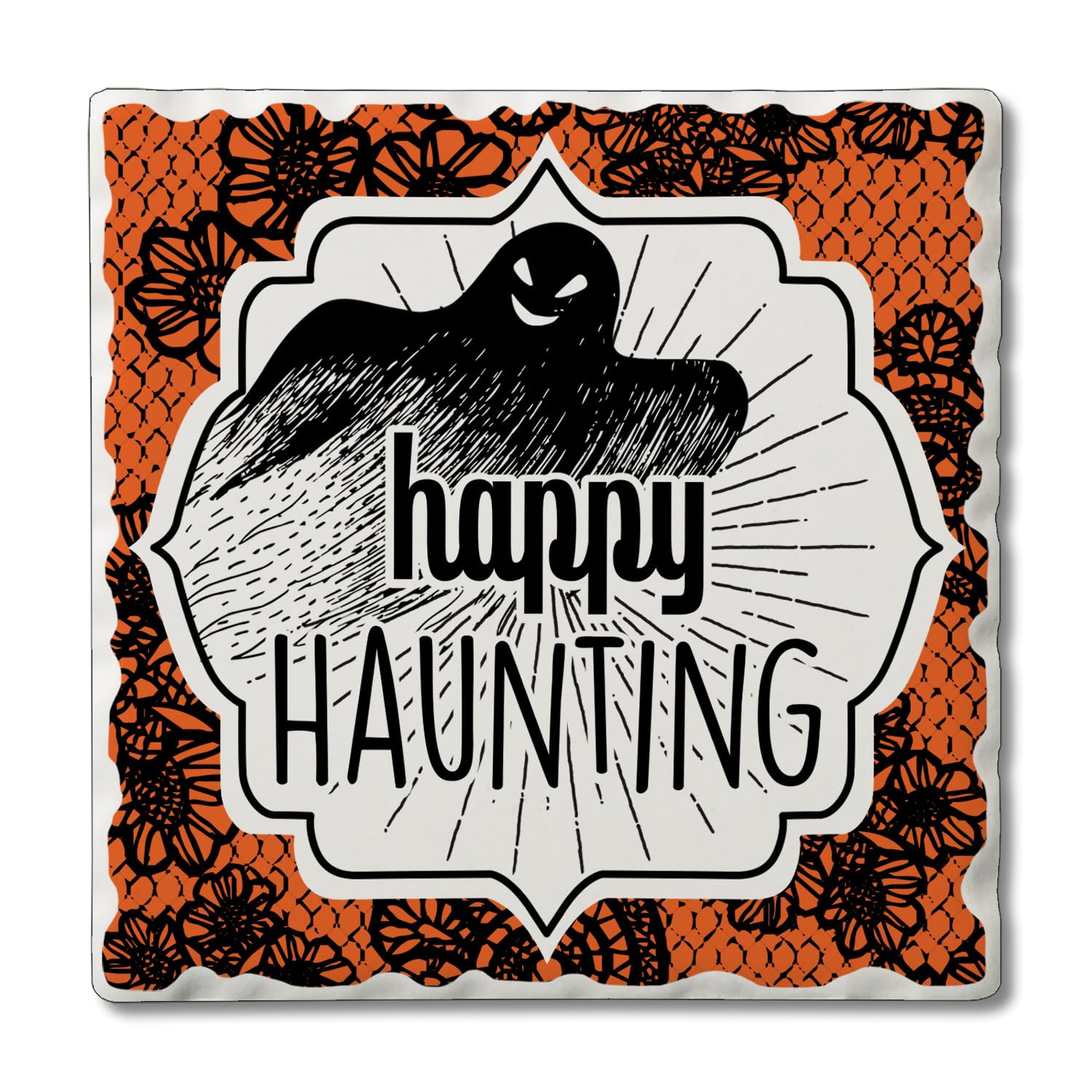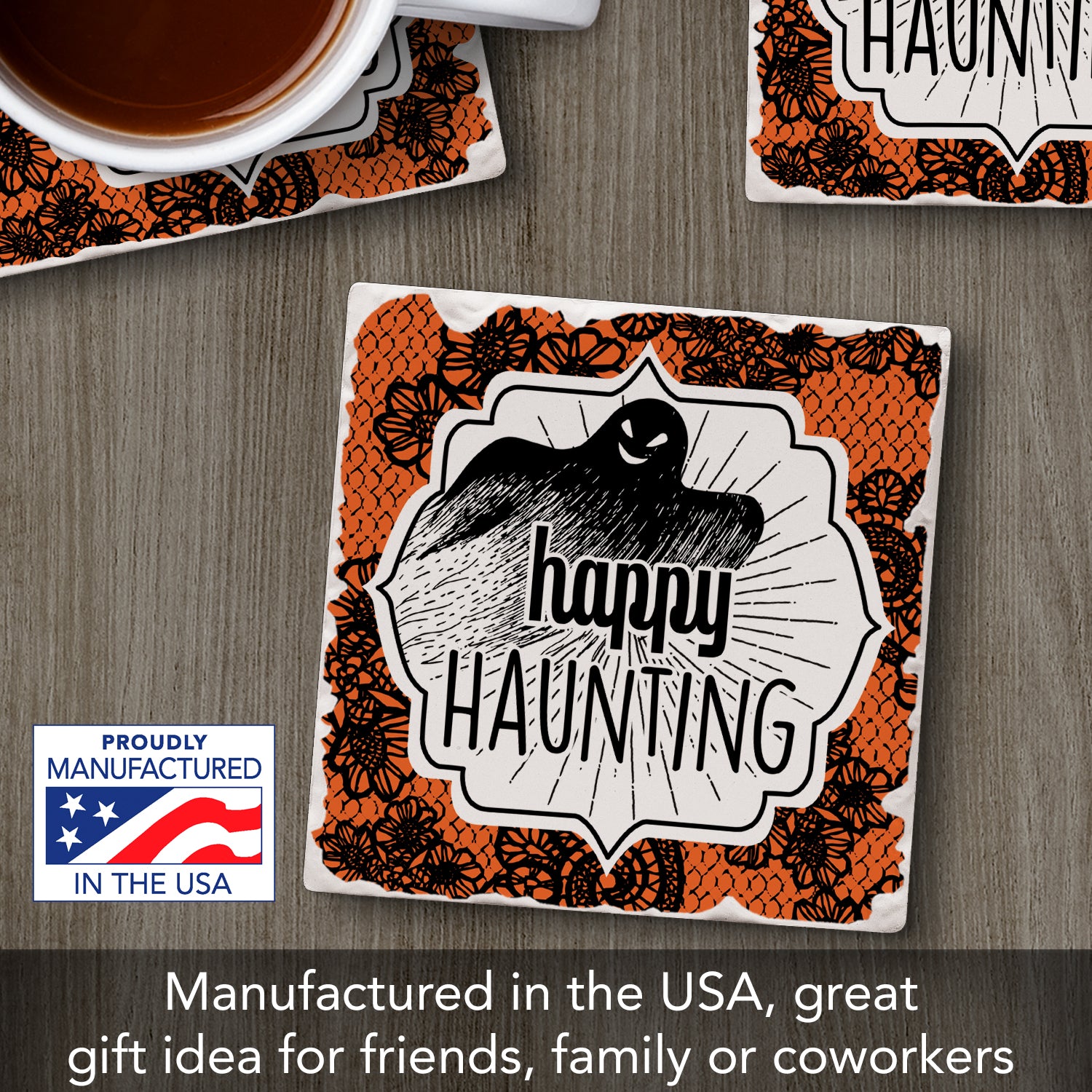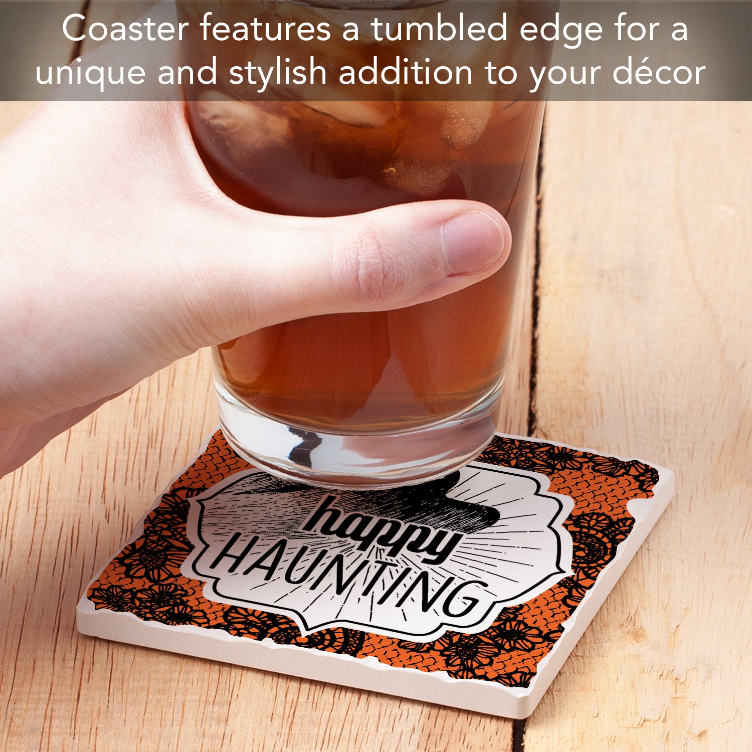 Thirstystone Happy Haunting Single Tumbled Tile Stone Coaster with Protective Cork Backing Manufactured in The USA 4" Square, Colorful, Artistiic, Easily Wipes Clean