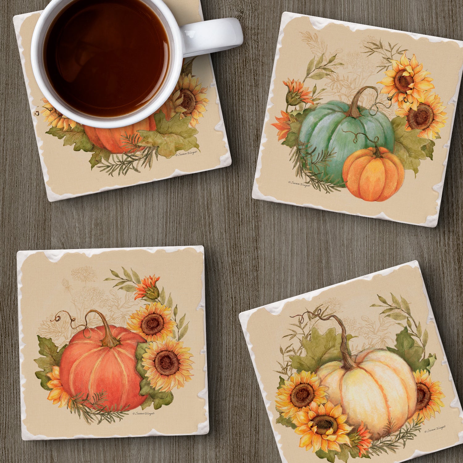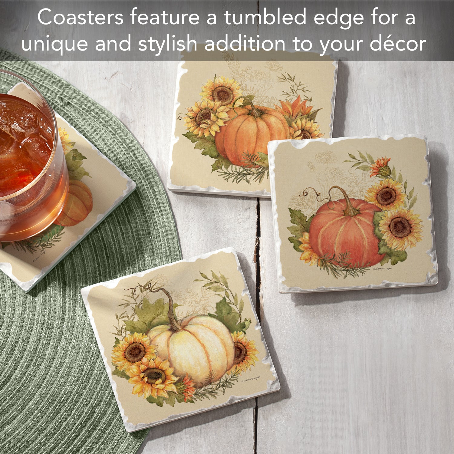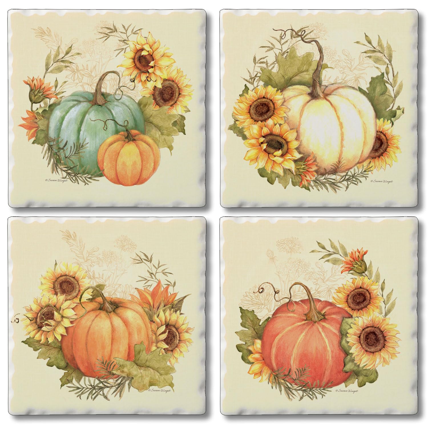 Thirstystone Harvest Field 4 Pack Assorted Tumbled Tile Stone Coasters 4" Square