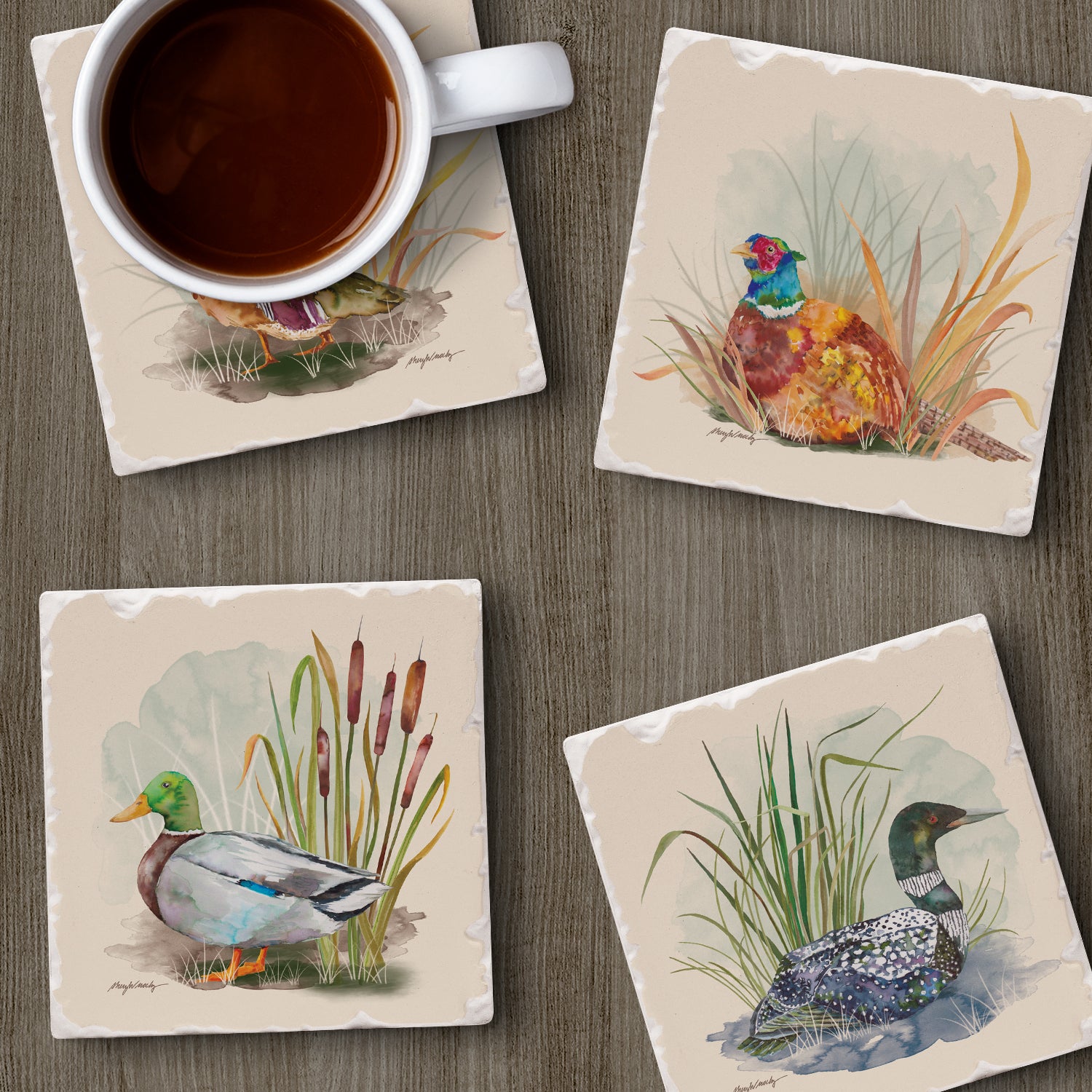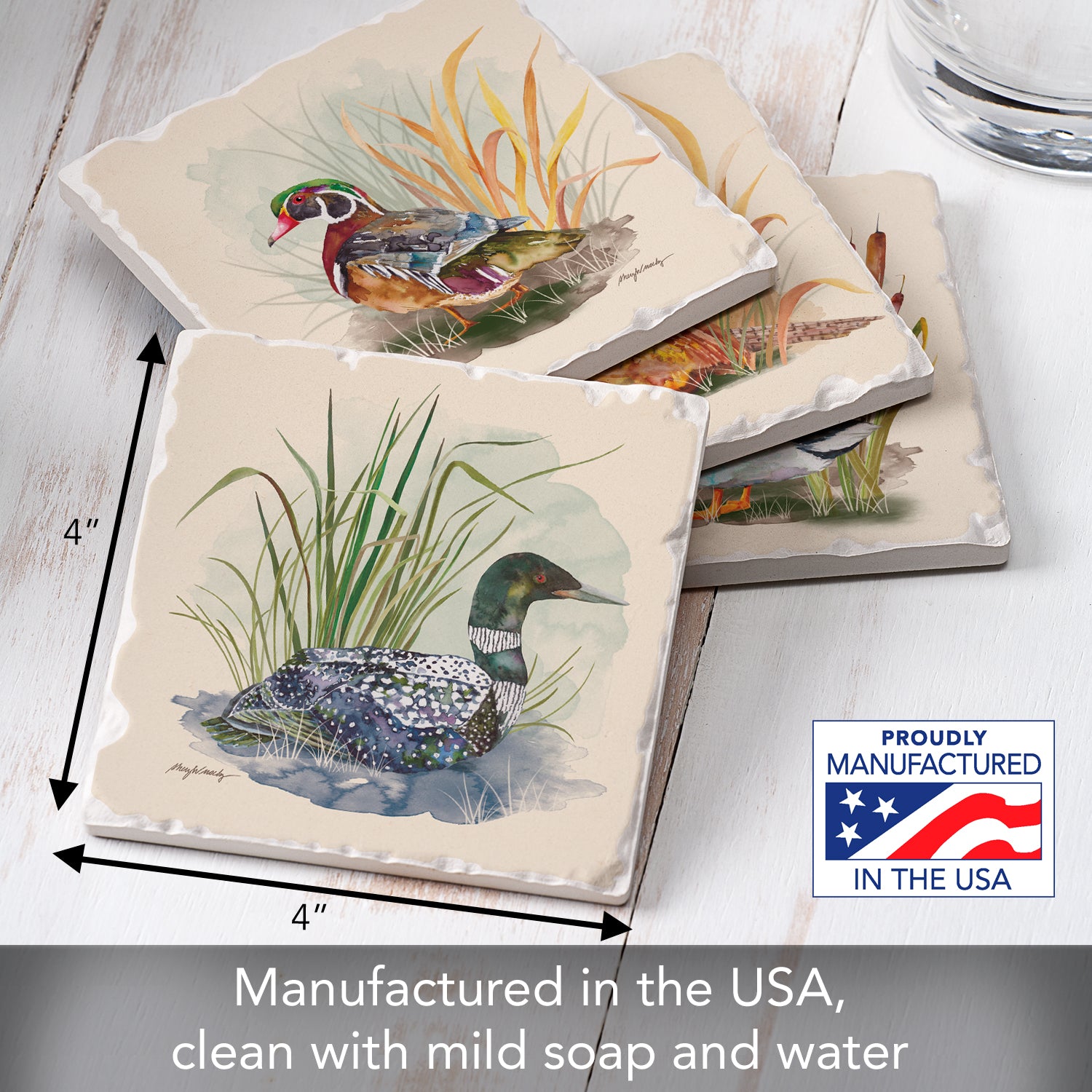Thirstystone Water Fowl 4-Pack Tumbled Tile Stone Coasters 4" Square