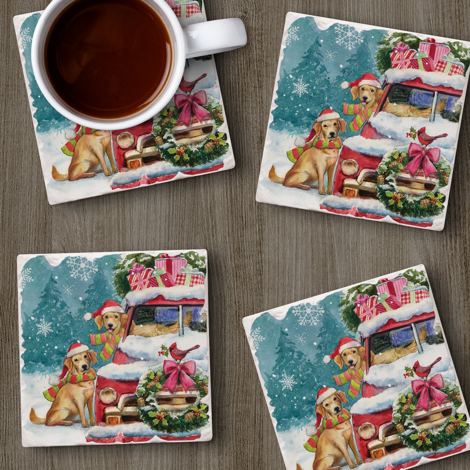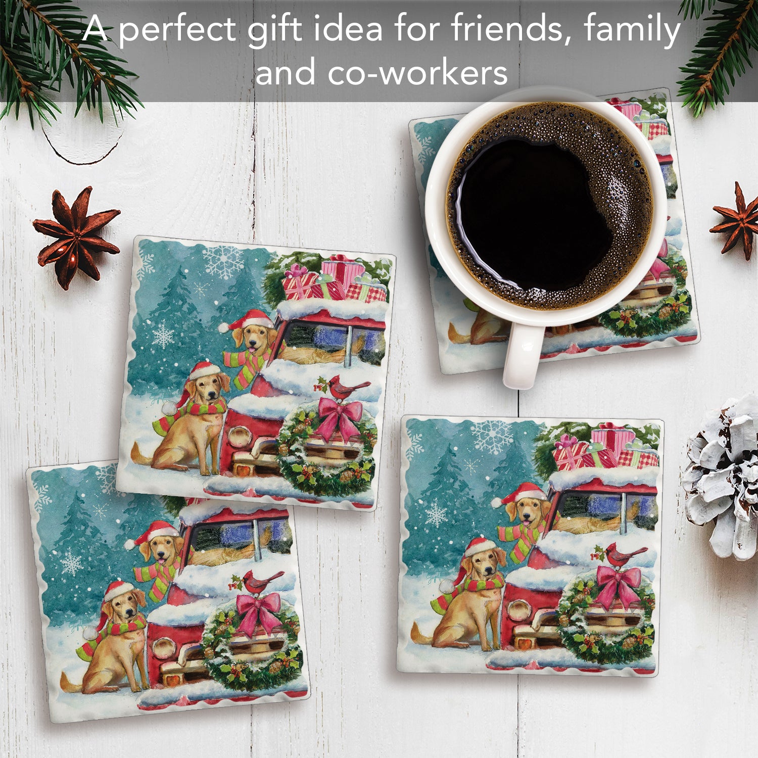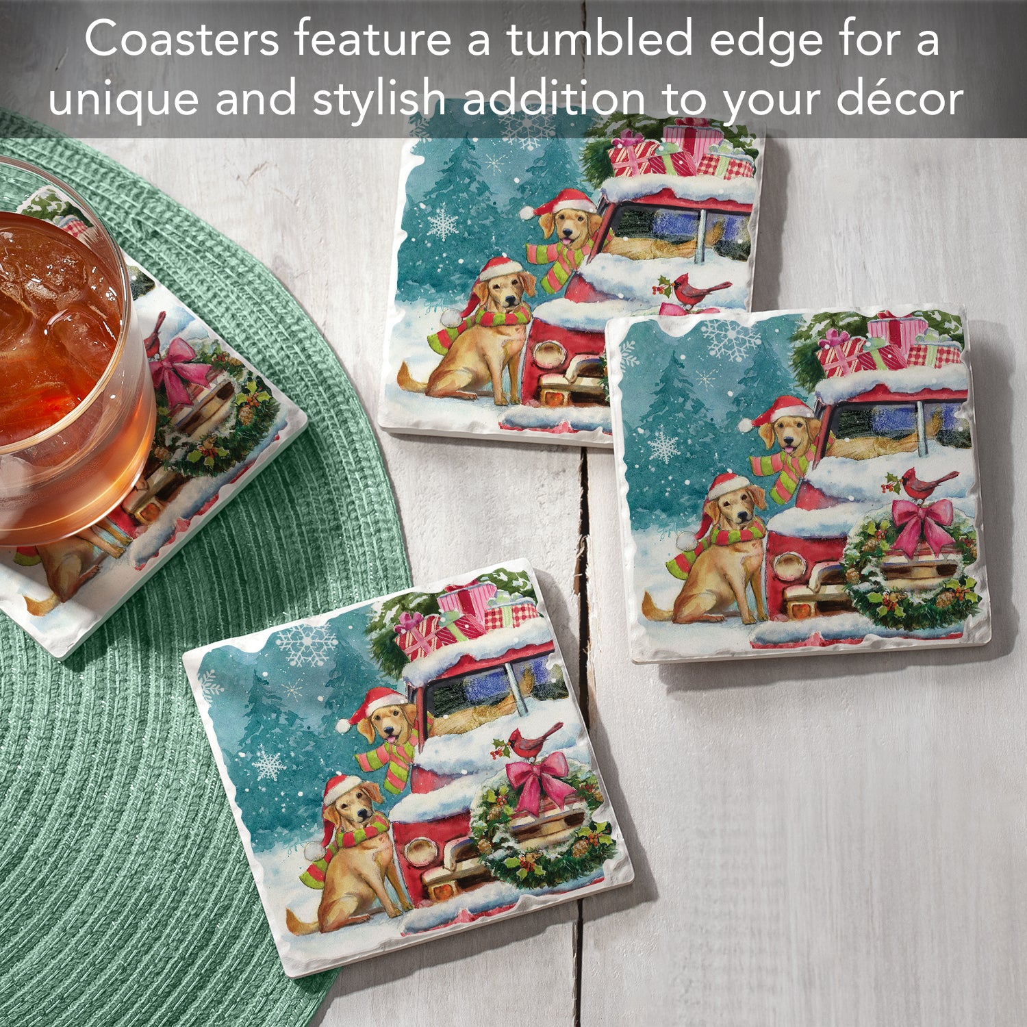 Thirstystone Holiday Buddies 4 Pack Tumbled Tile Stone Coasters 4" Square Manufactured in the USA