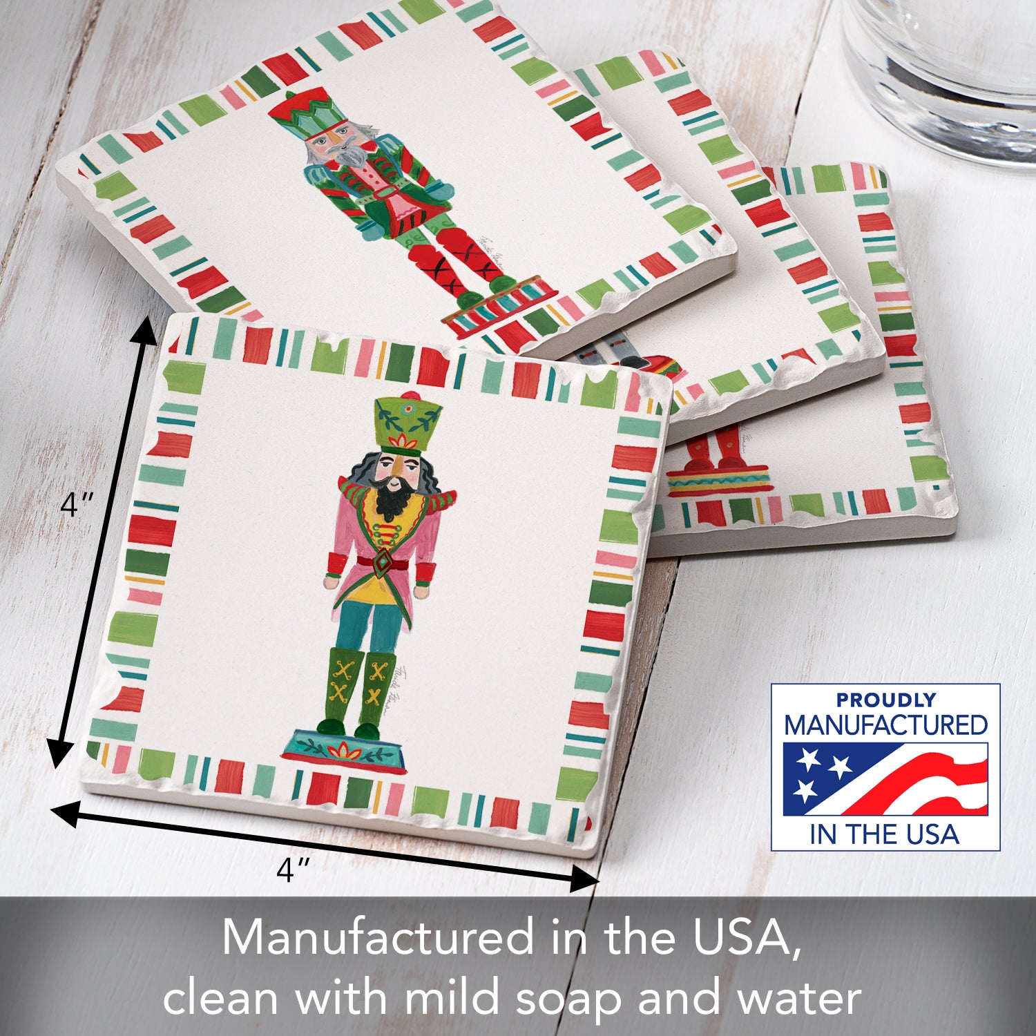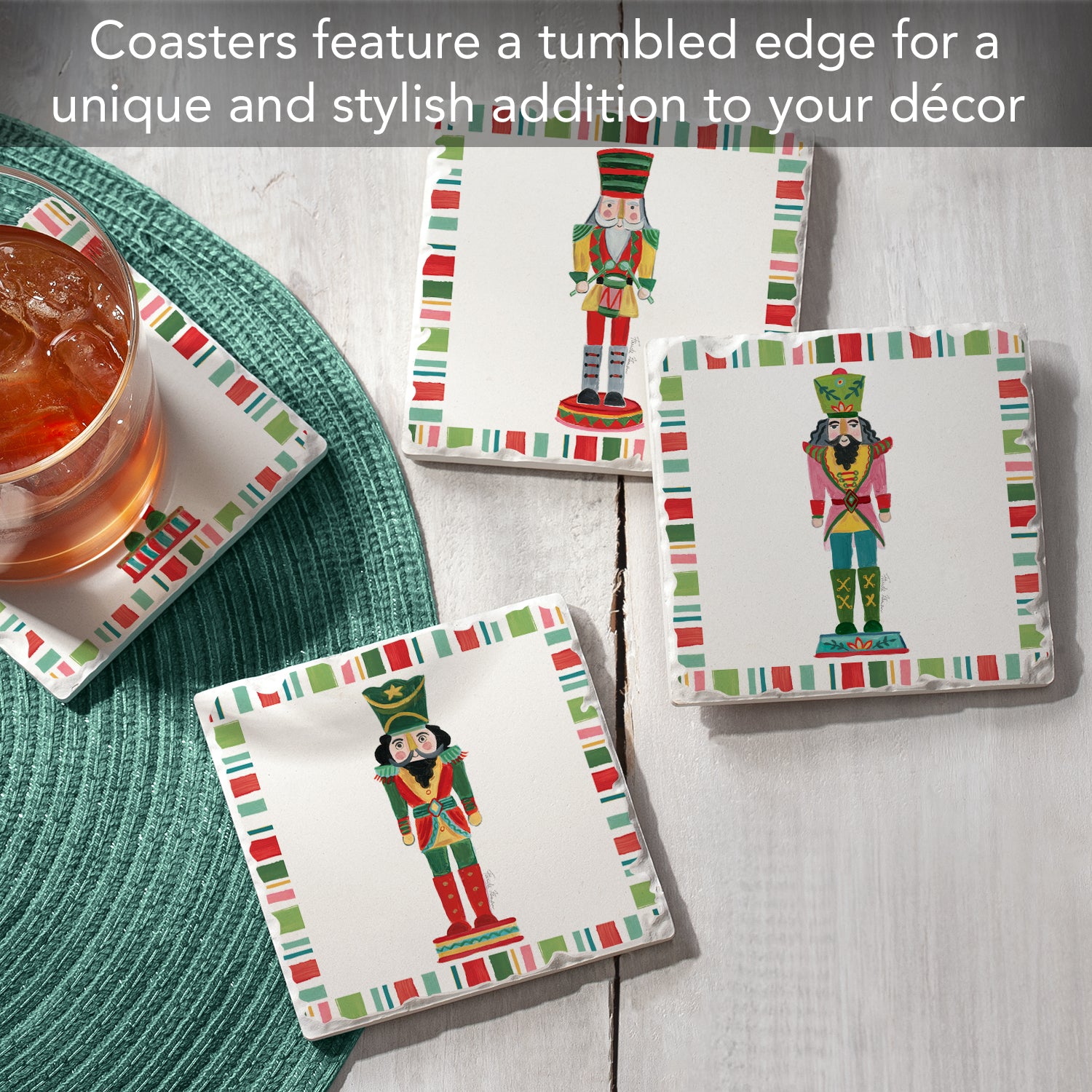 Thirstystone Holiday Nutcrackers 4 Pack Assorted Tumbled Tile Stone Coasters 4" Square