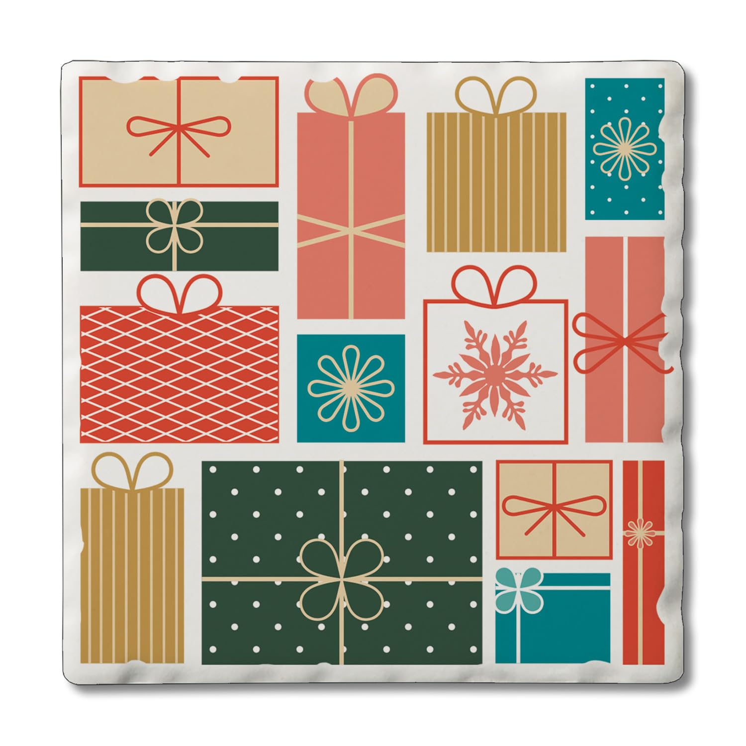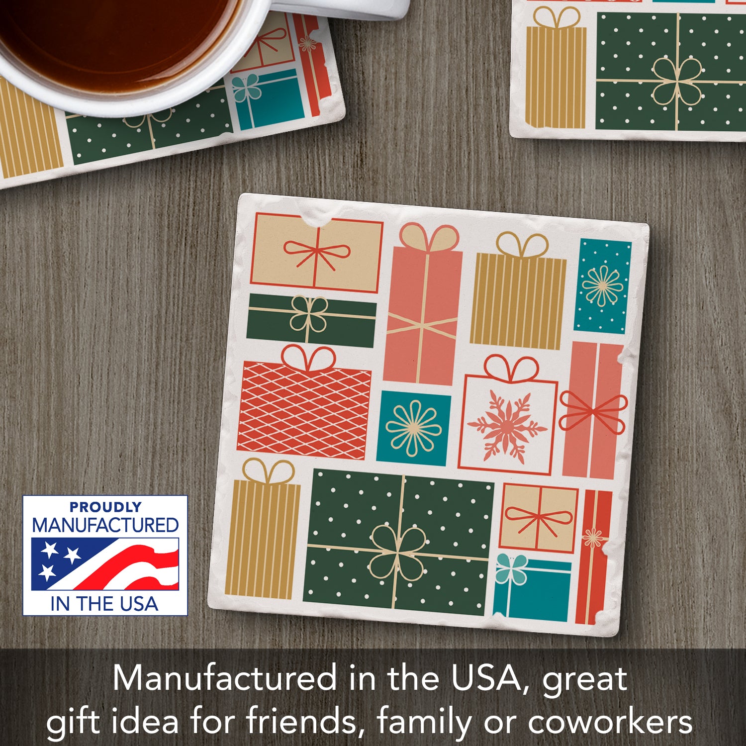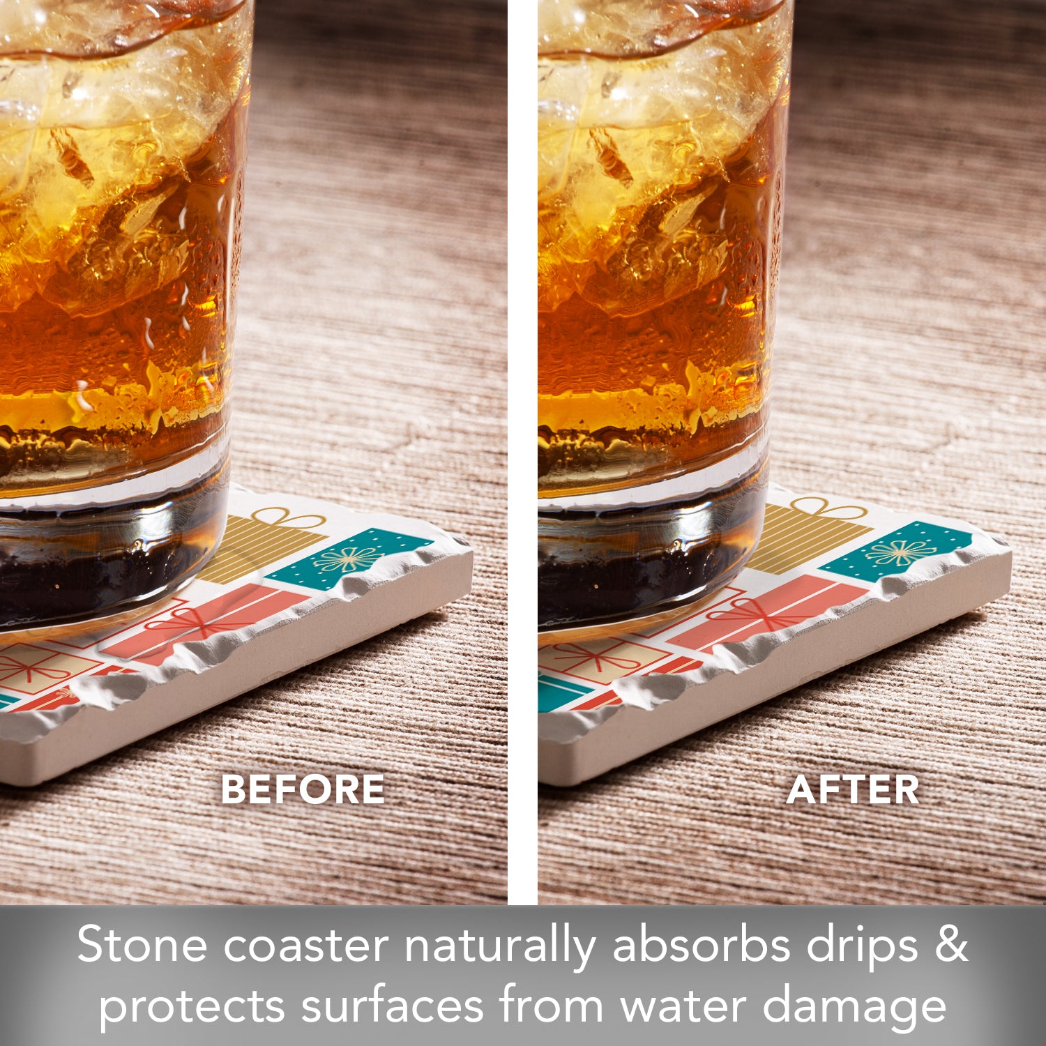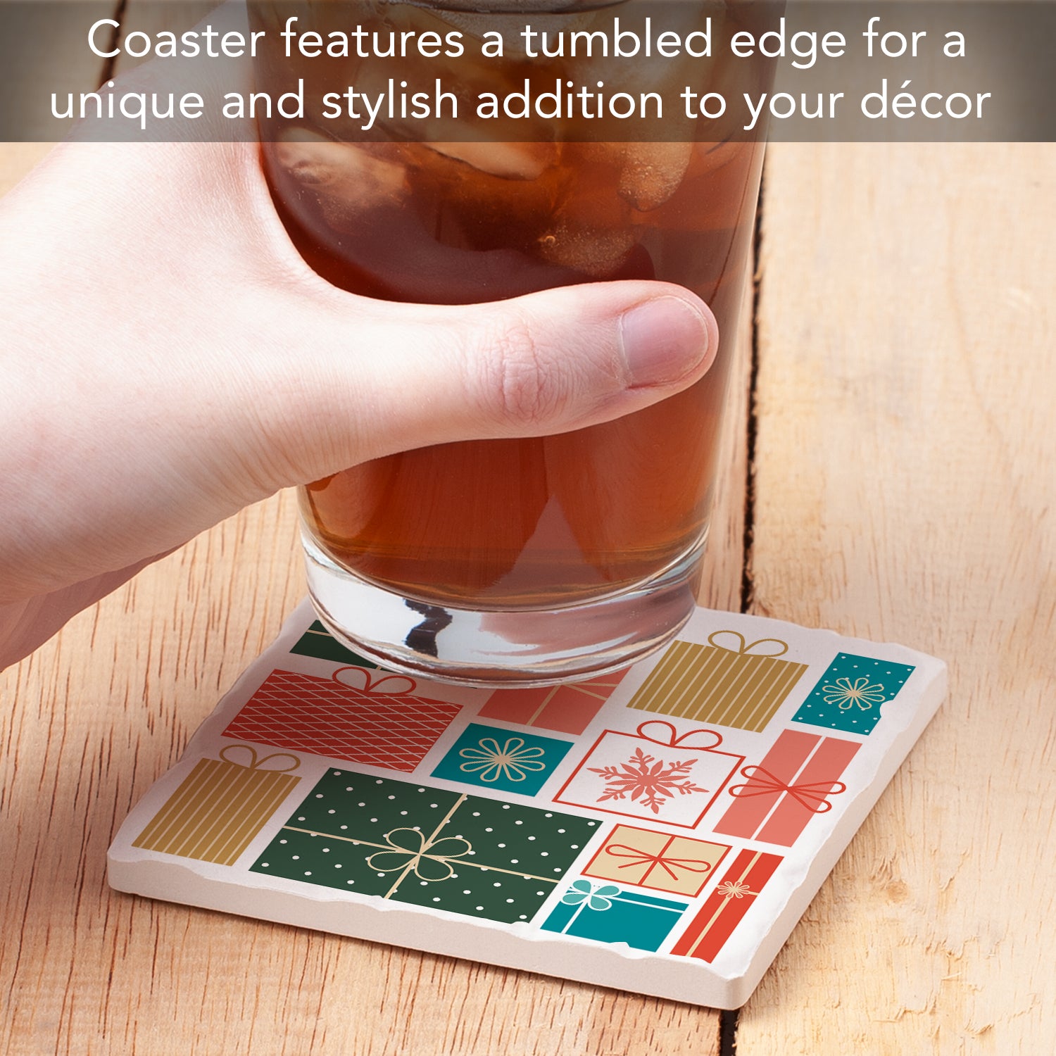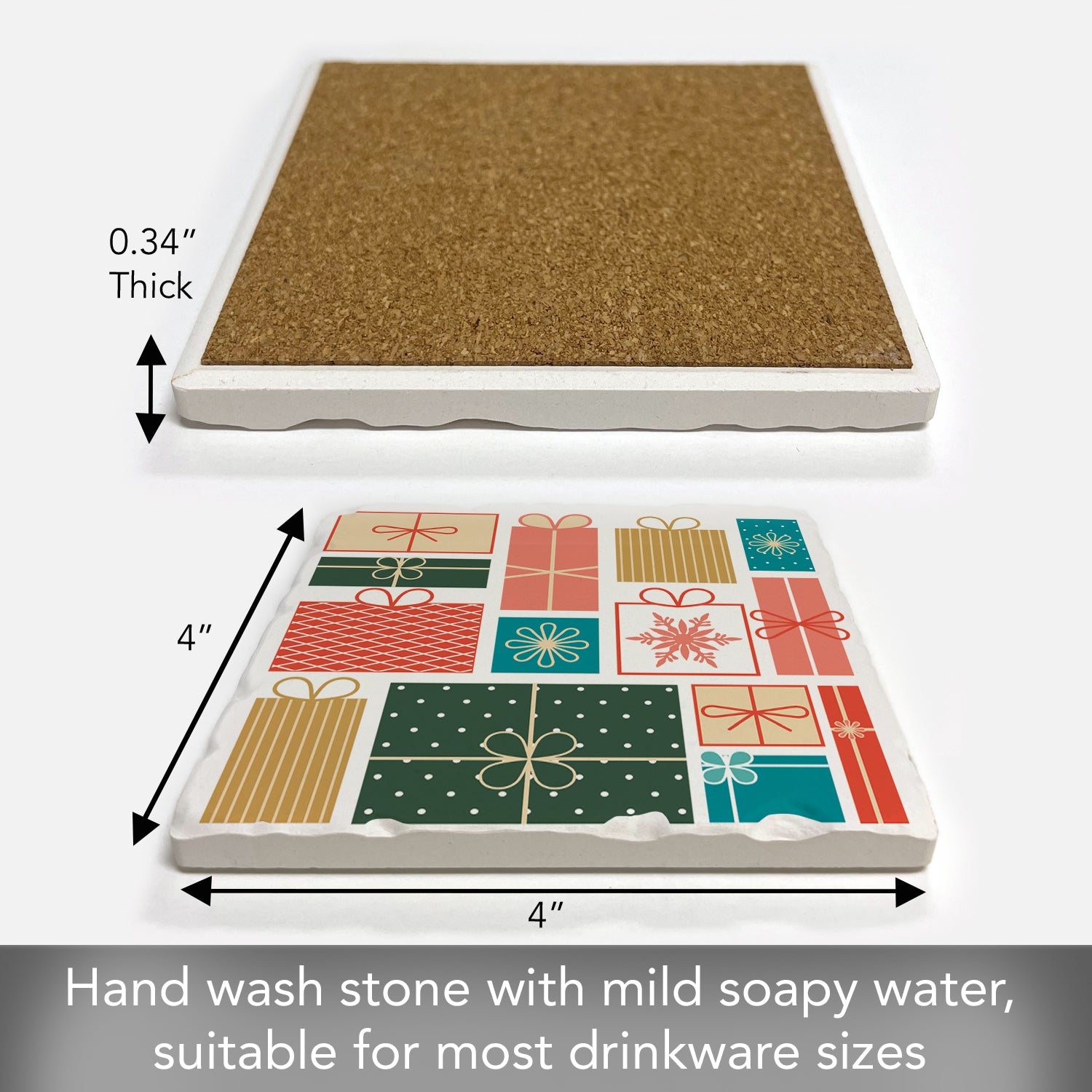 Thirstystone Holiday Packages Single Absorbent Stone Coaster with Protective Cork Backing Manufactured in The USA 4" Square, Artistic, Easily Wipes Clean