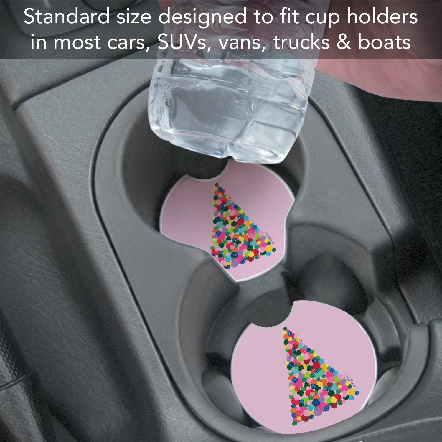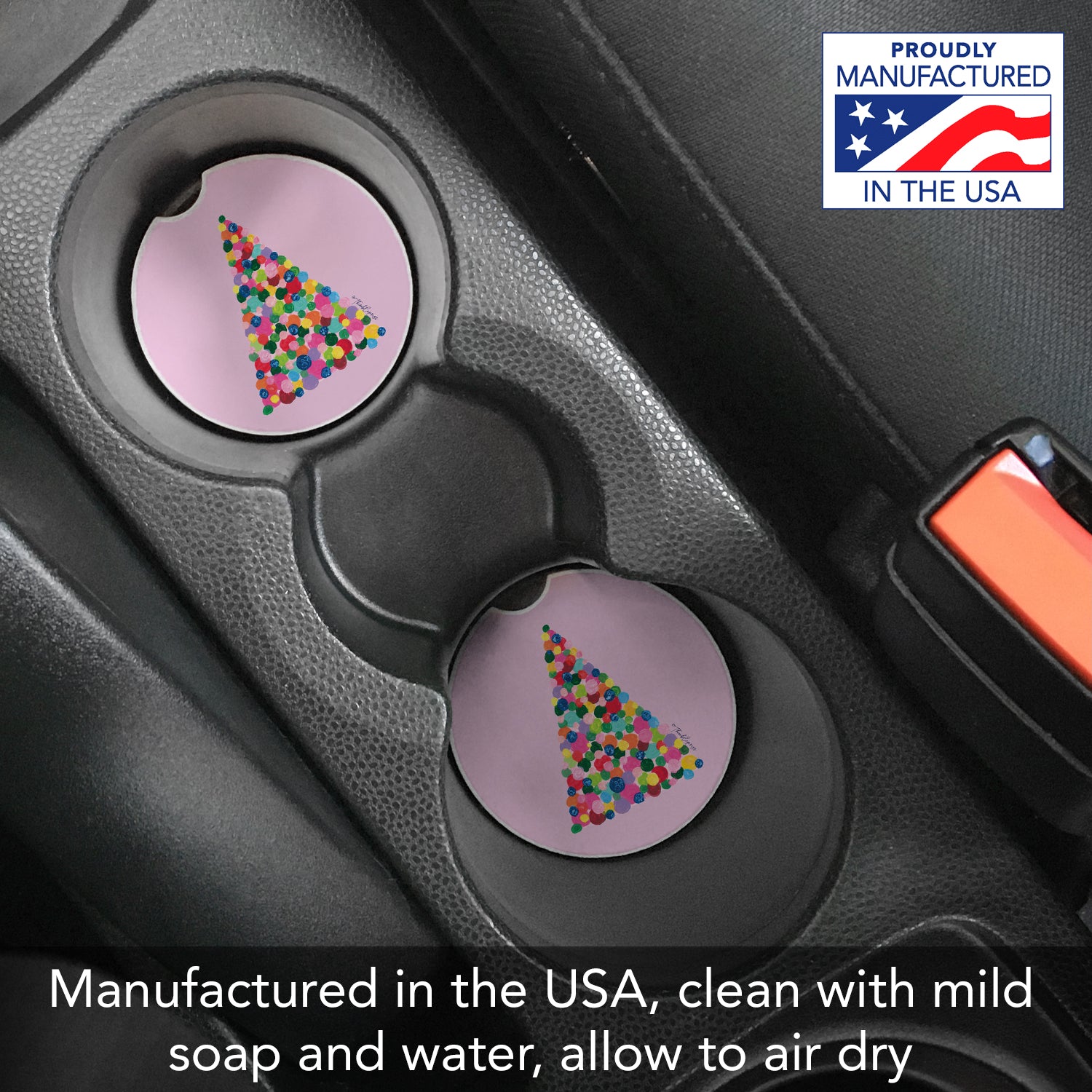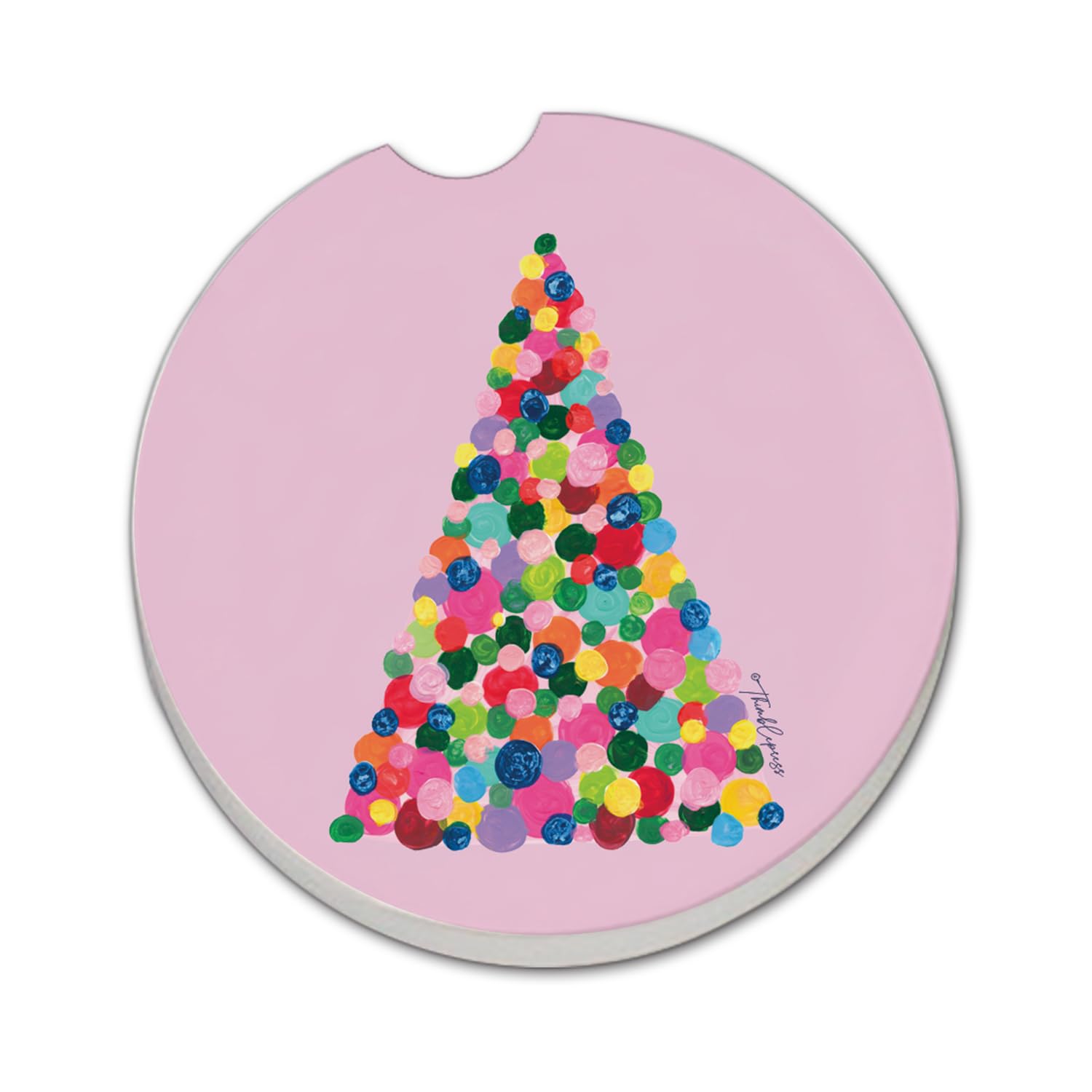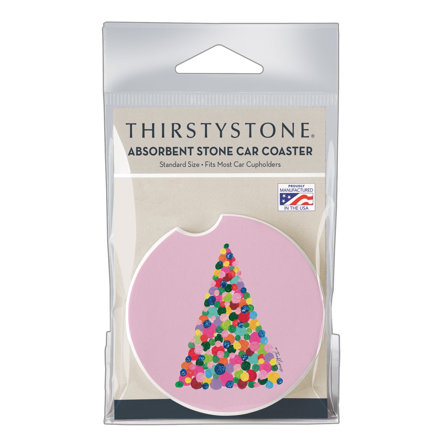Holiday Pop Tree Single Absorbent Stone Car Coaster 2.6” Diameter Manufactured in the USA