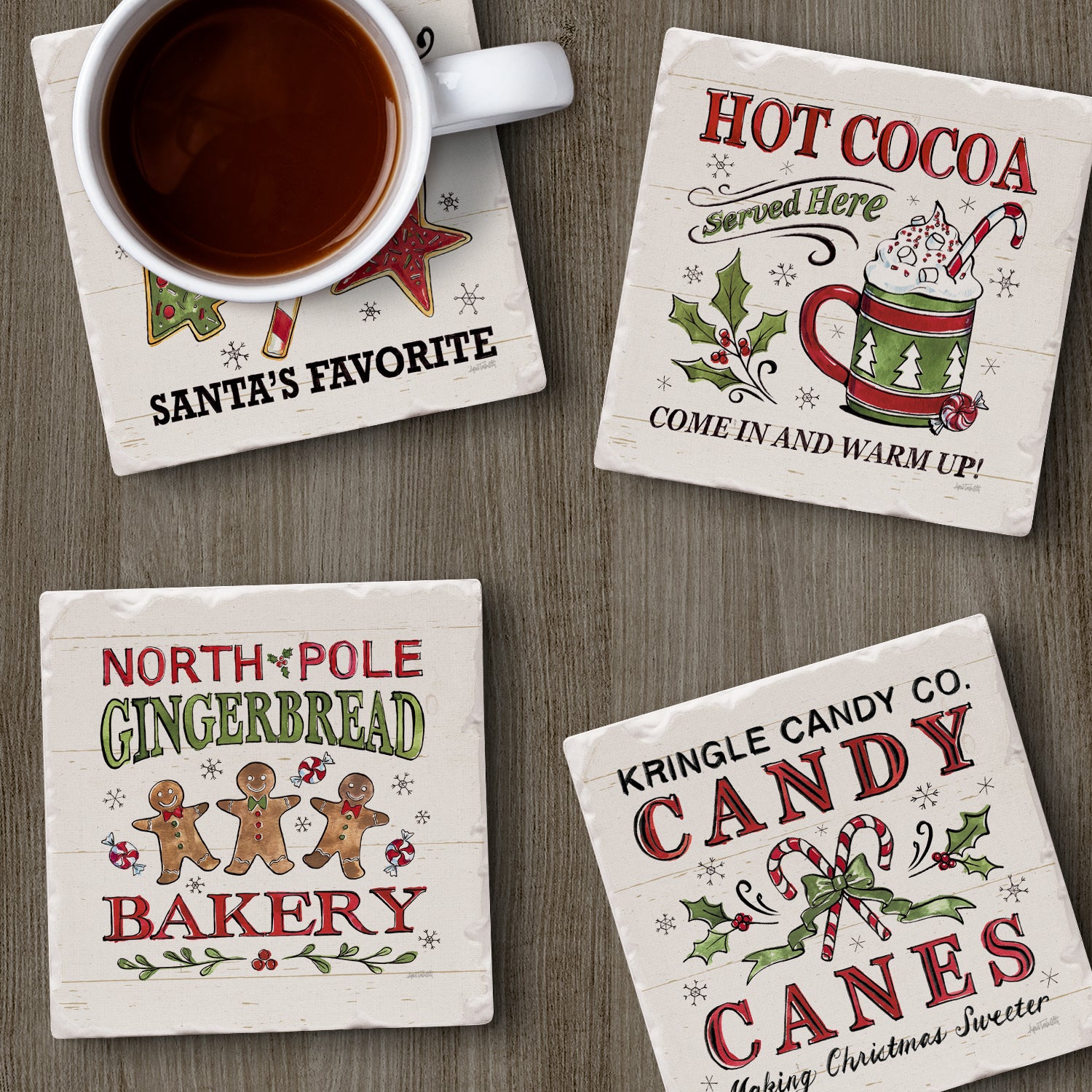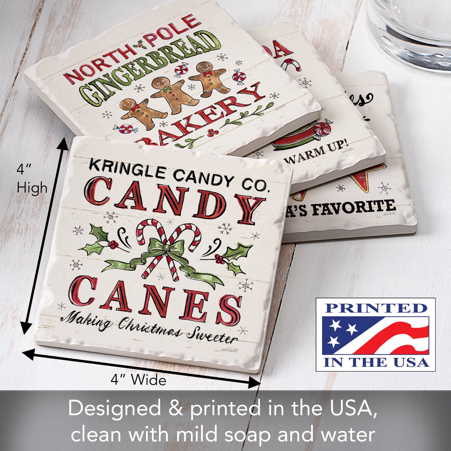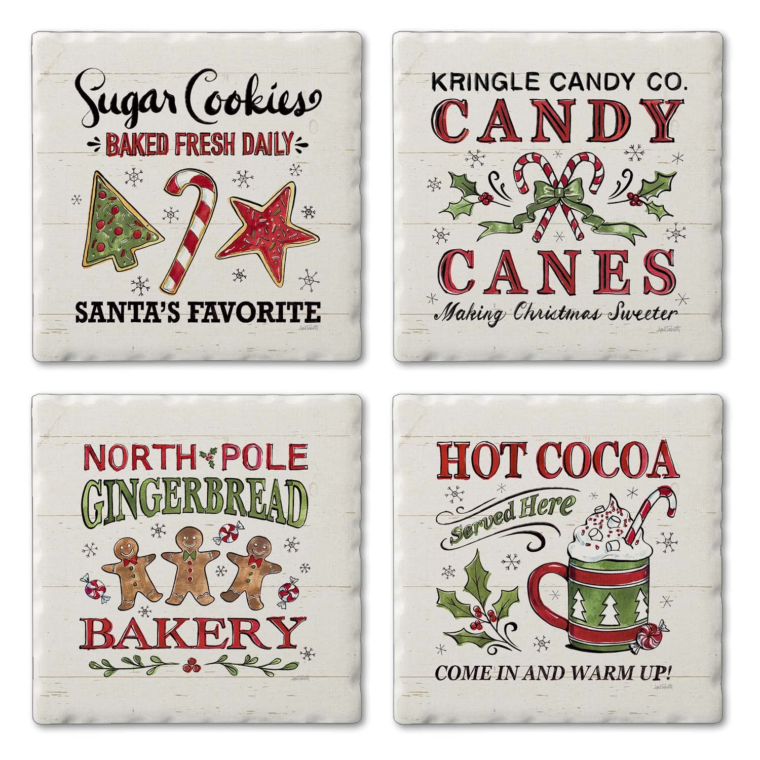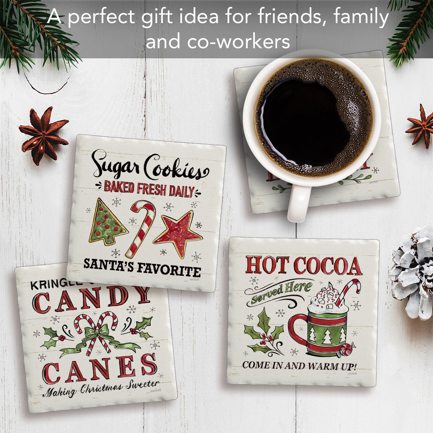 Thirstystone Holiday Treats 4 Pack Assorted Tumbled Tile Stone Coasters 4" Square