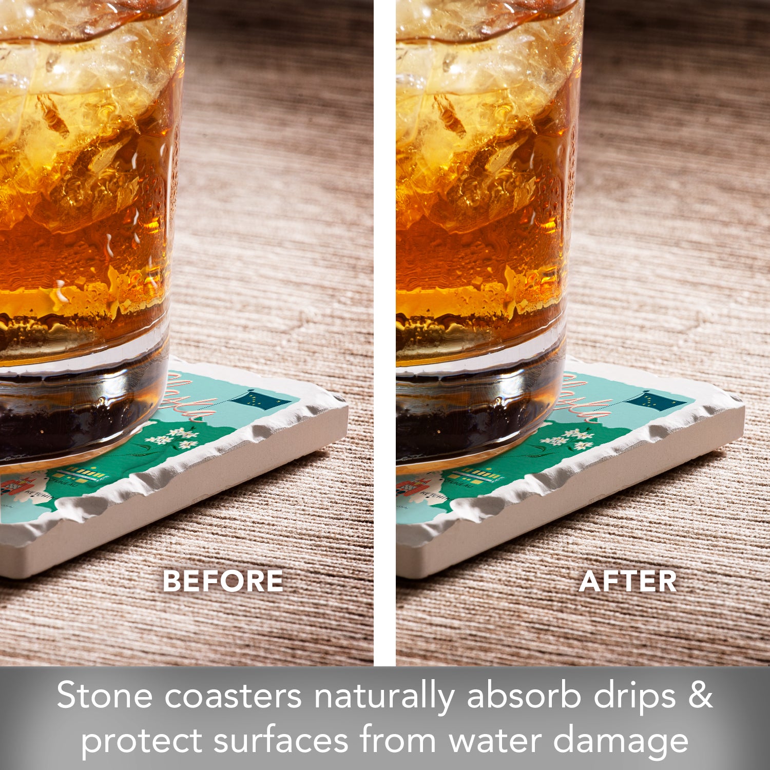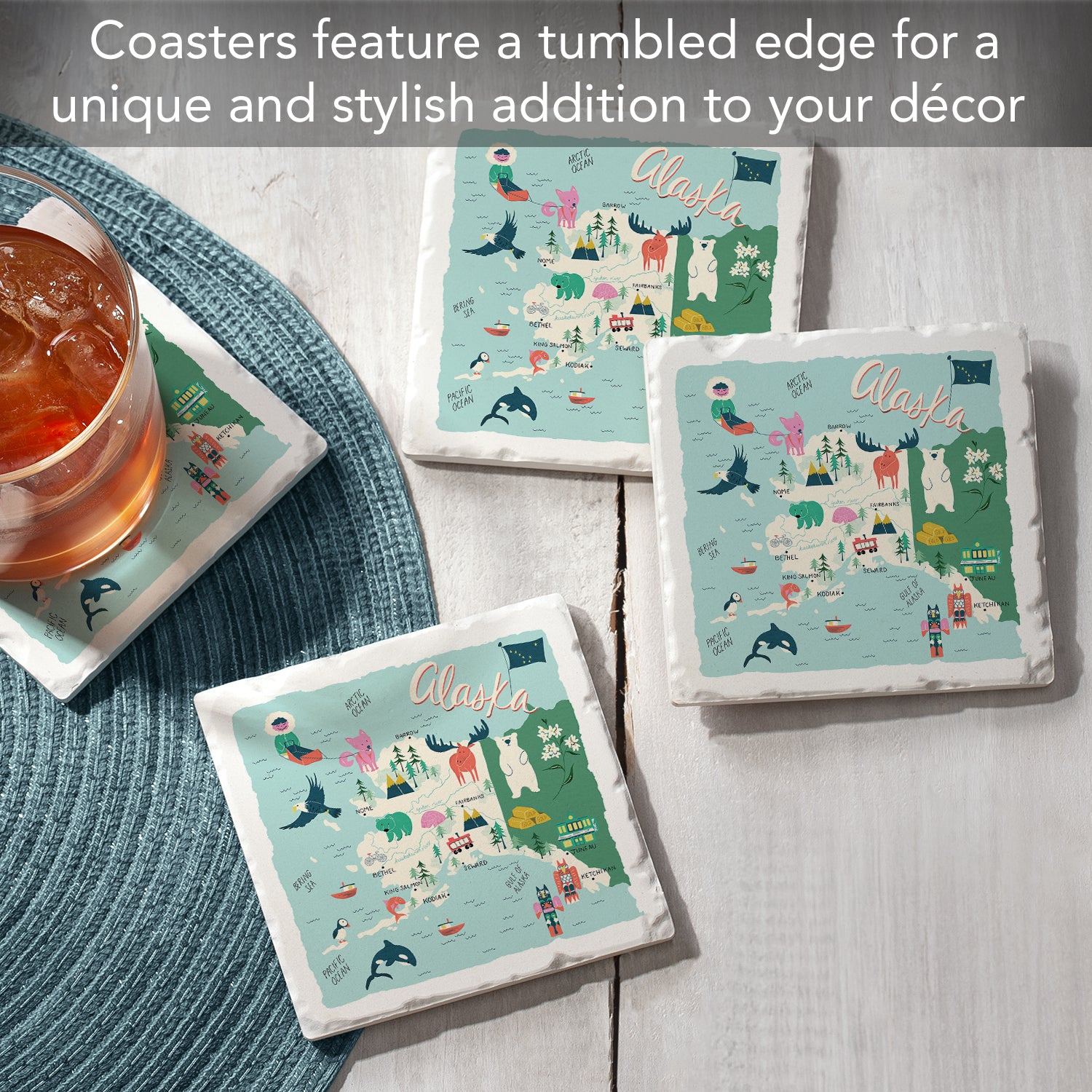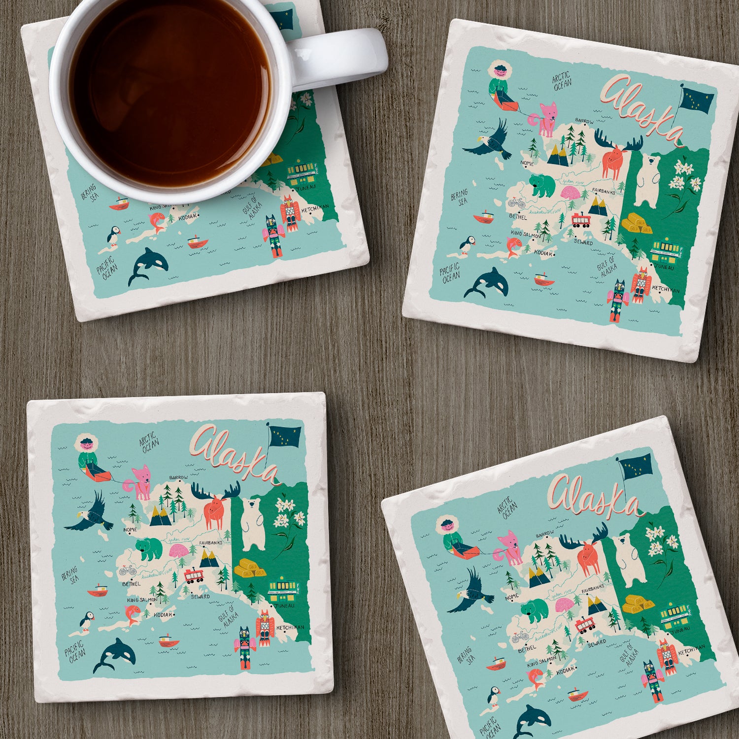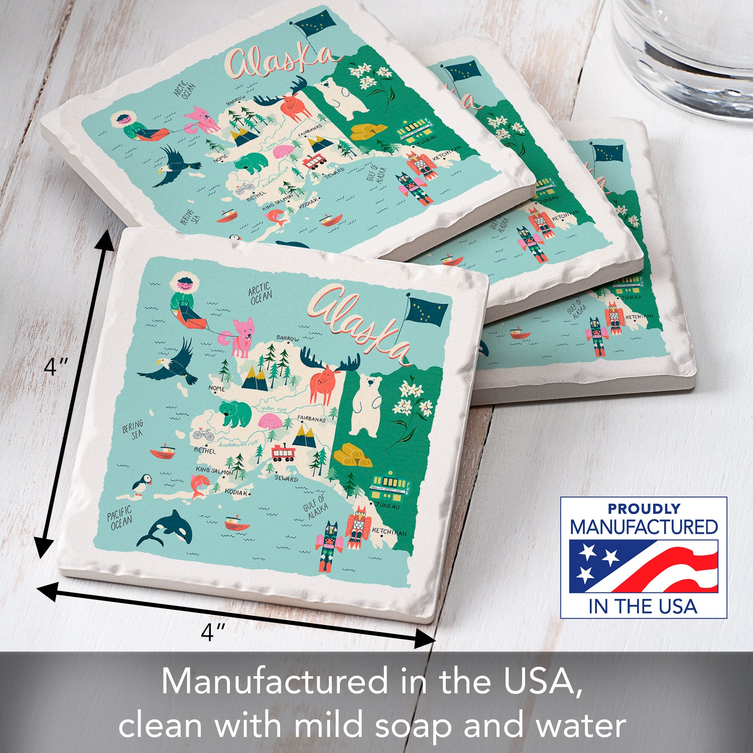Thirstystone Home State 4 Pack Tumbled Tile Stone Coasters with Protective Cork Backing 4" Square Manufactured in The USA Artistic Absorbent Easily Wipes Clean (Alaska)