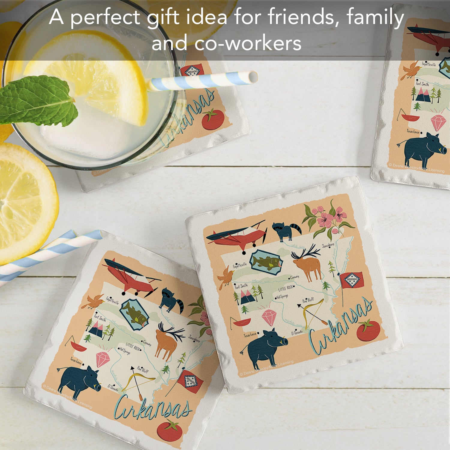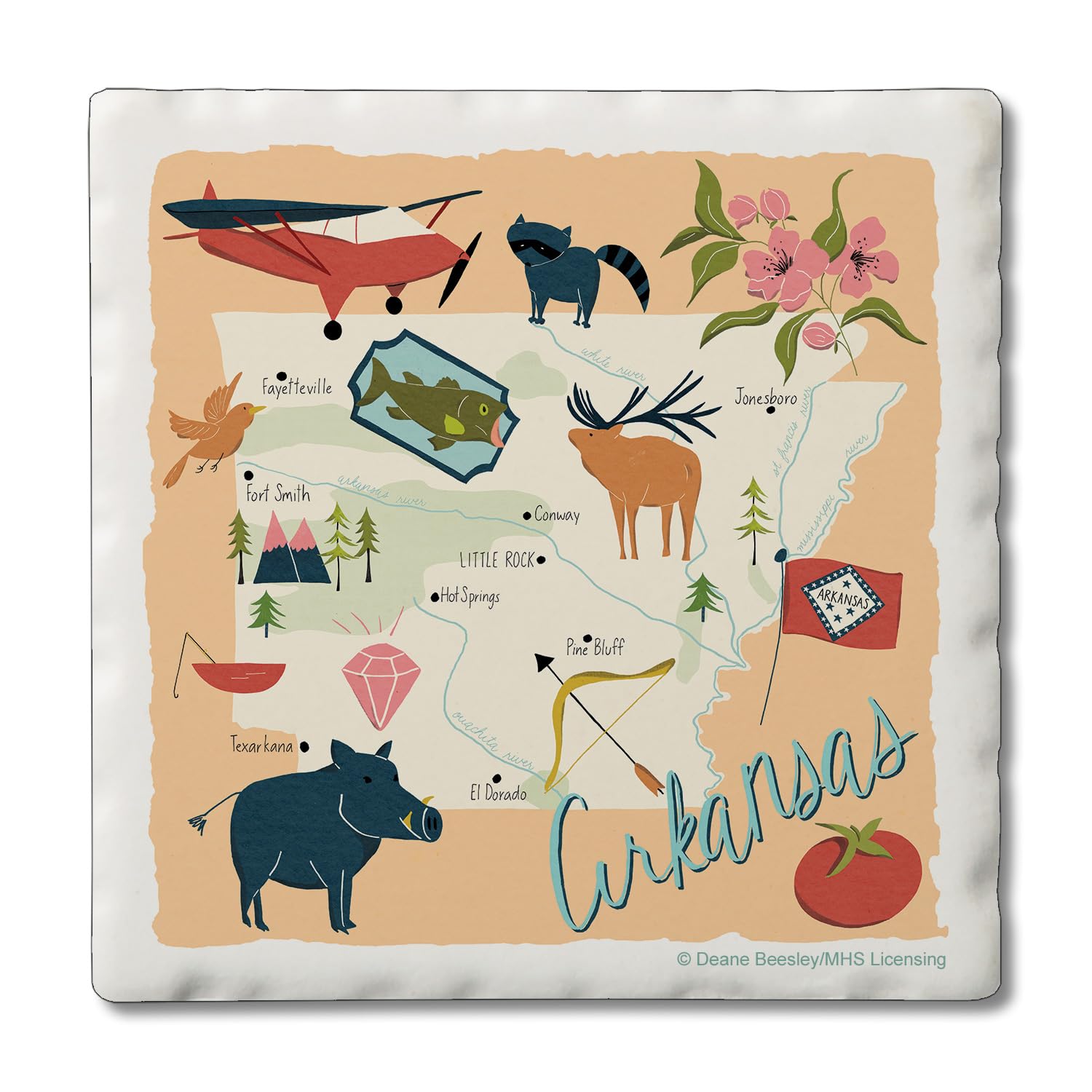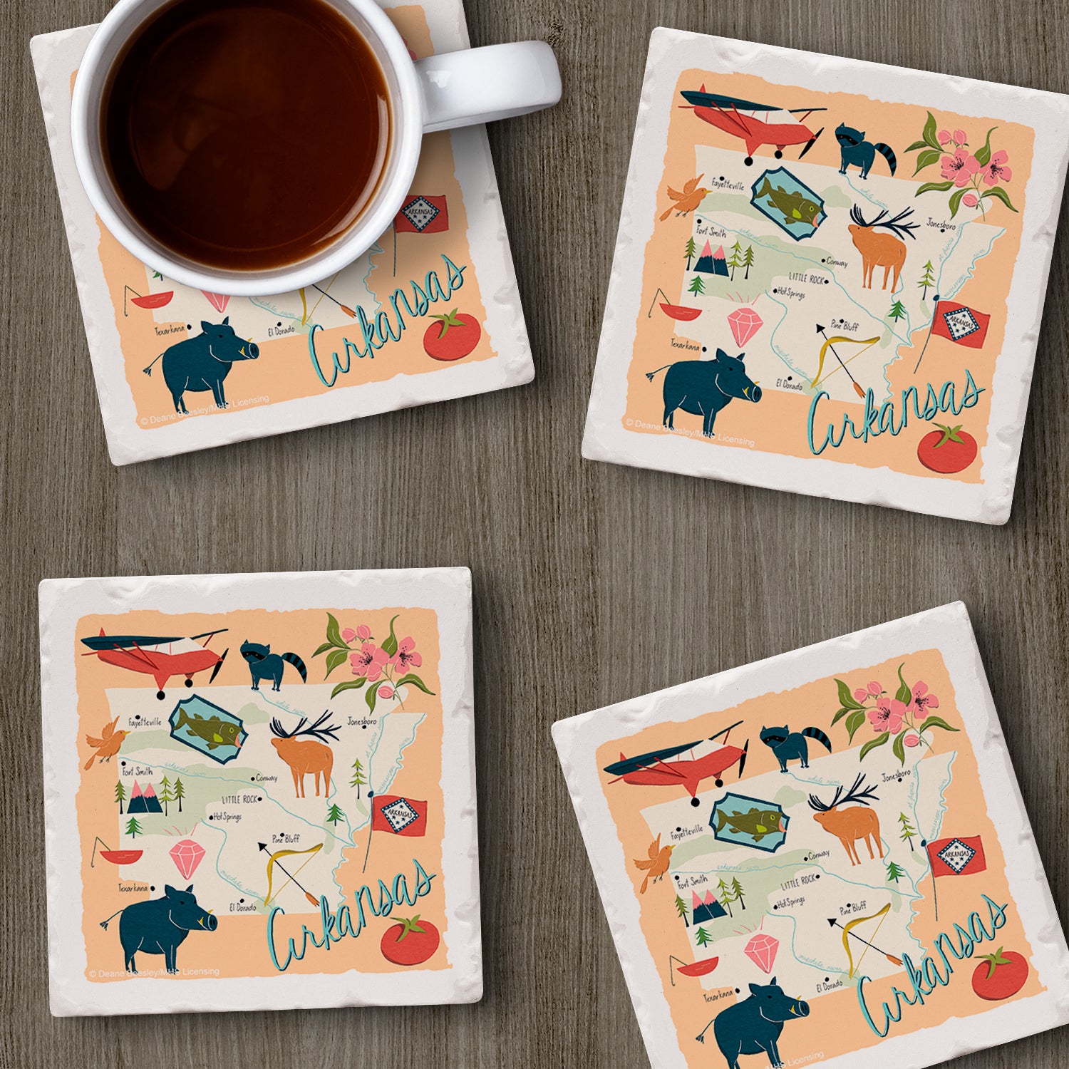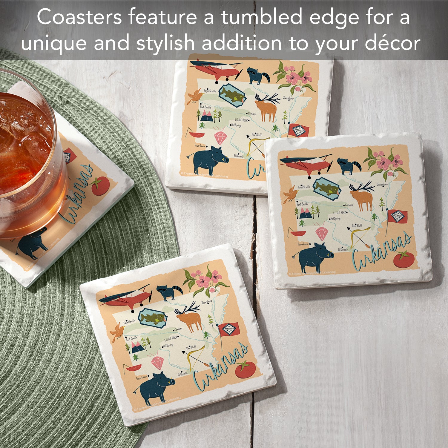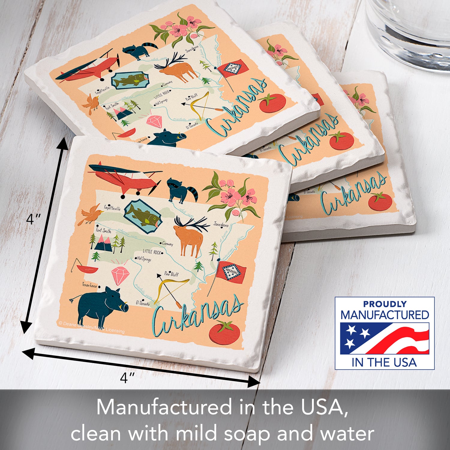 Thirstystone Arkansas Home State 4 Pack Tumbled Tile Stone Coasters 4" Square Manufactured in the USA