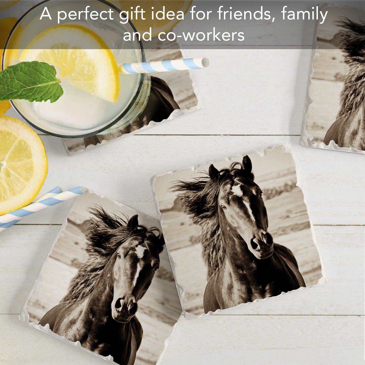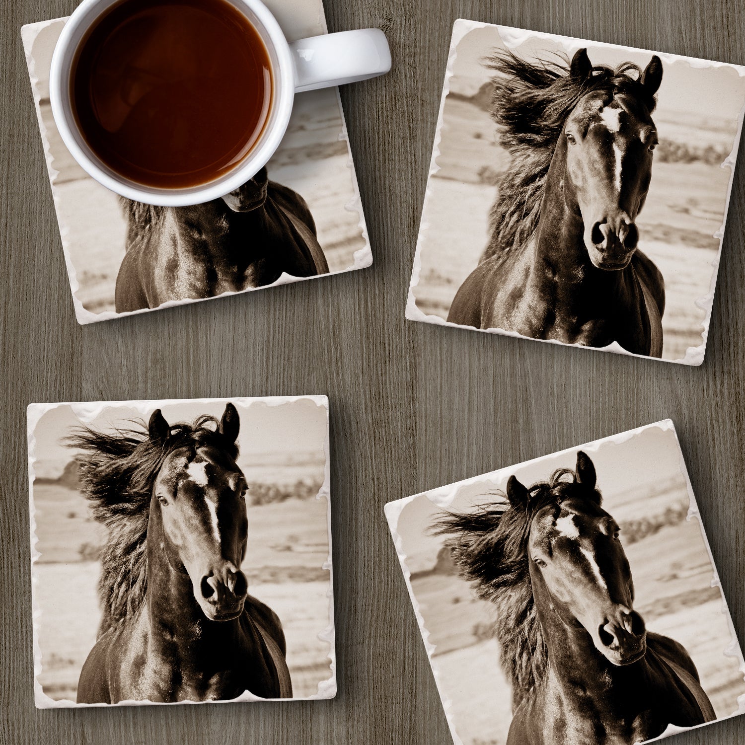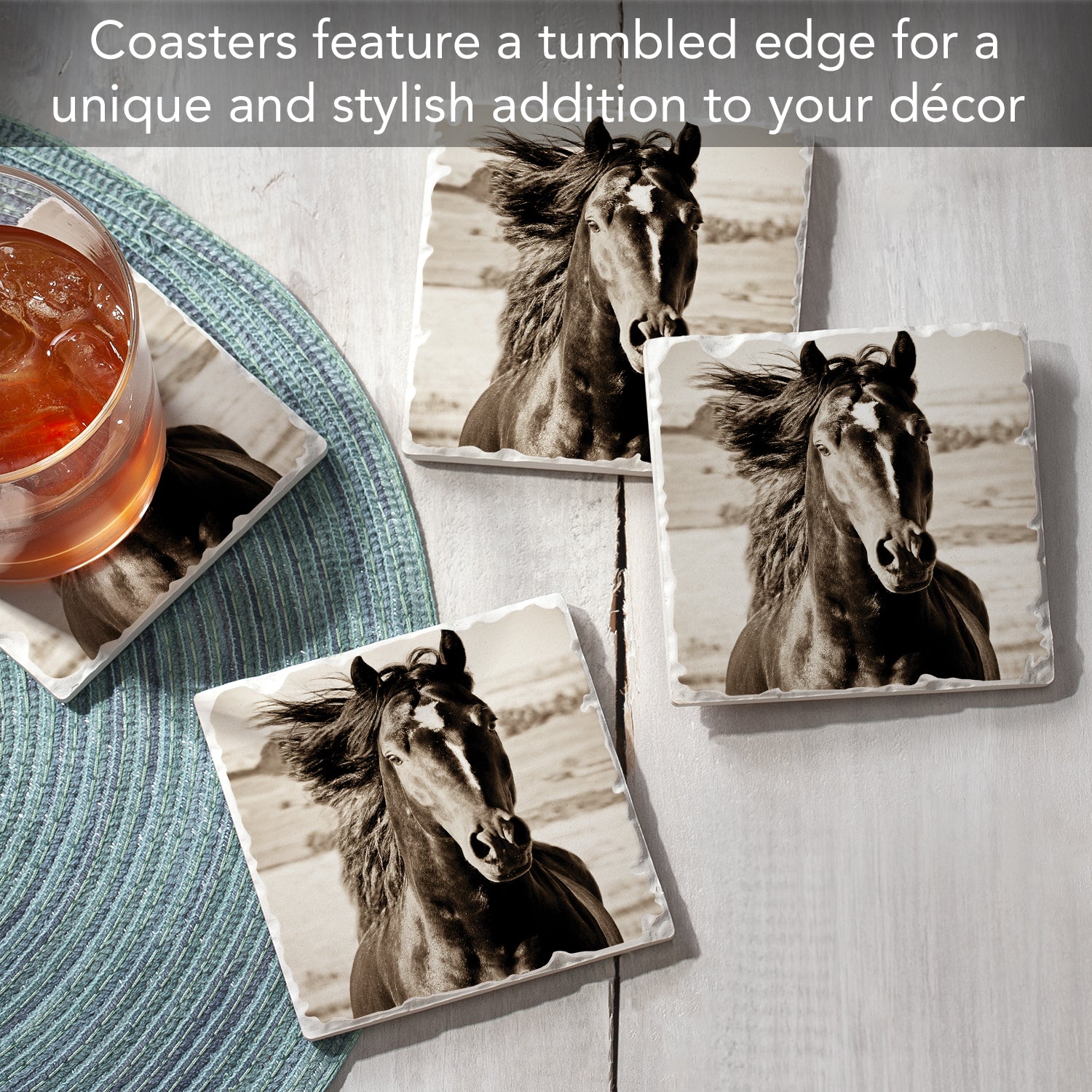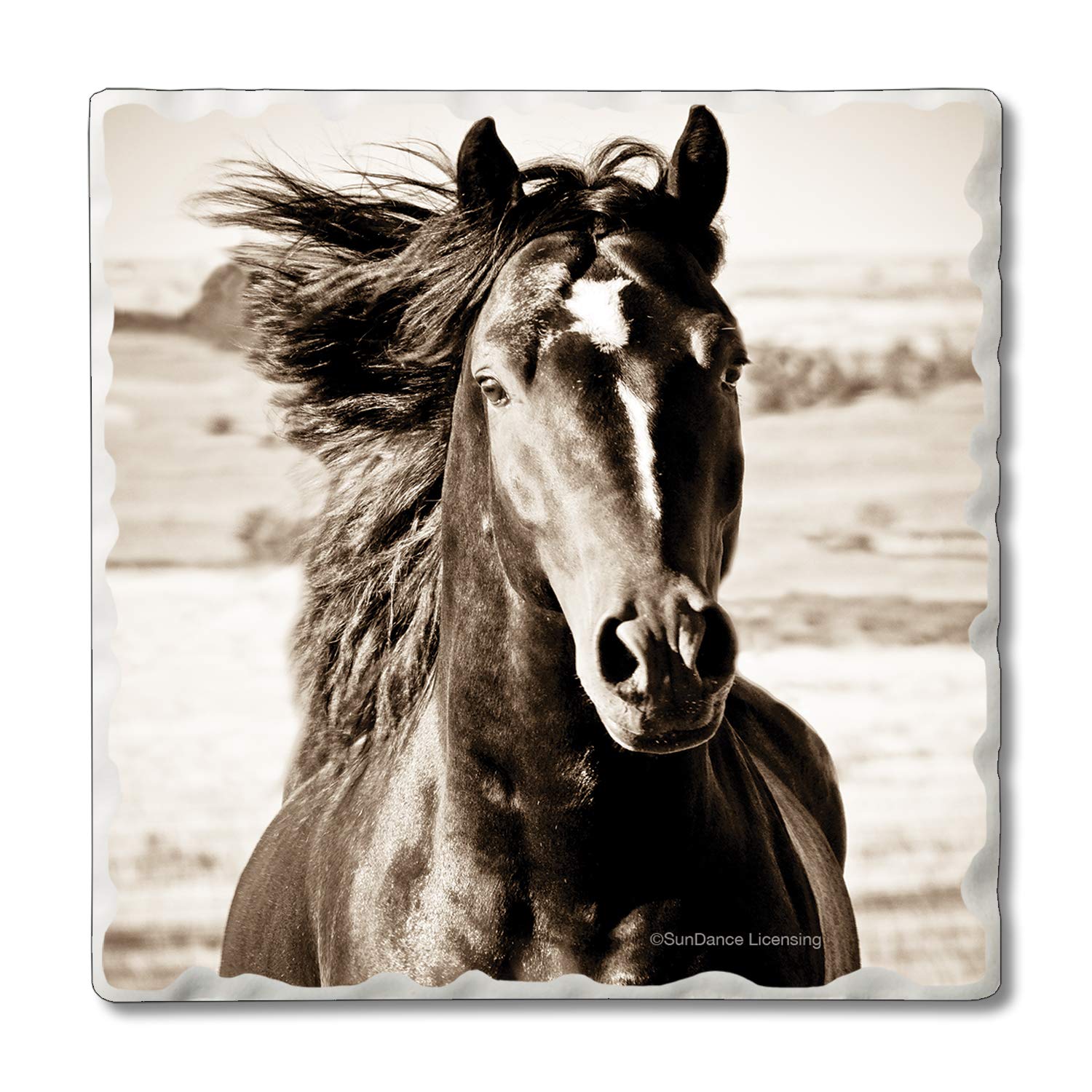 Thirstystone Horse-Black Beauty 4 Pack Tumbled Tile Stone Coasters 4" Square Manufactured in the USA