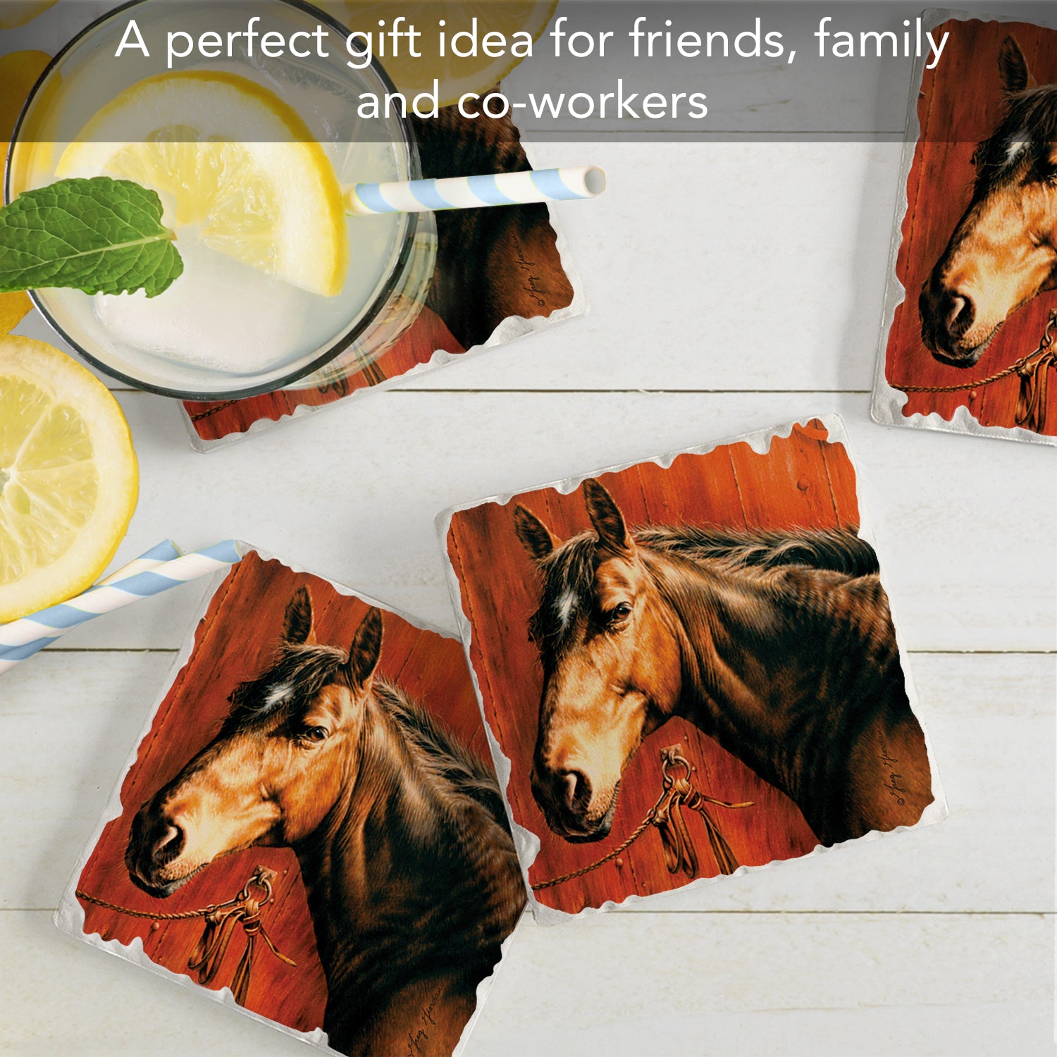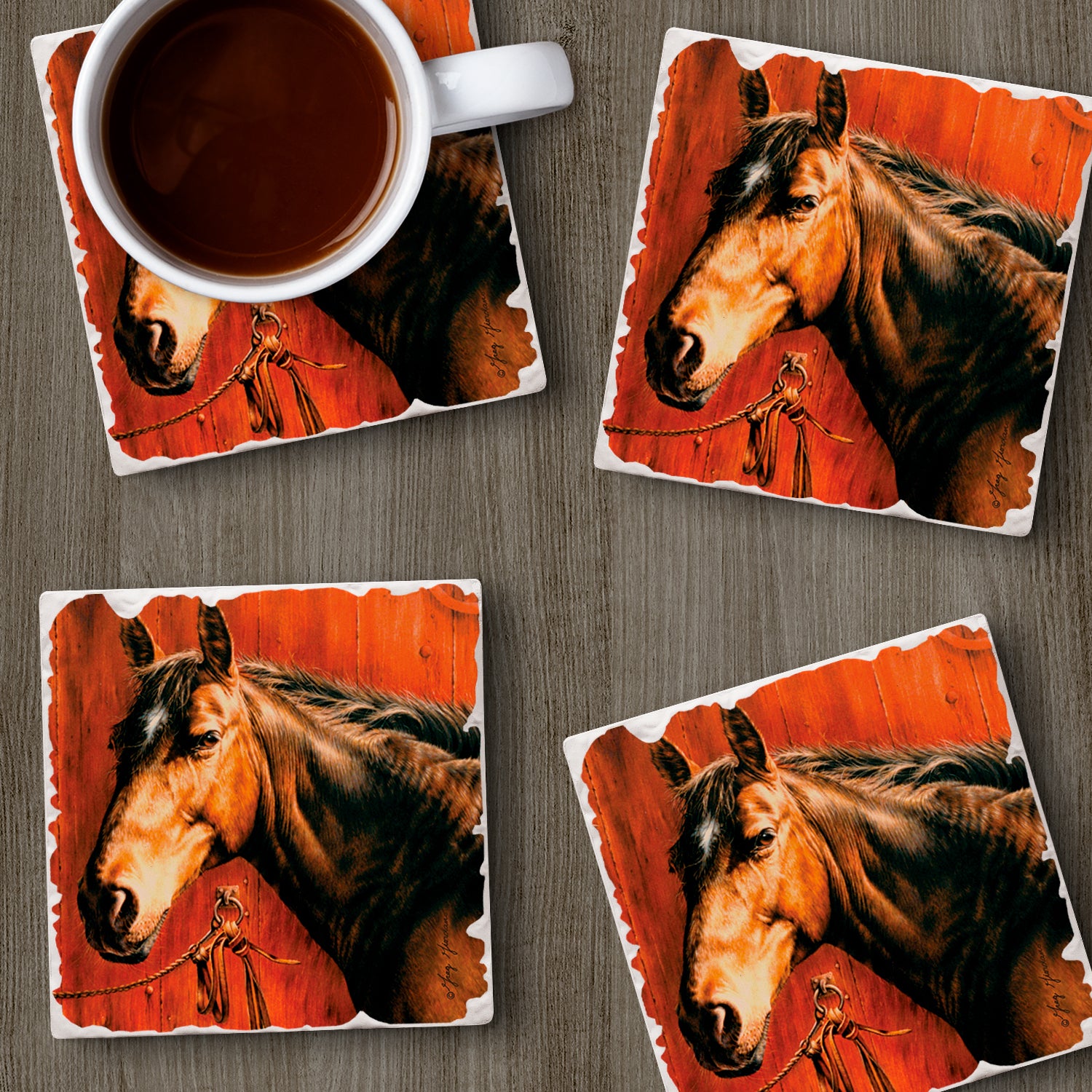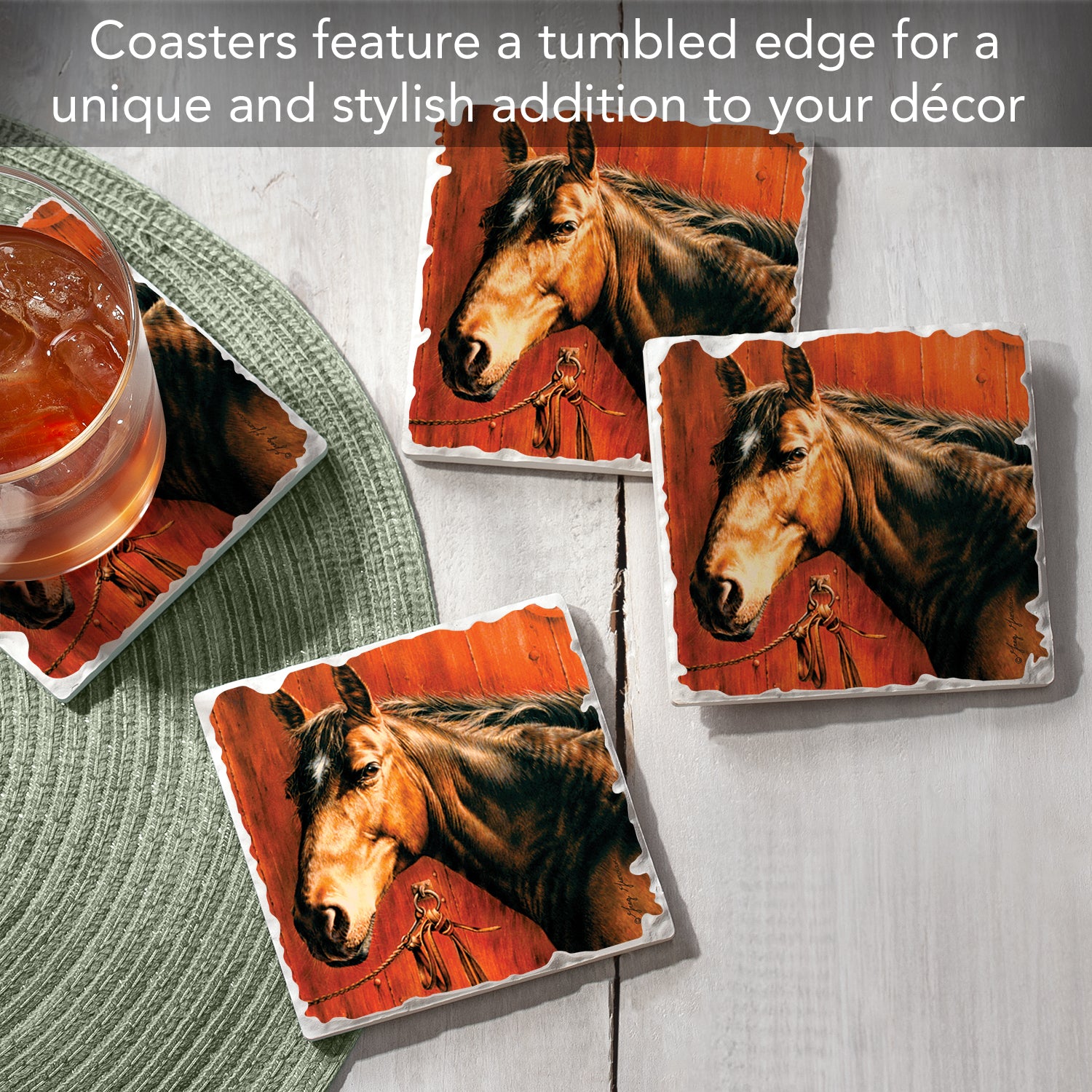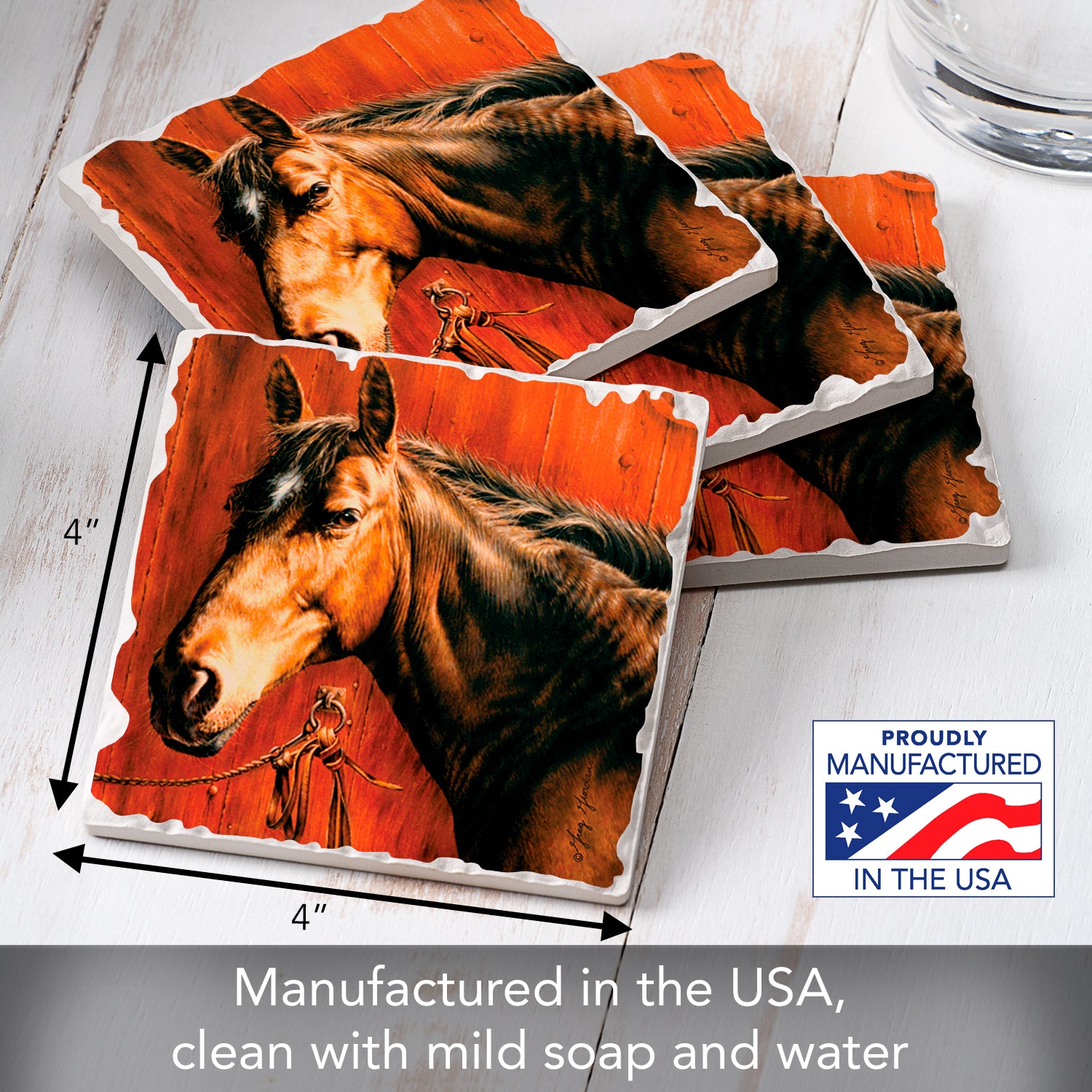 Thirstystone Horse Portrait 4 Pack Tumbled Tile Stone Coasters 4" Square Manufactured in the USA