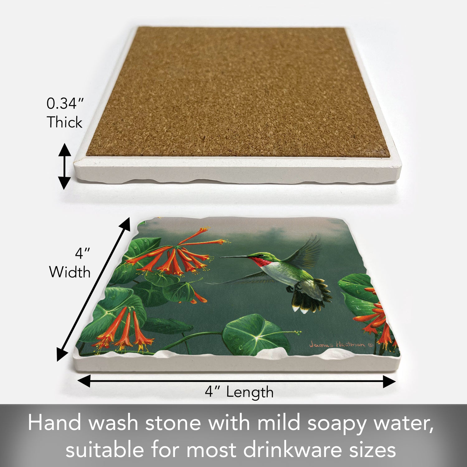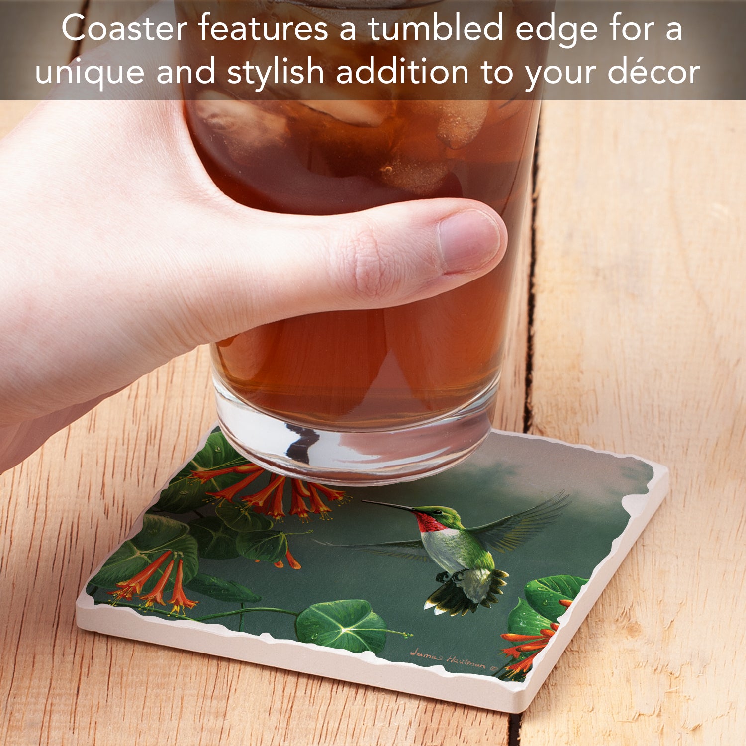 Thirstystone Hovering Hummingbird Single Tumbled Tile Stone Coaster with Protective Cork Backing Manufactured in The USA 4" Square, Artistic, Easily Wipes Clean