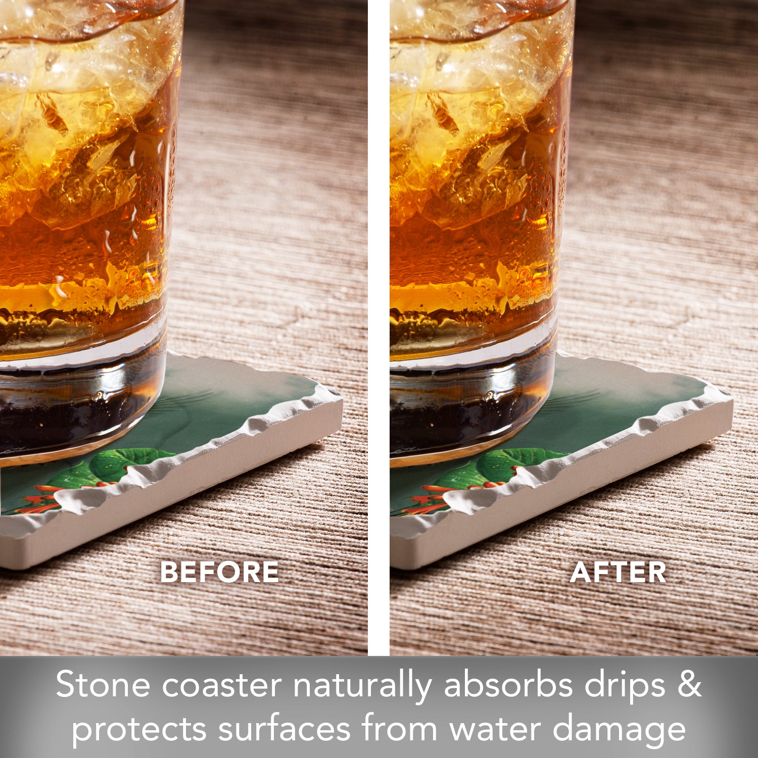 - ABSORBENT STONE-Coaster is constructed from absorbent stone to absorb excess condensation from beverages. This is a 1 Coaster Pack to allow you to choose from our other coordinating Coaster Designs and complete your own personal set.
