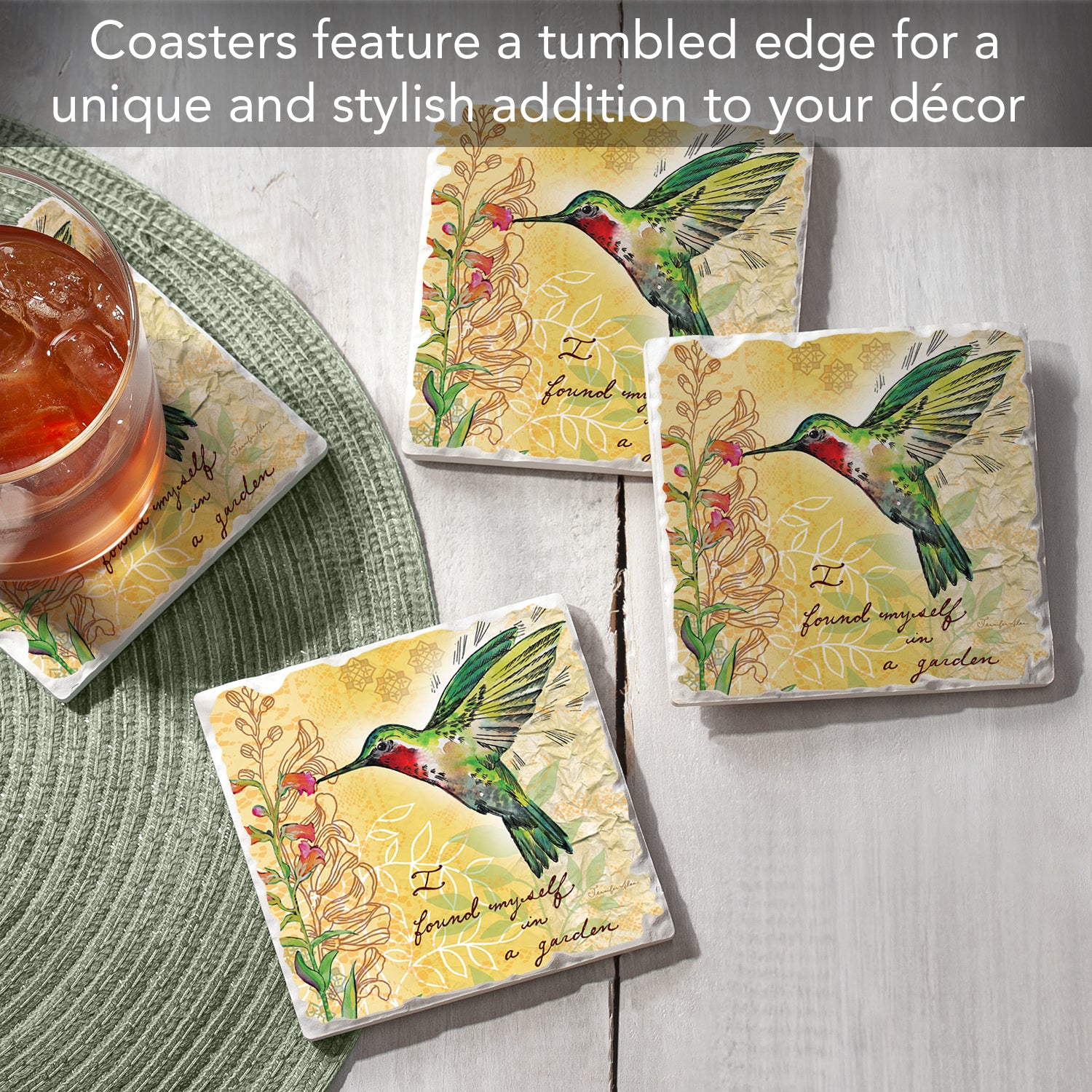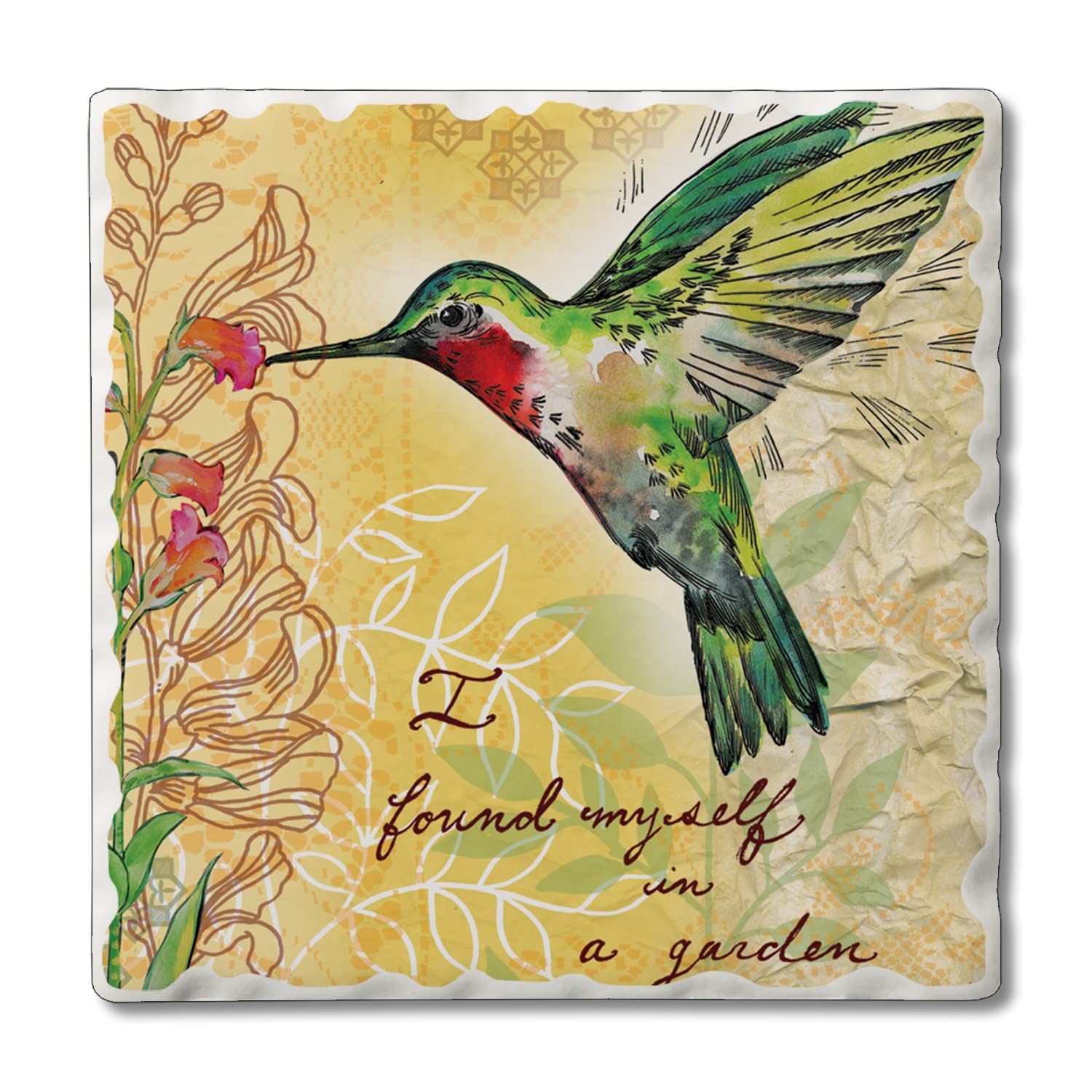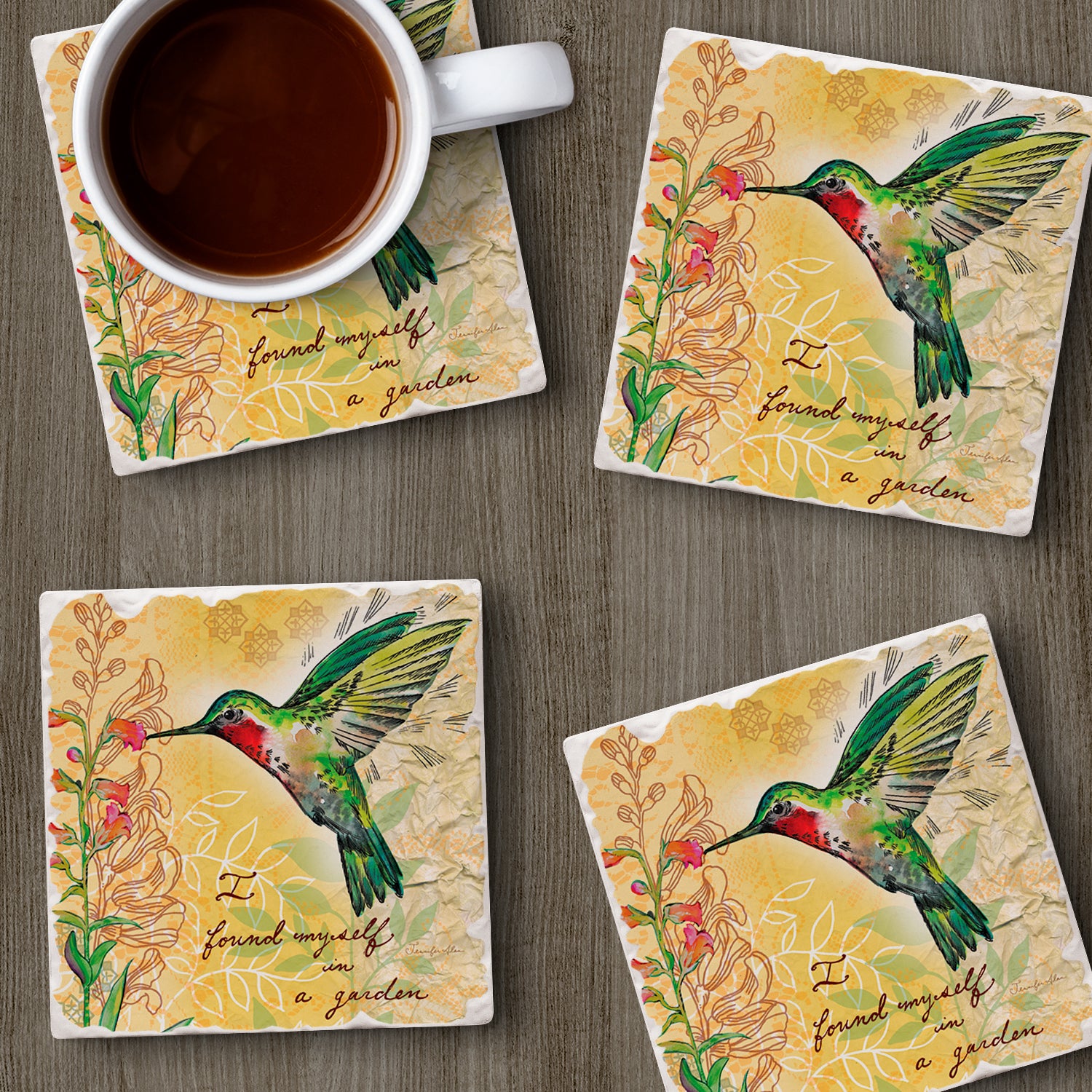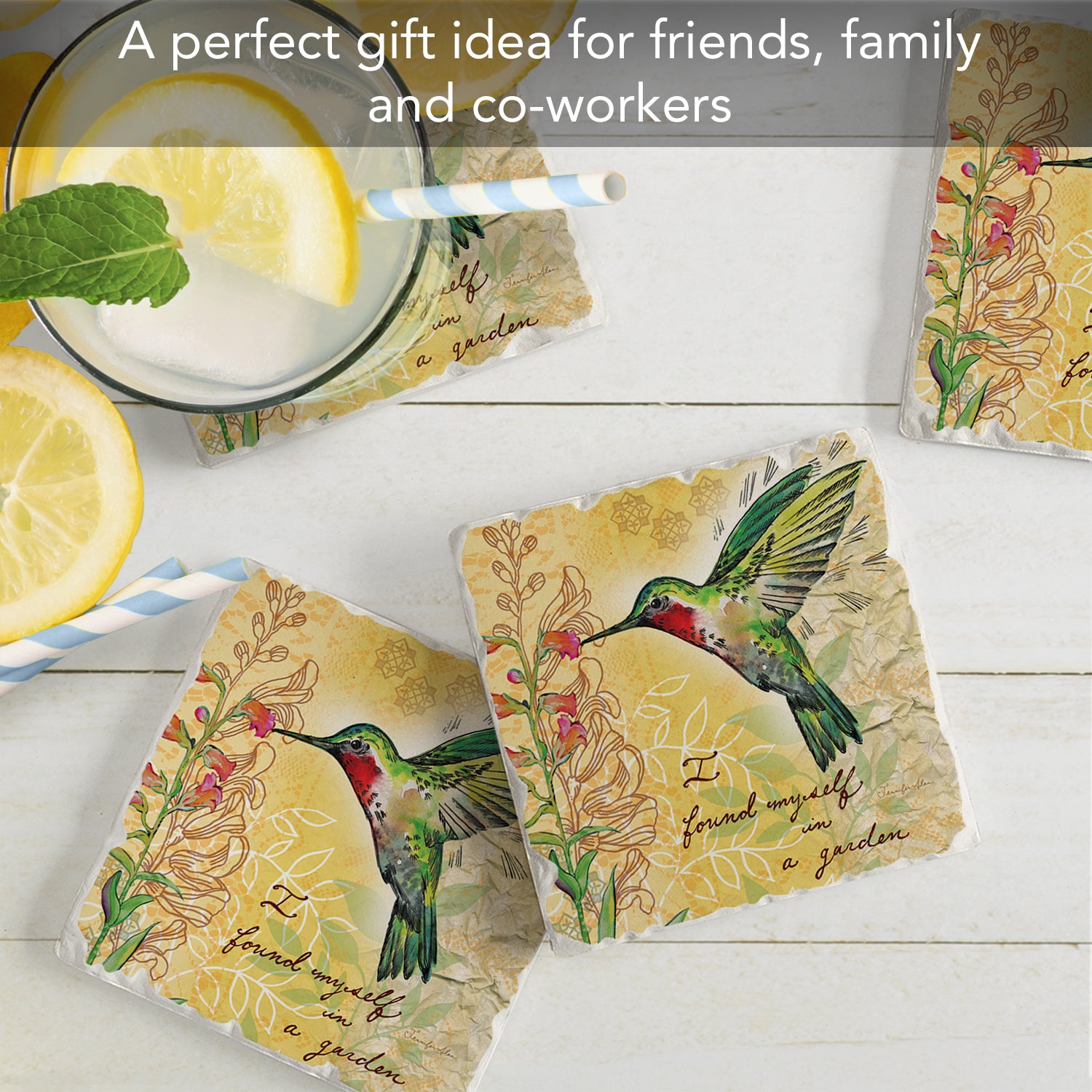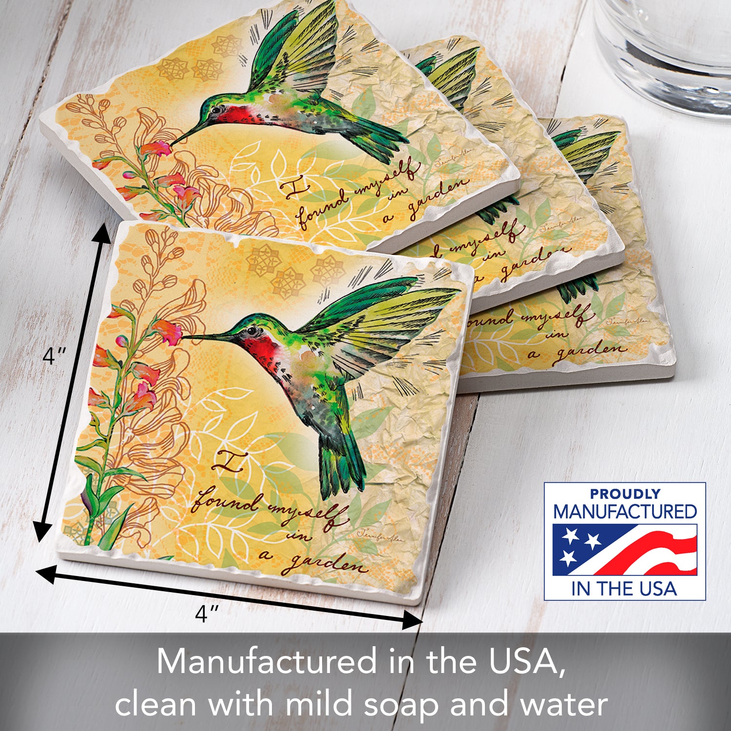 Thirstystone Hummingbird Flight 4 Pack Tumbled Tile Stone Coasters 4" Square Manufactured in the USA
