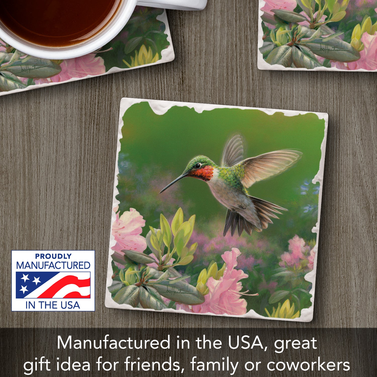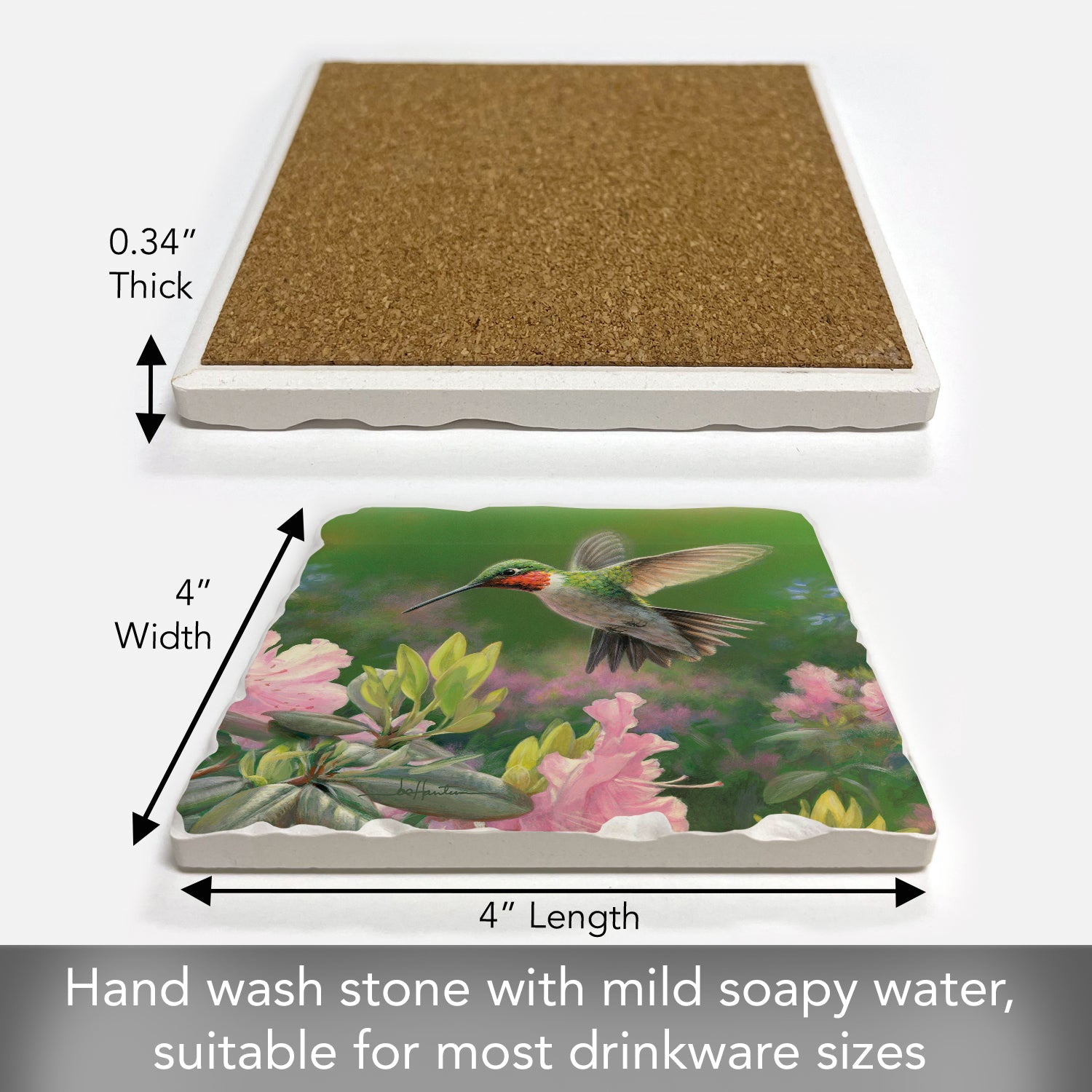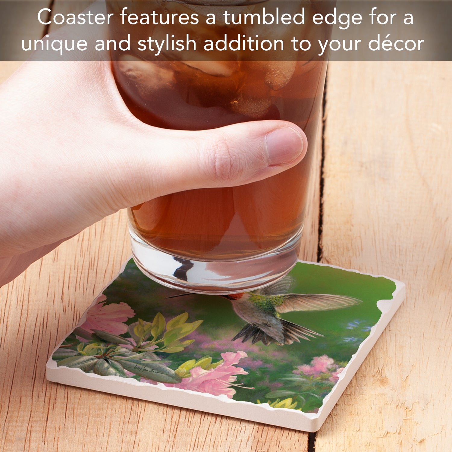Thirstystone Hummingbird Nectar Single Tumbled Tile Stone Coaster with Protective Cork Backing Manufactured in The USA 4" Square, Artistic, Easily Wipes Clean
