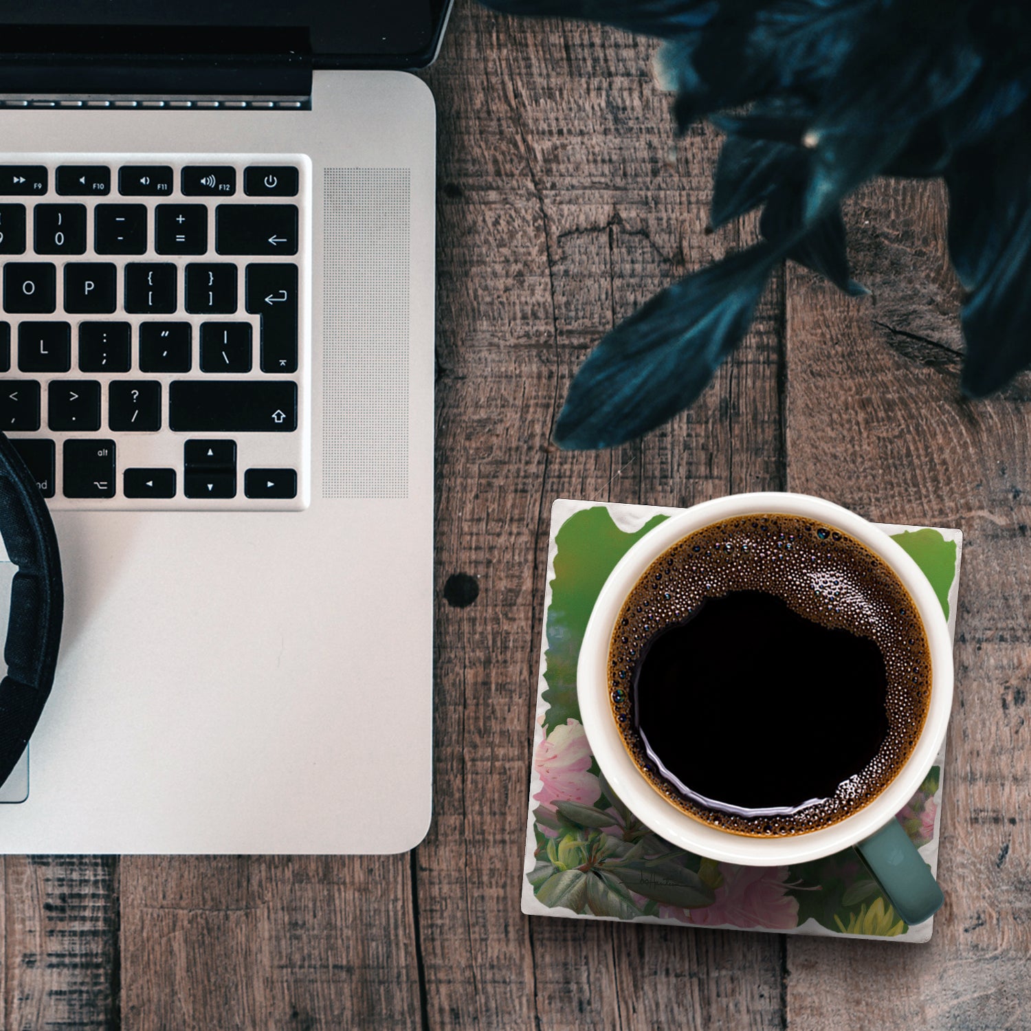 - ARTISTIC DESIGN-Beautiful artistic design allows the Coaster to remain displayed even when not in use. Each Coaster measures 4†x 4†x .25â€. Sized to fit larger Mugs & Glasses.