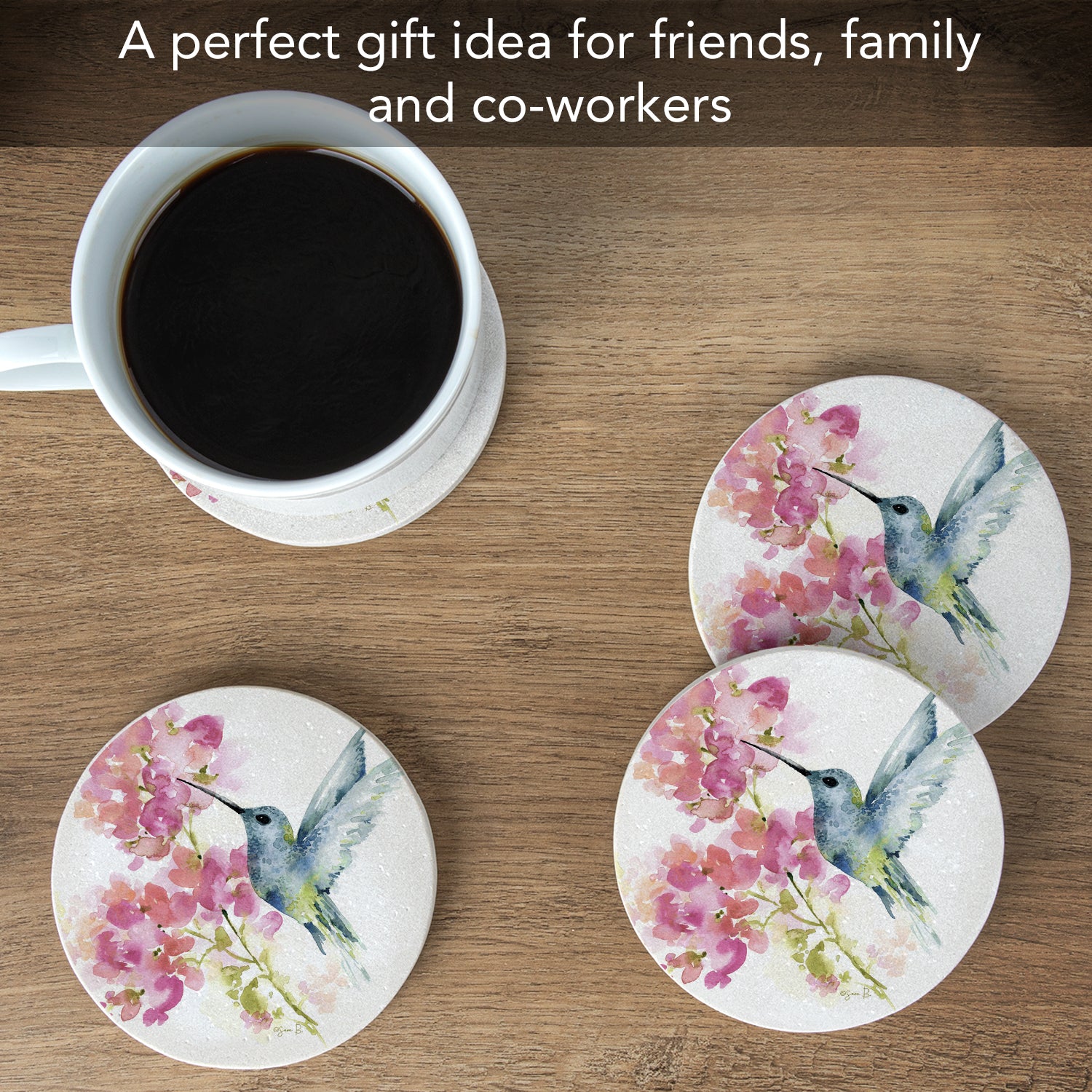 Thirstystone Hummingbird Watercolor 4 Pack Round Natural Sandstone Coasters 4" Round