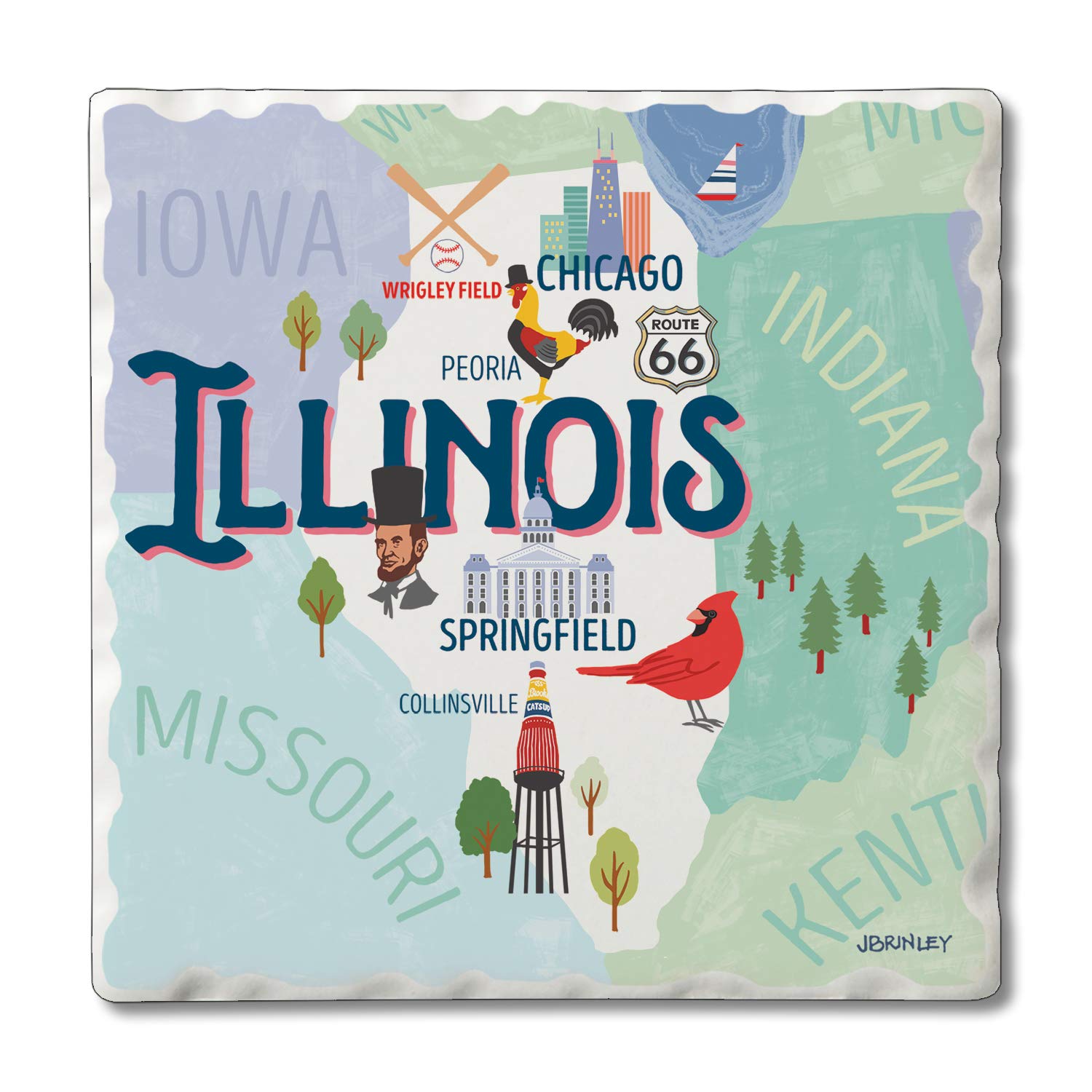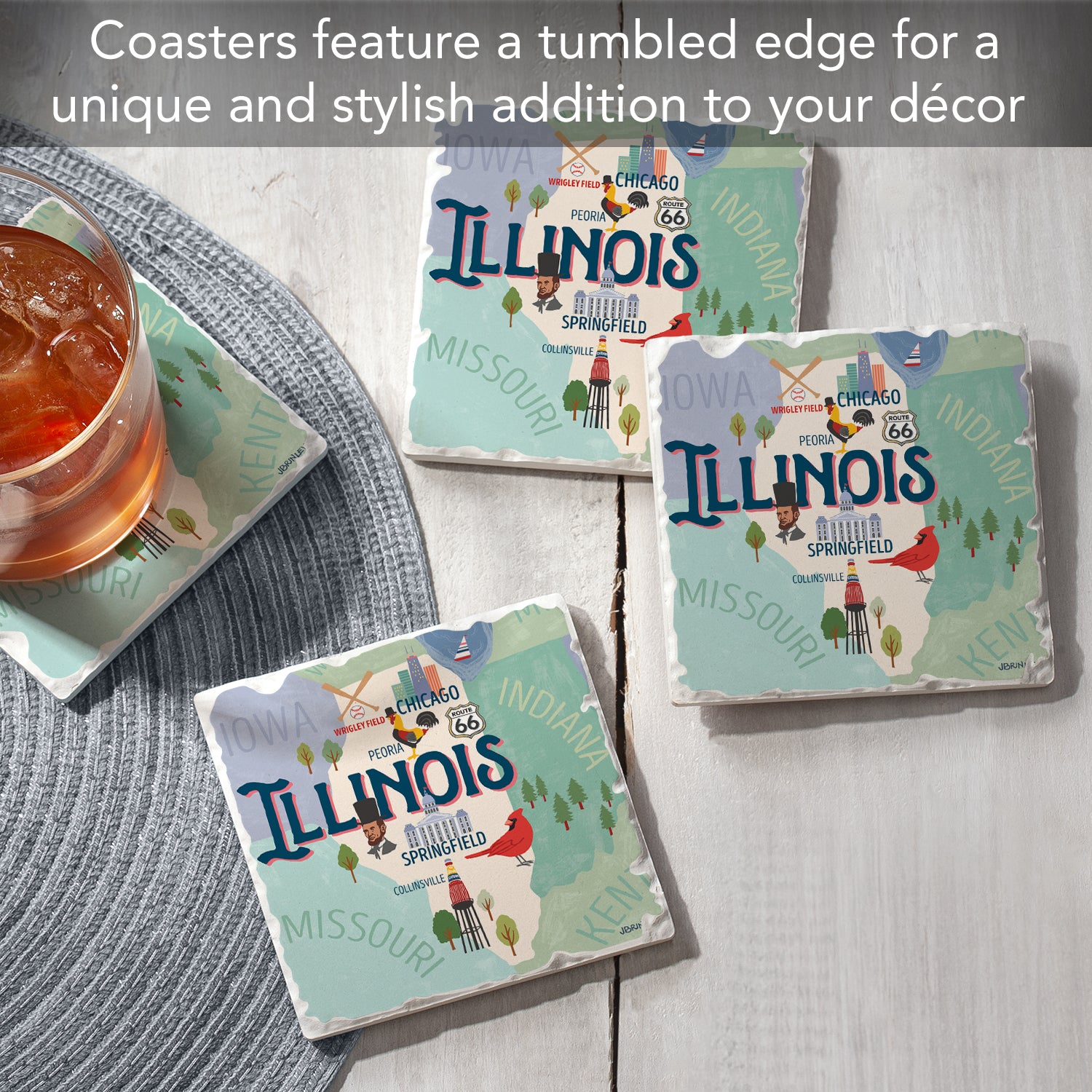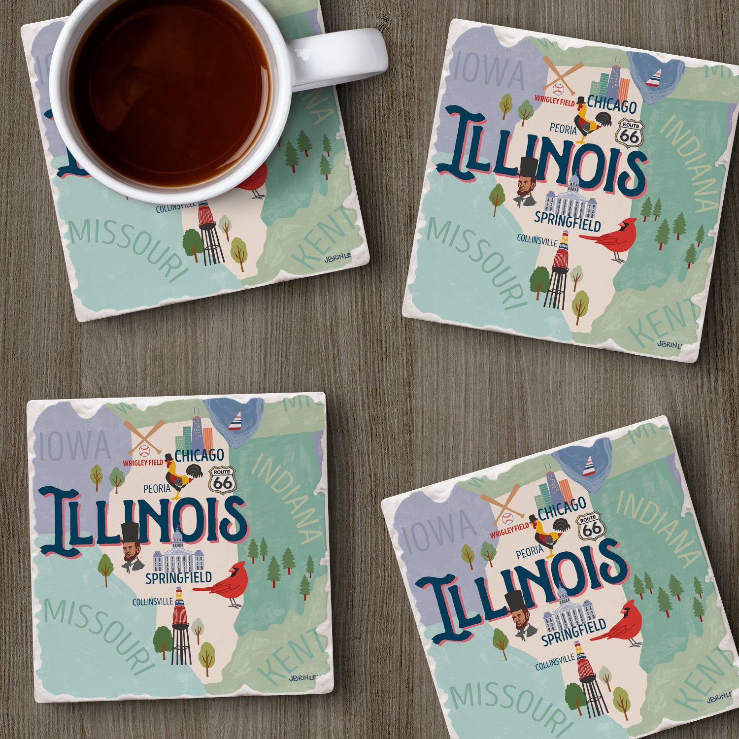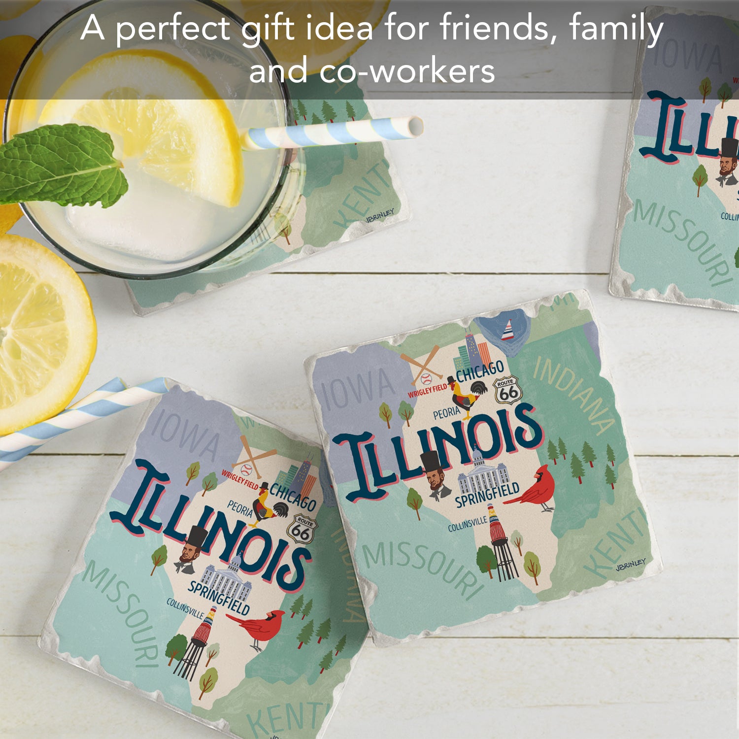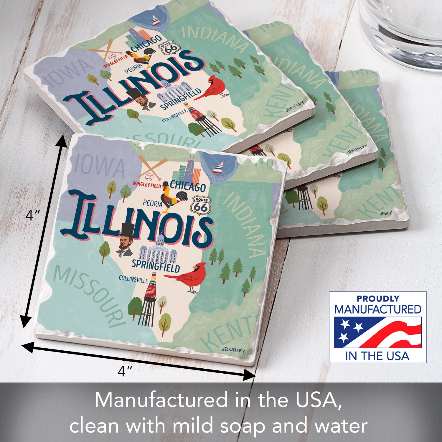 Thirstystone Illinois Attractions 4 Pack Tumbled Tile Stone Coasters 4” Square Manufactured in the USA