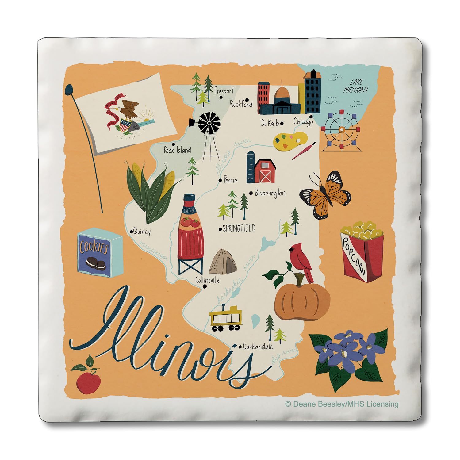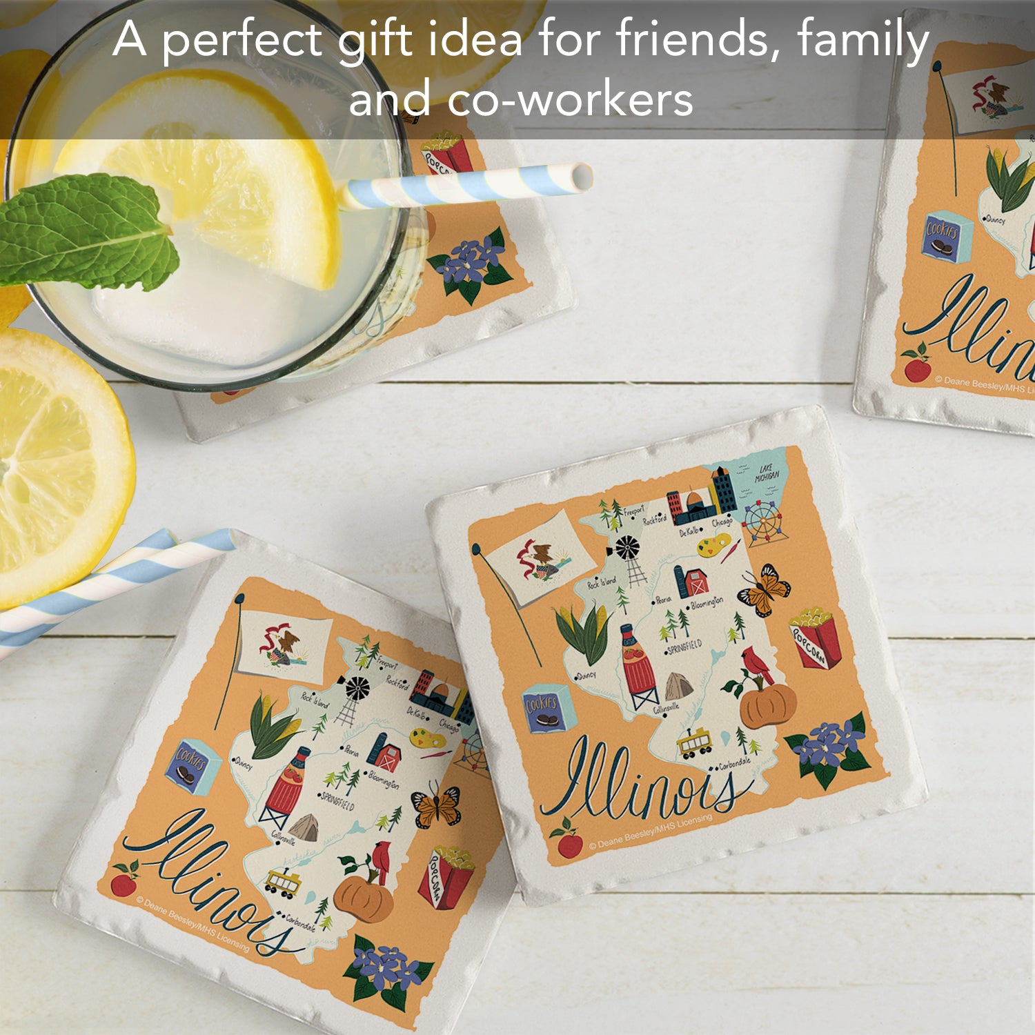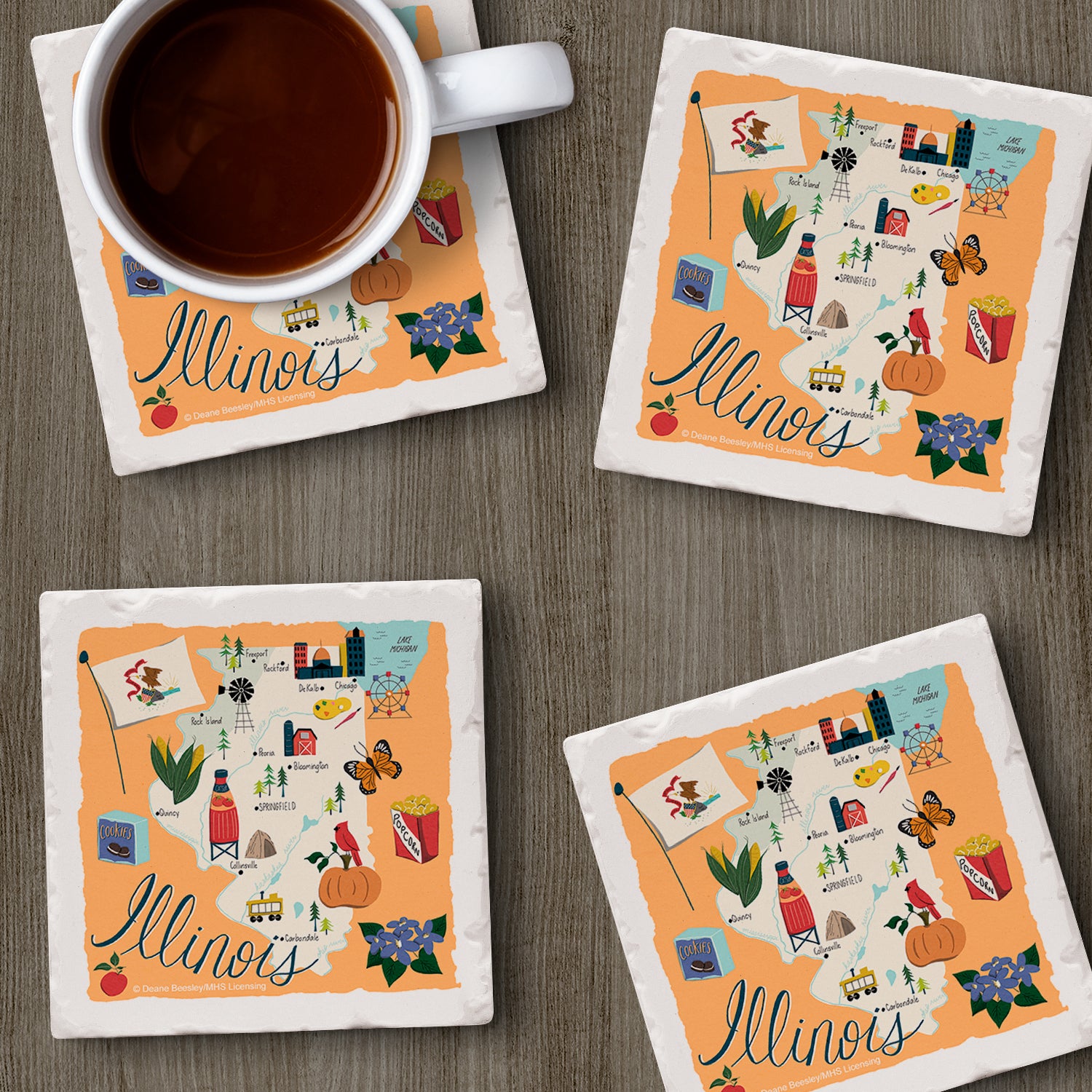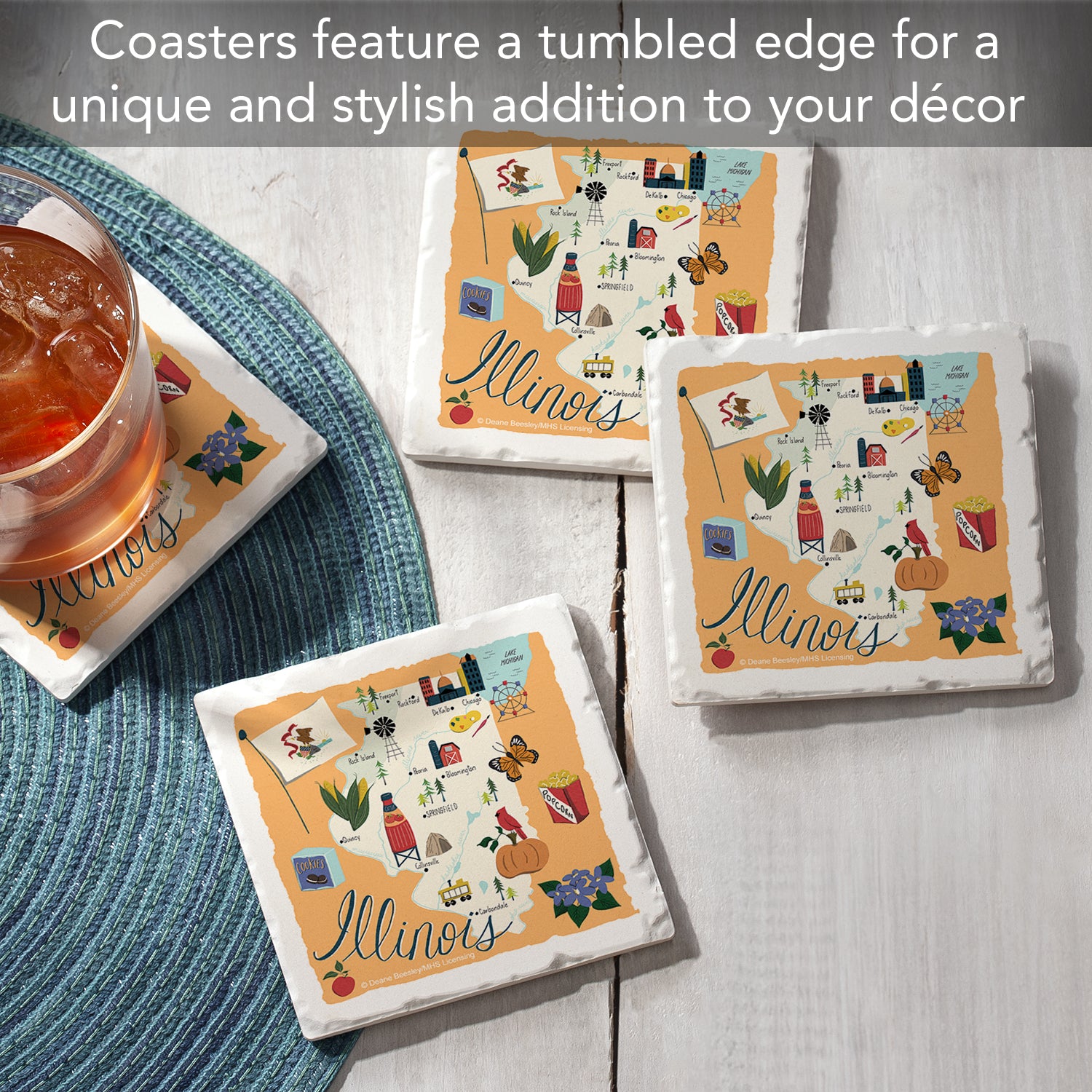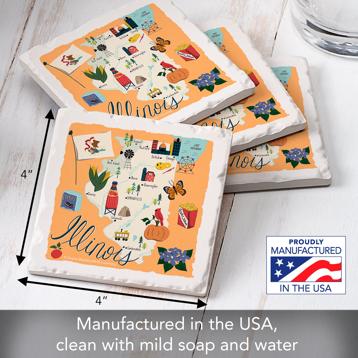 Thirstystone Illinois Home State 4 Pack Tumbled Tile Stone Coasters 4" Square Manufactured in the USA