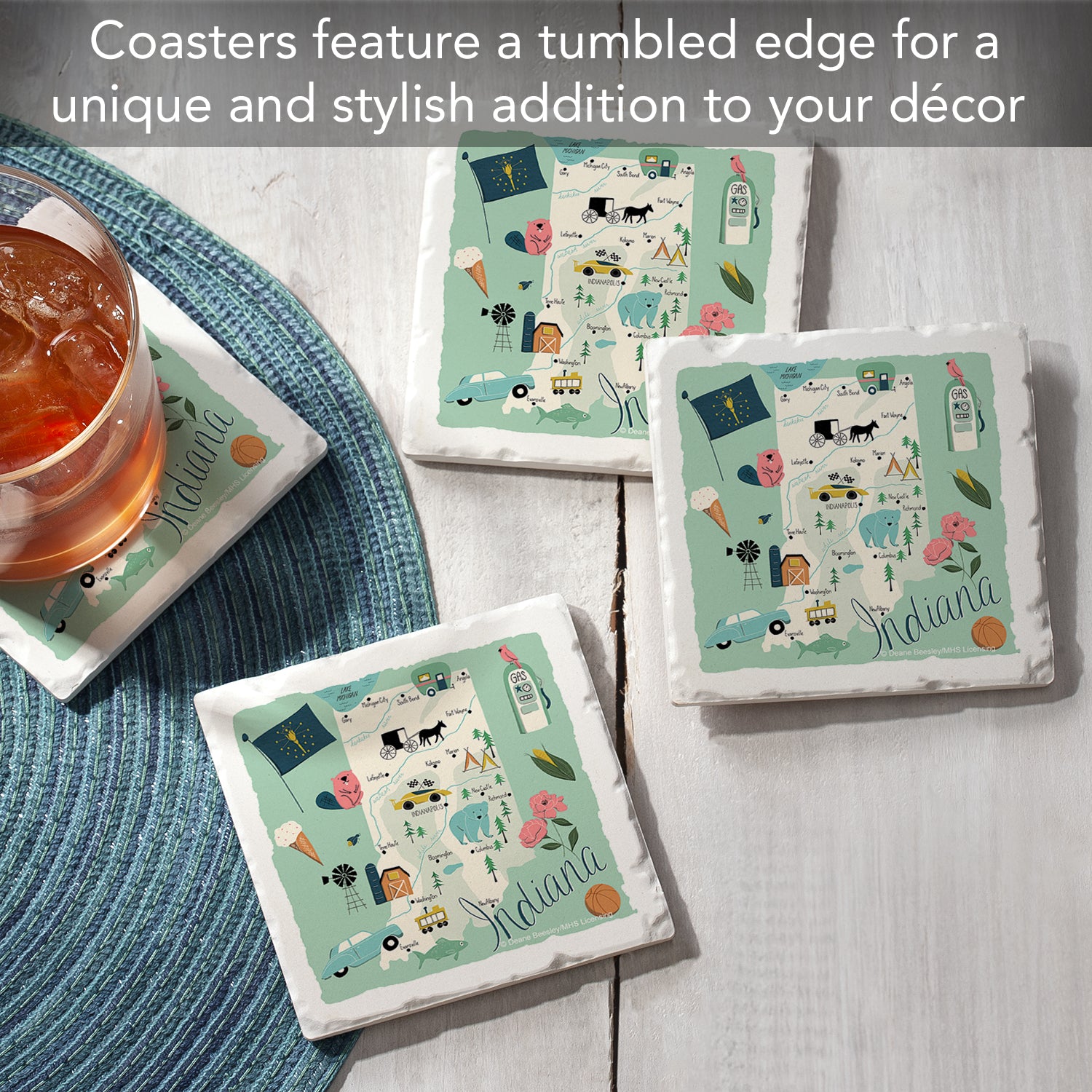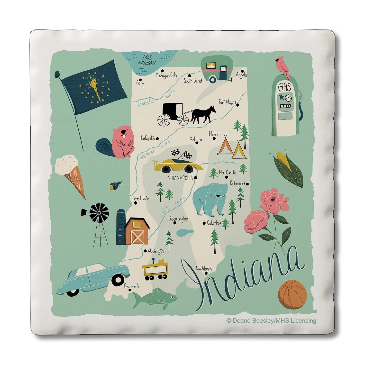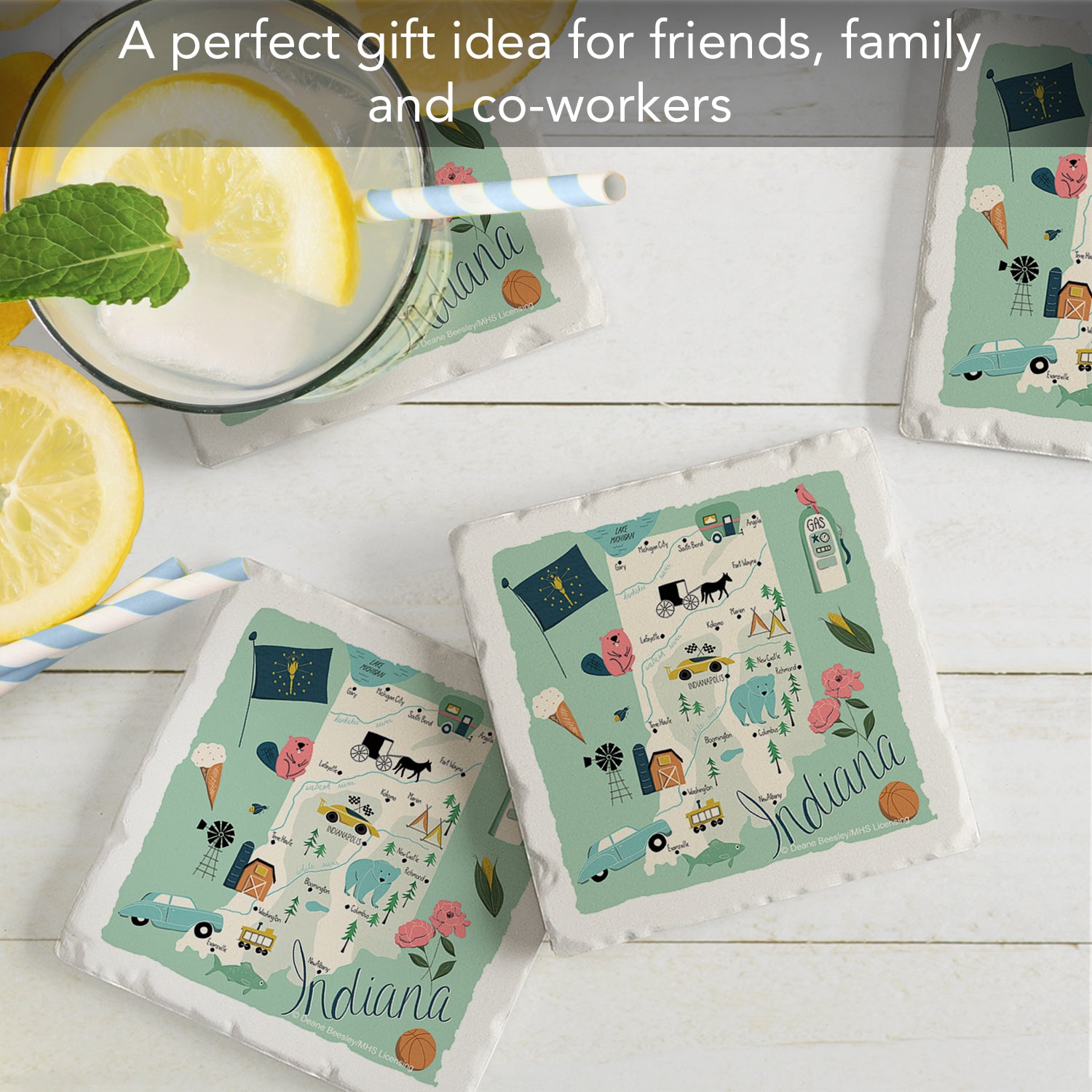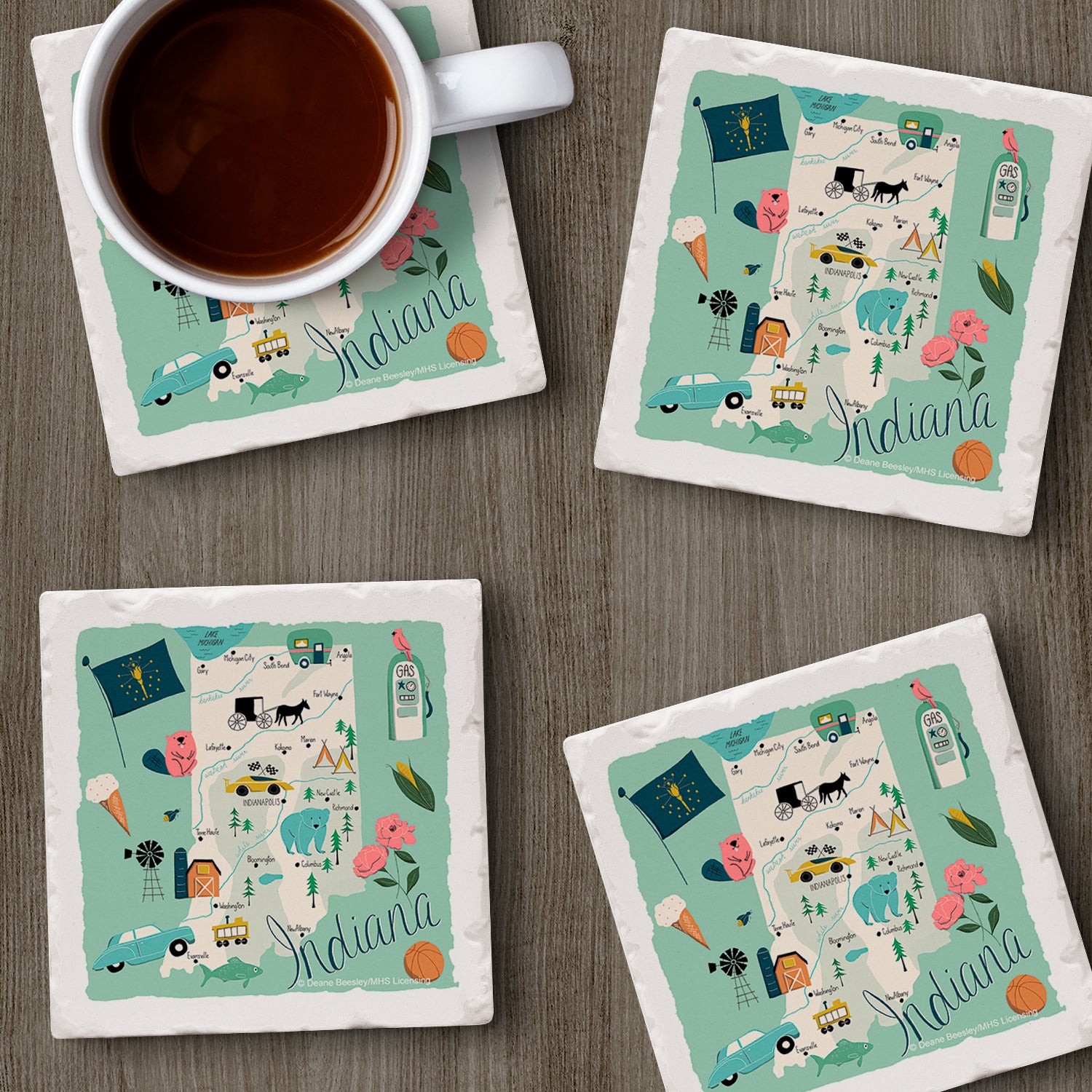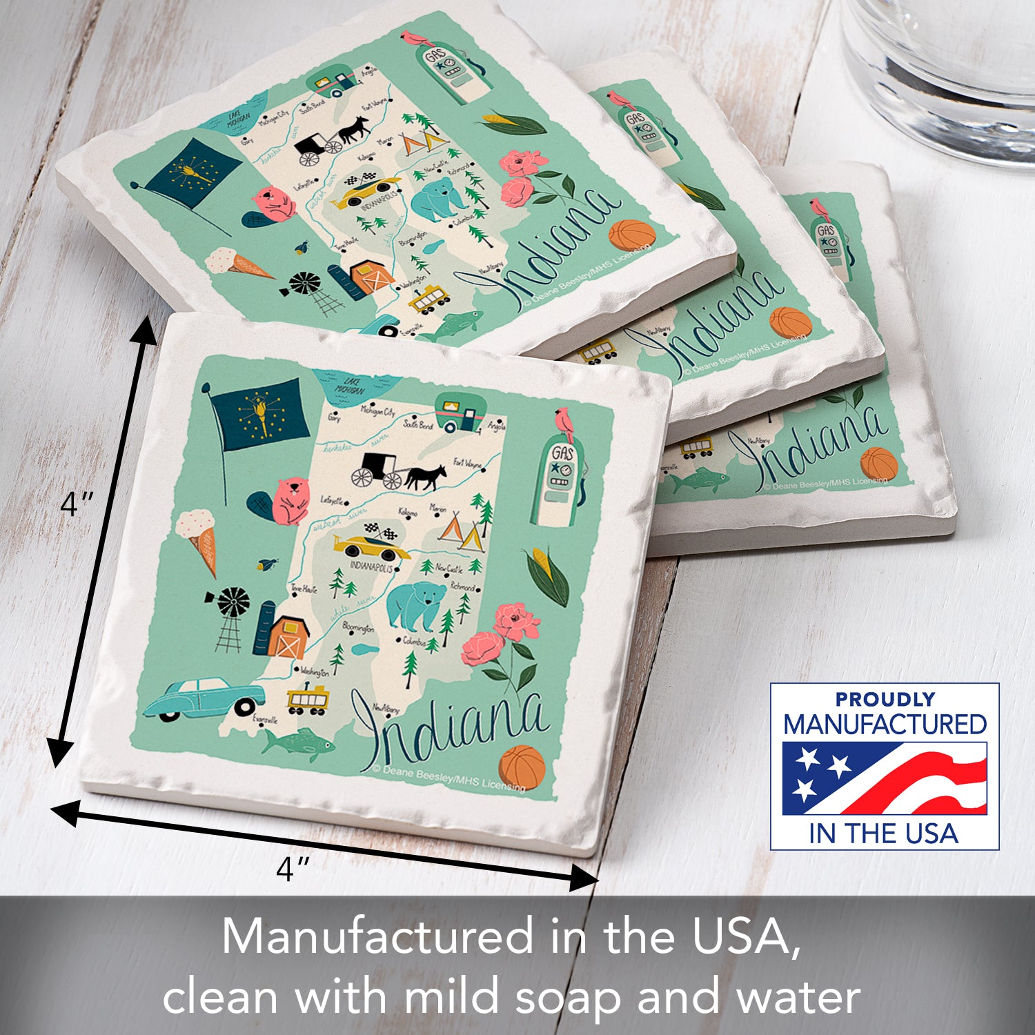 Thirstystone Indiana Home State 4 Pack Tumbled Tile Stone Coasters 4" Square Manufactured in the USA