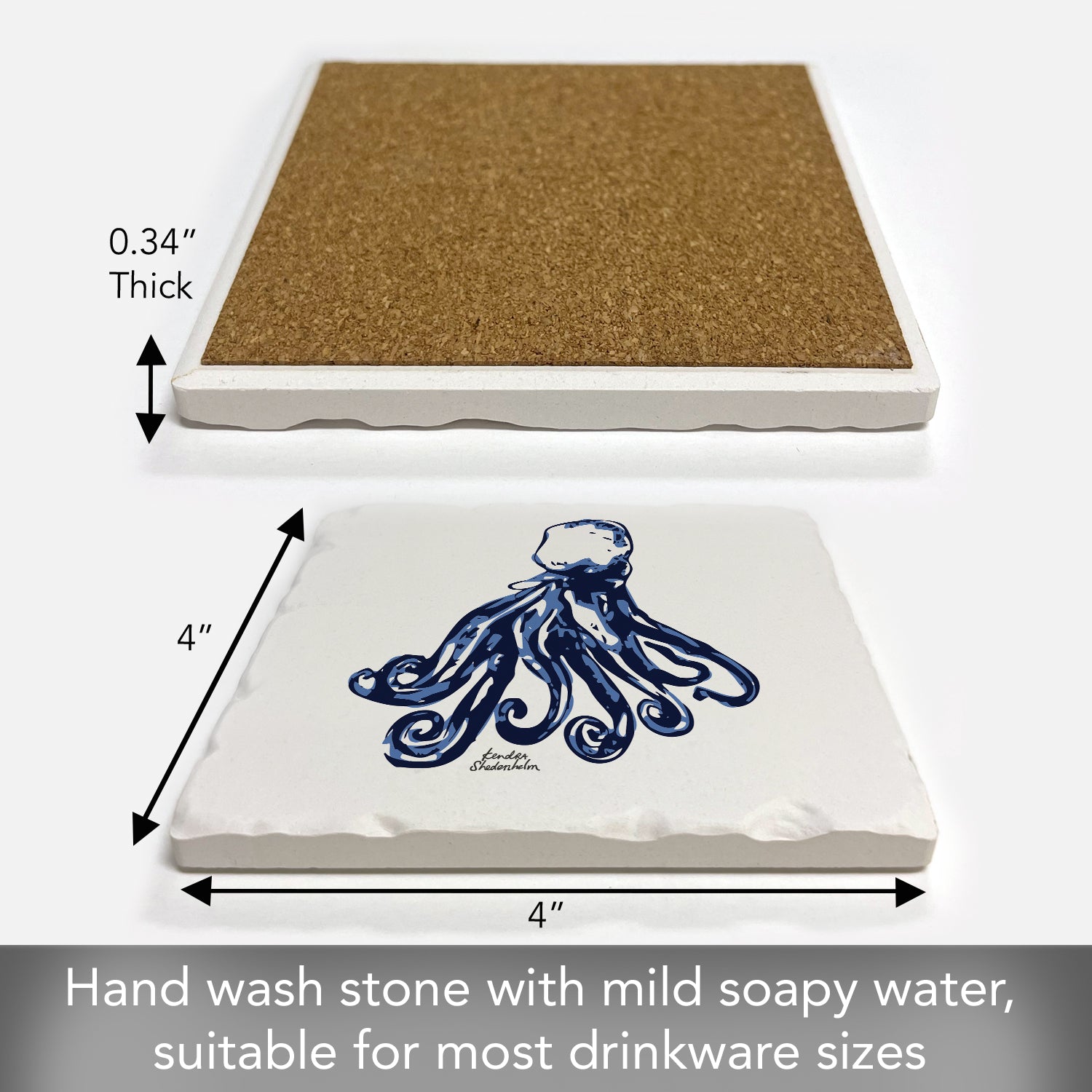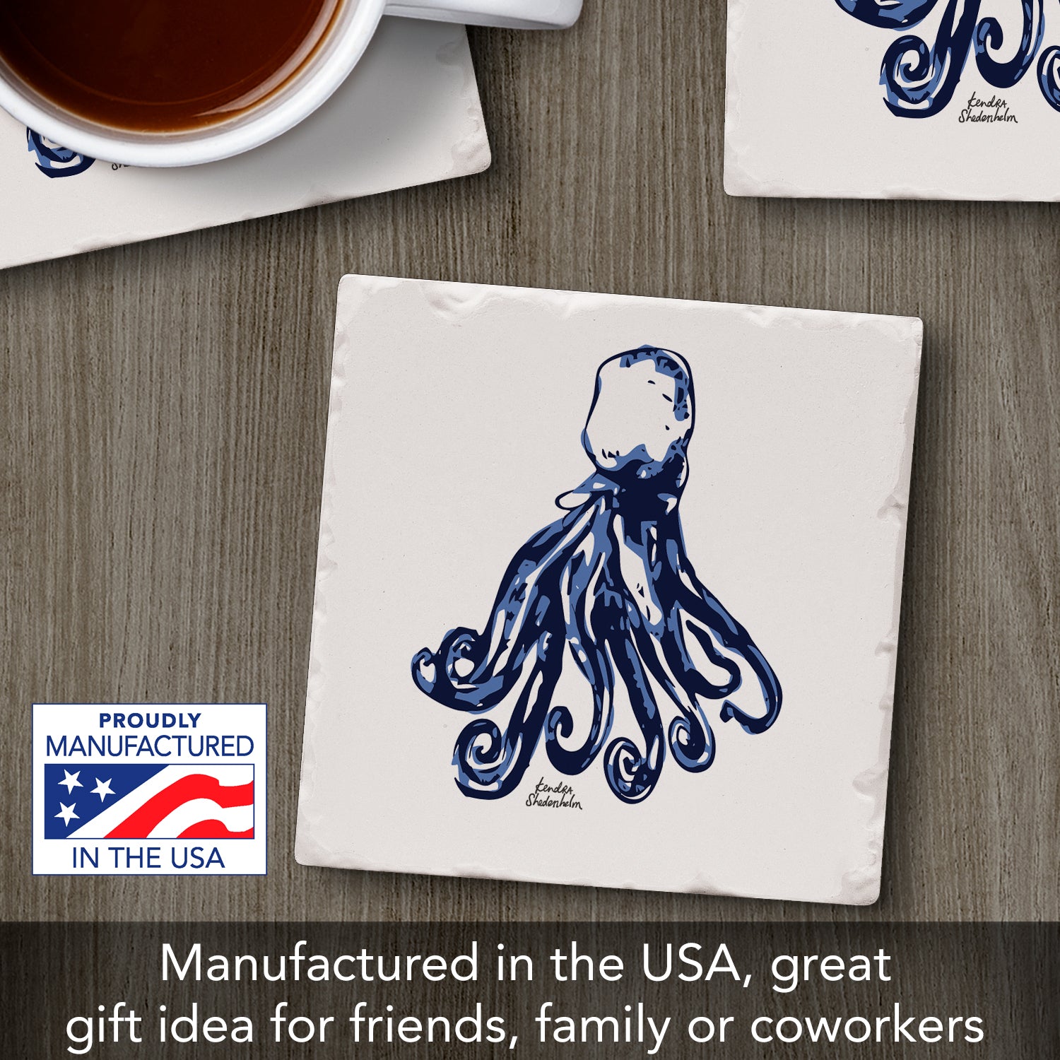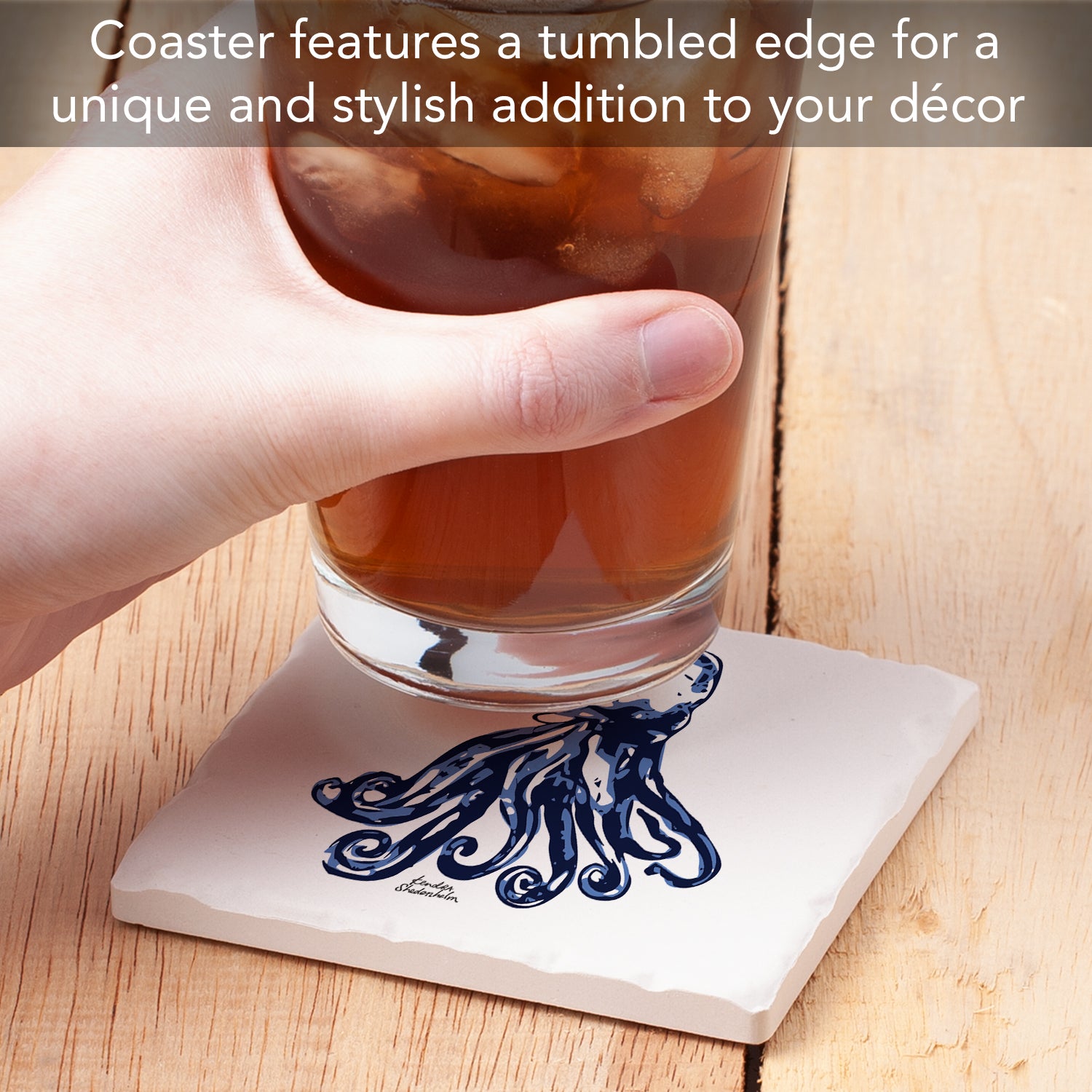 Thirstystone Indigo Octopus Single Tumbled Tile Stone Coaster with Protective Cork Backing Manufactured in The USA 4" Square, Colorful, Artistiic, Easily Wipes Clean