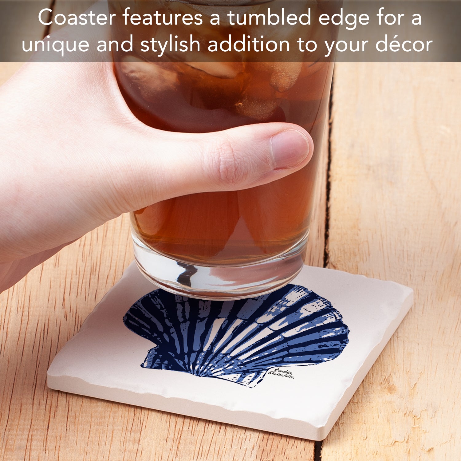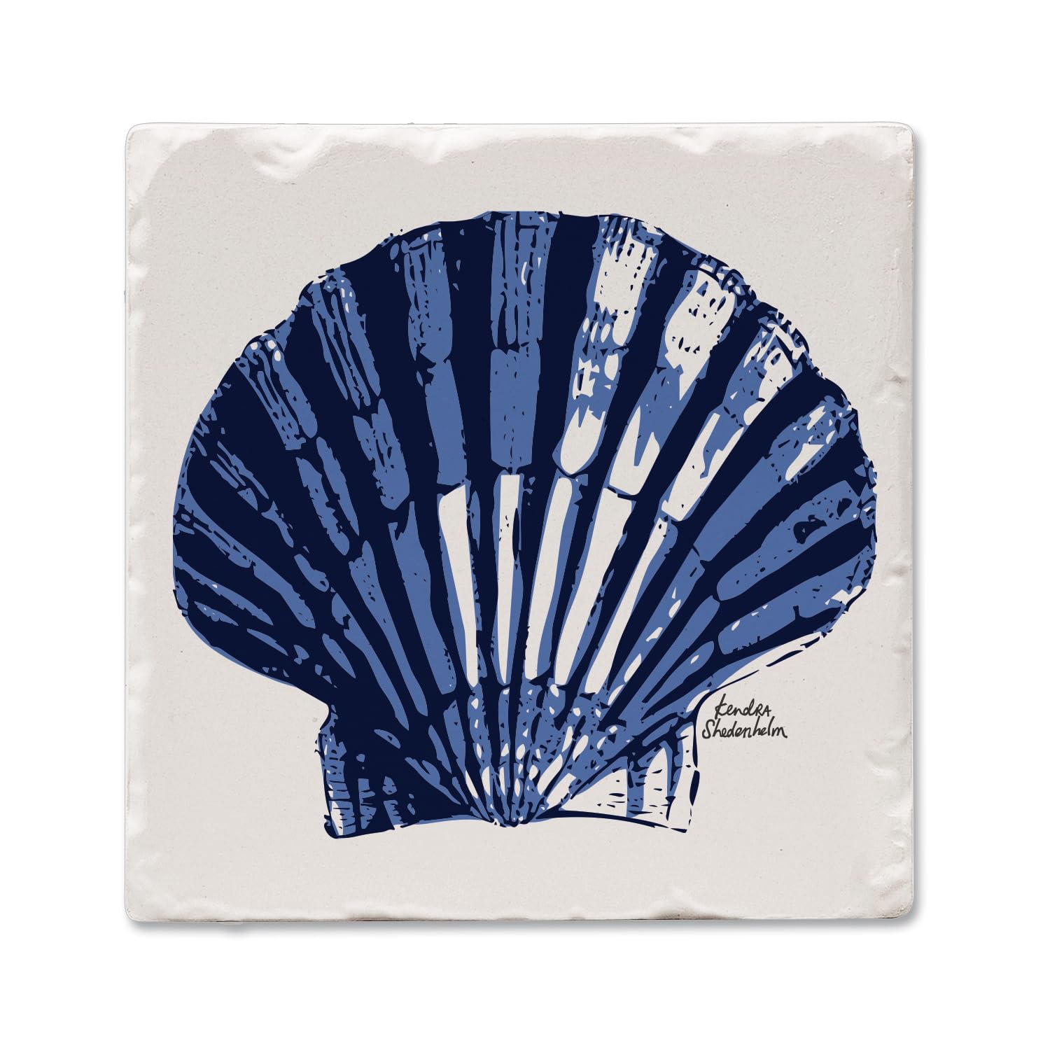 Thirstystone Indigo Scallop Single Tumbled Tile Stone Coaster with Protective Cork Backing Manufactured in The USA 4" Square, Colorful, Artistiic, Easily Wipes Clean
