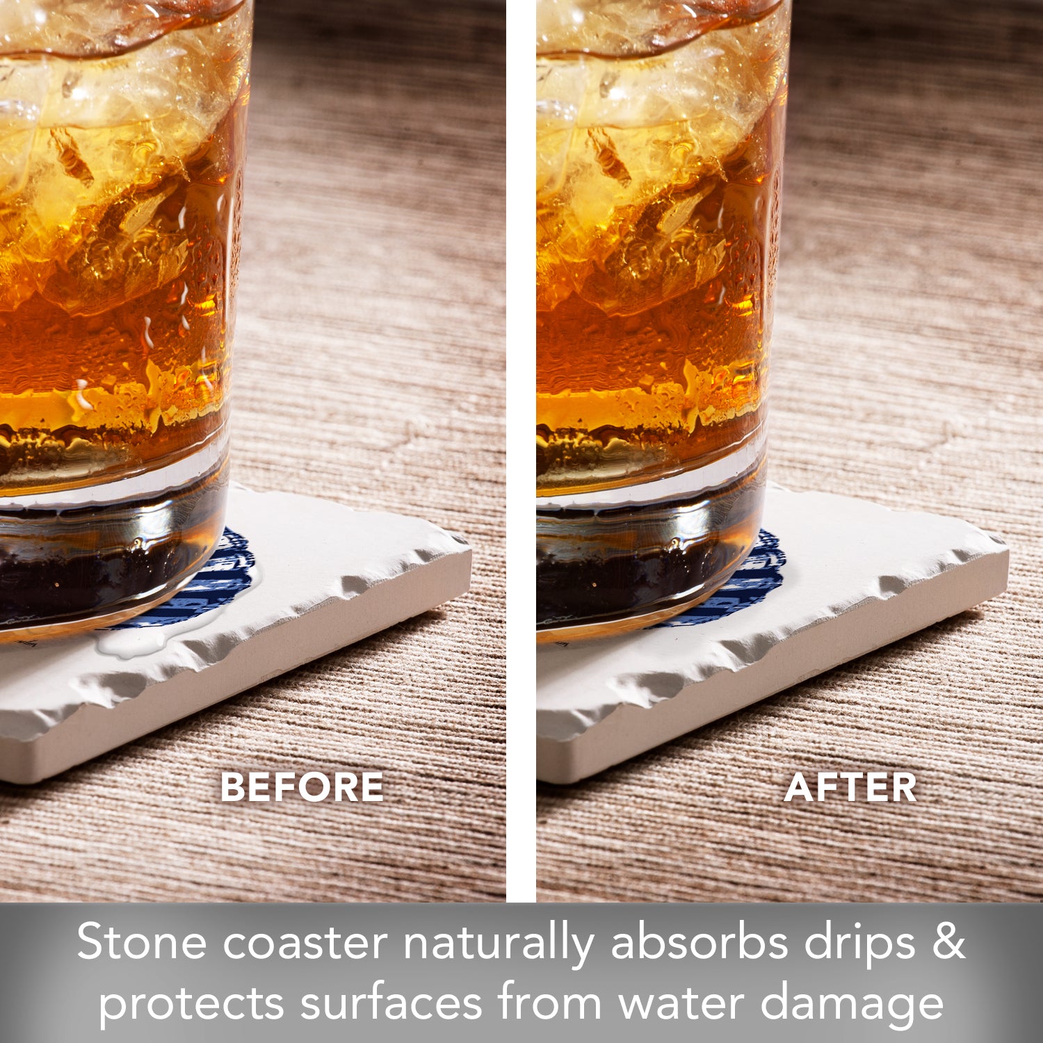 ABSORBENT STONE-Coaster is constructed from absorbent stone to absorb excess condensation from beverages. This is a 1 Coaster Pack to allow you to choose from our other coordinating Coaster Designs and create your own personal set.