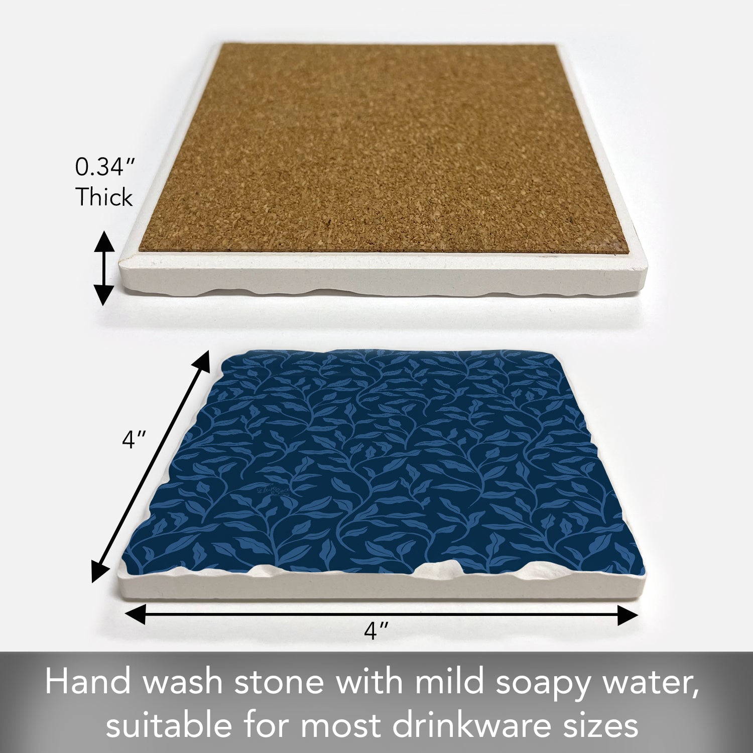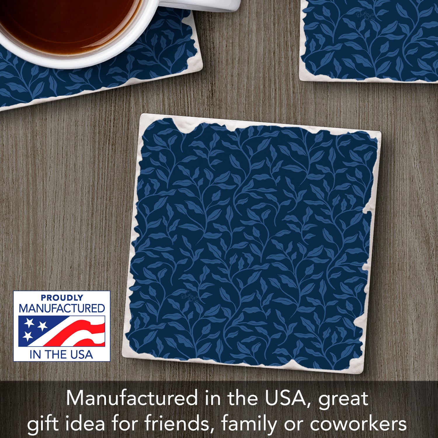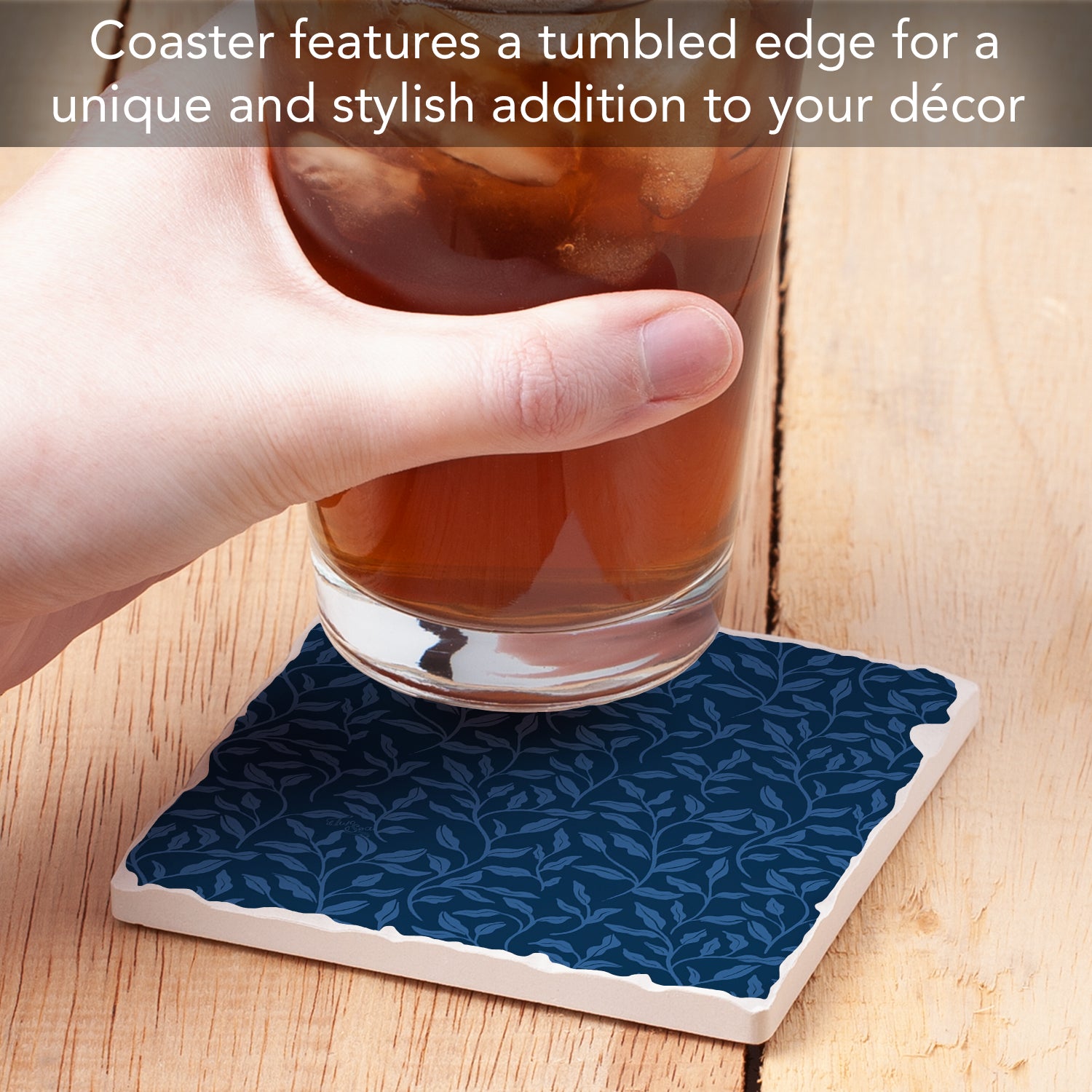 Thirstystone Indigo Sea Single Tumbled Tile Stone Coaster with Protective Cork Backing Manufactured in The USA 4" Square, Colorful, Artistiic, Easily Wipes Clean
