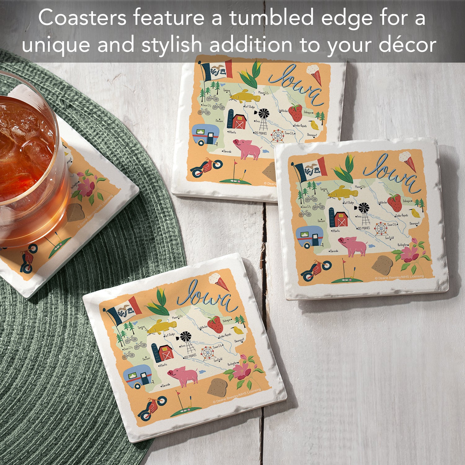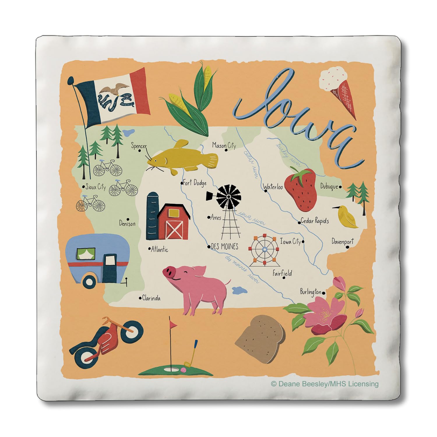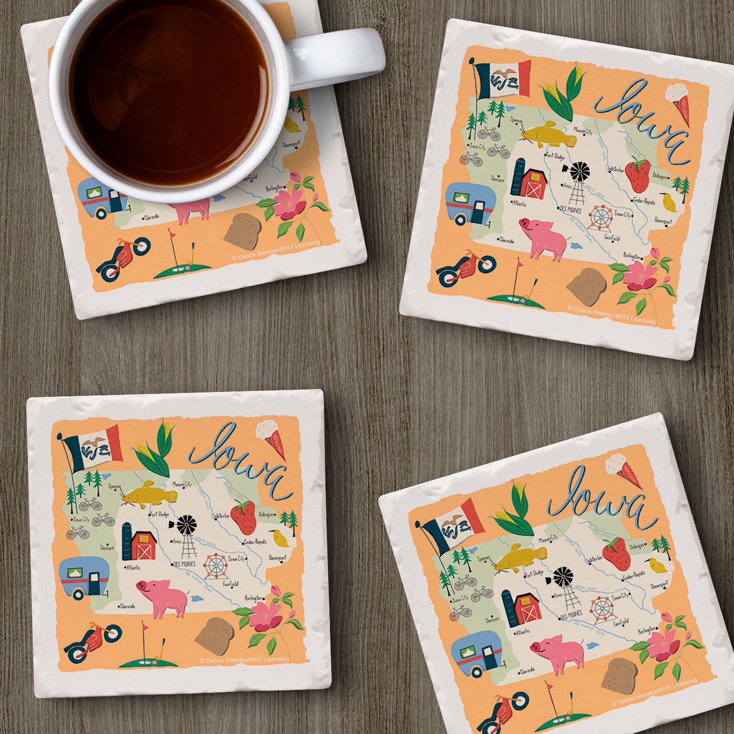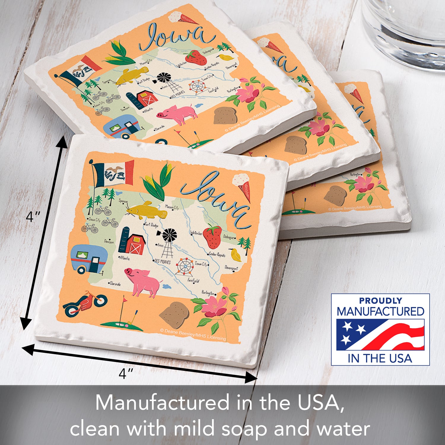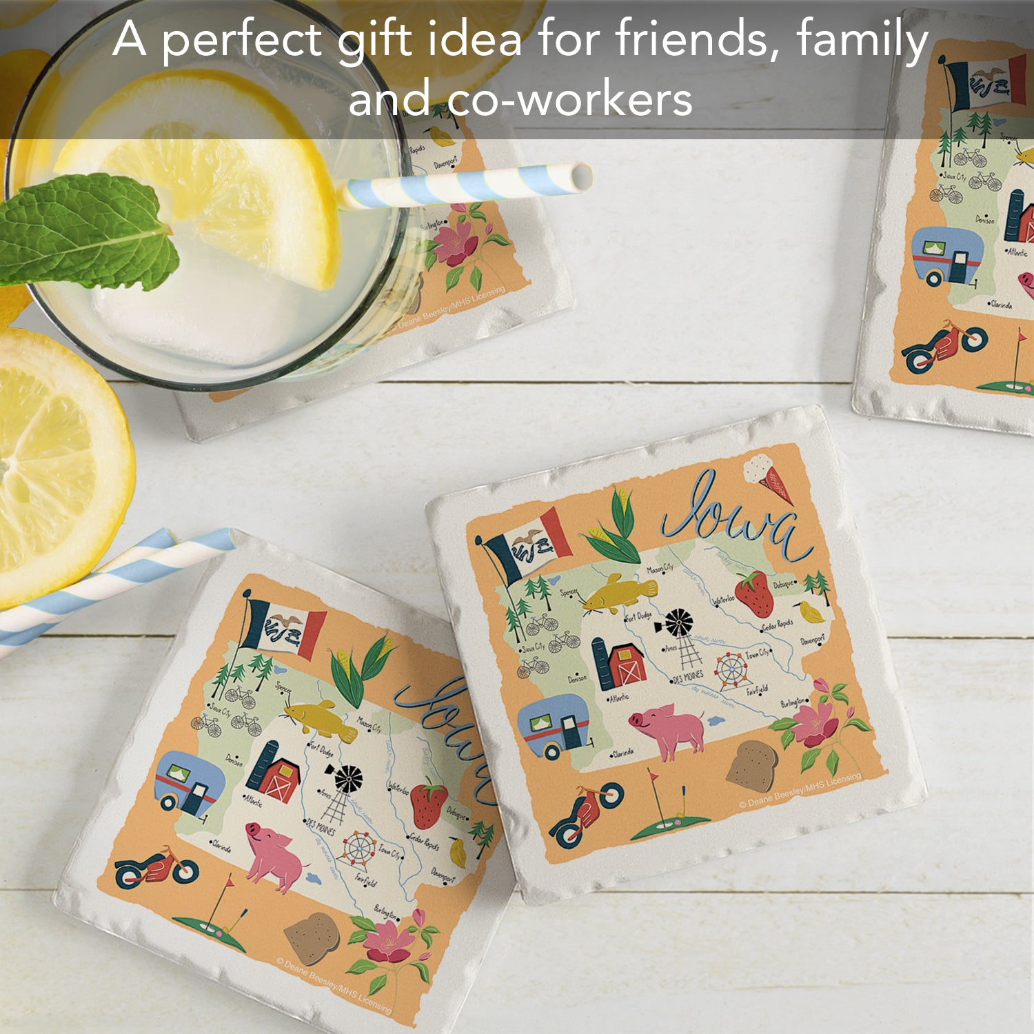 Thirstystone Iowa Home State 4 Pack Tumbled Tile Stone Coasters 4" Square Manufactured in the USA