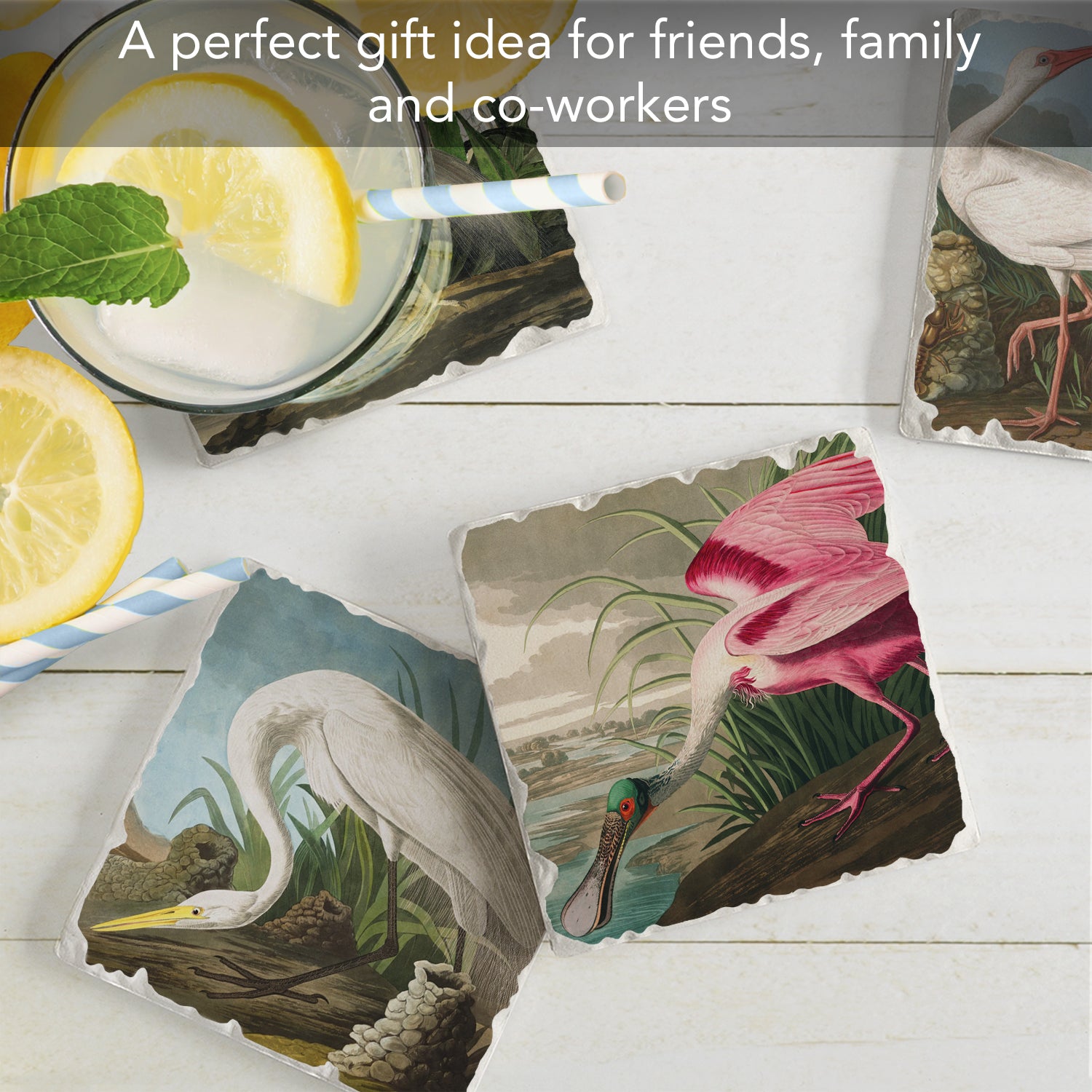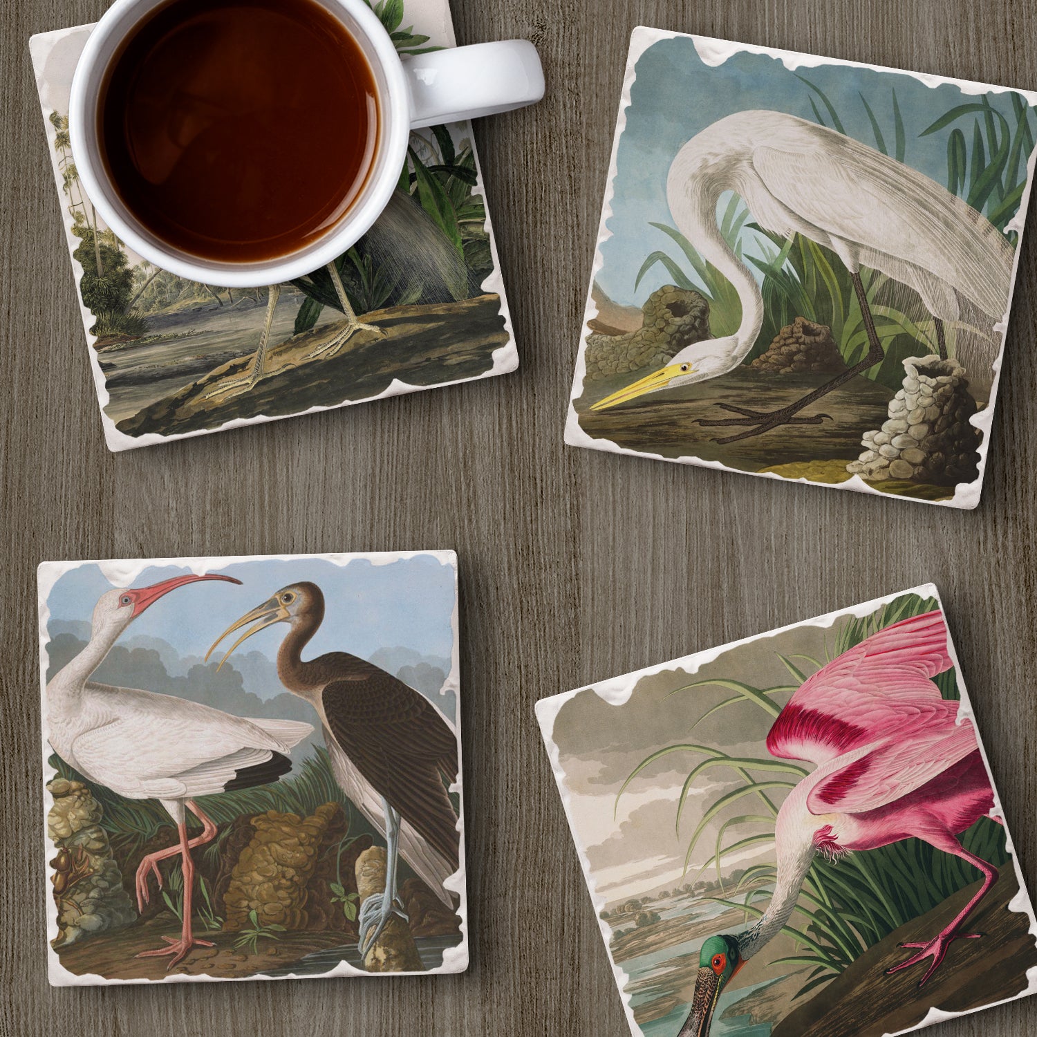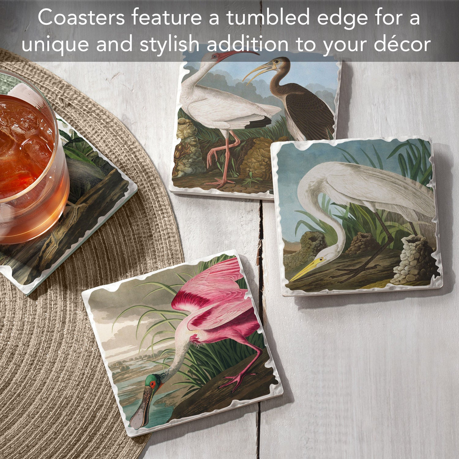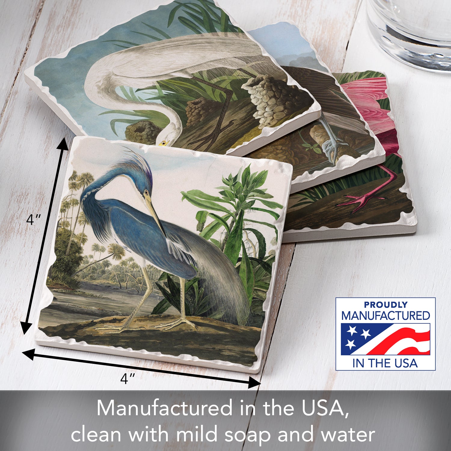 Thirstystone John James Audubon Collection 4-Pack Assorted Tumbled Tile Stone Coasters 4" Square