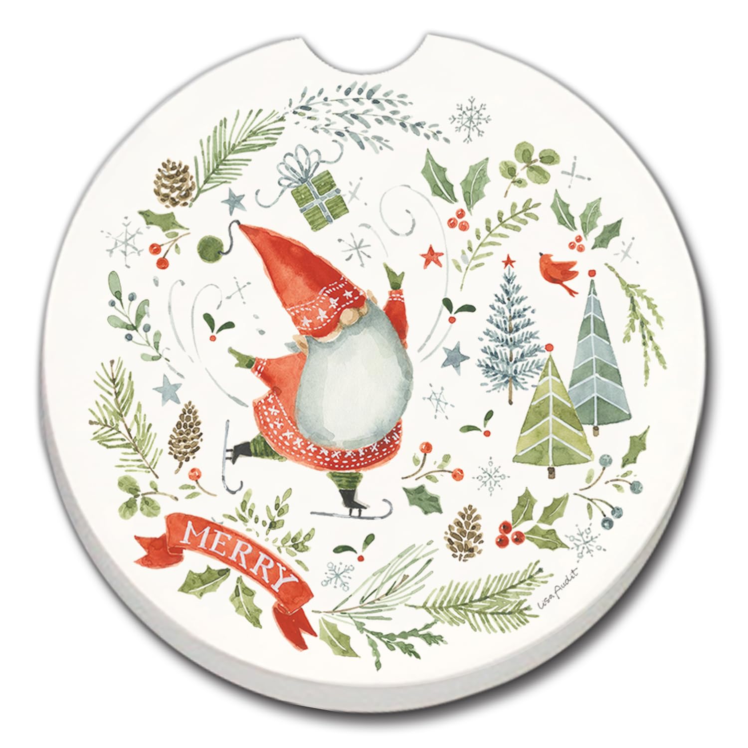 Thirstystone Jolly Gnome Absorbent Stone Coaster for Vehicle Cup Holder 1 Pack 2.6" Round Manufactured in The USA