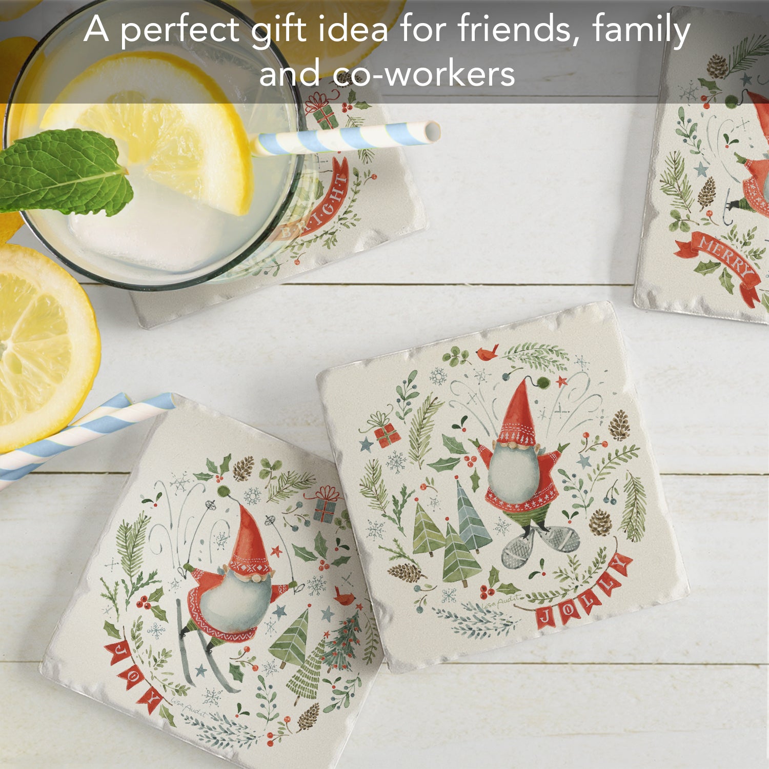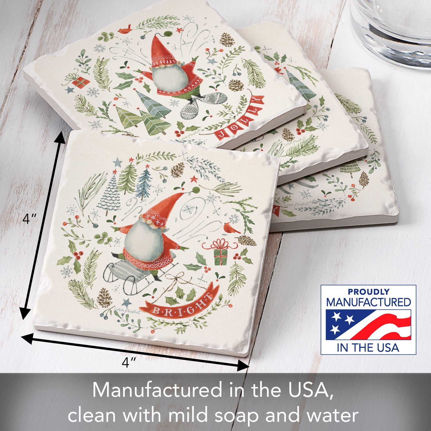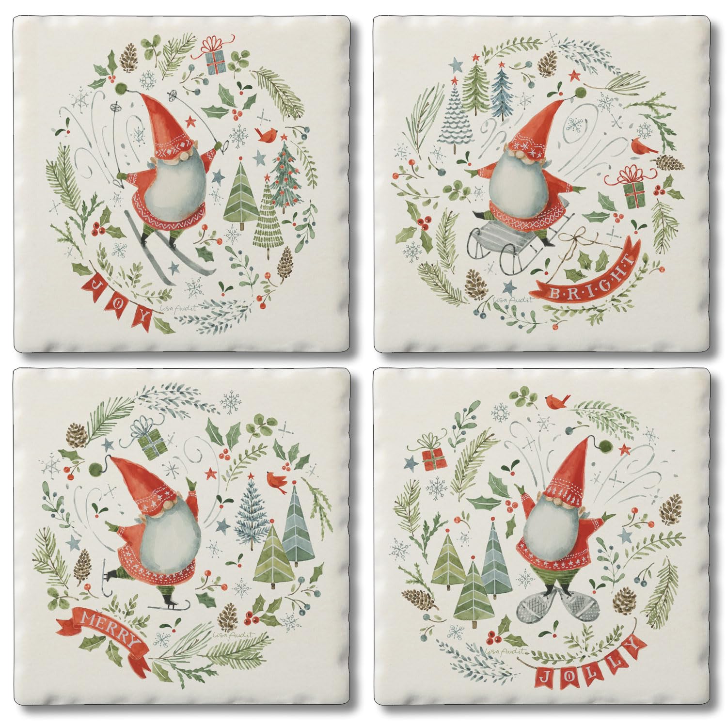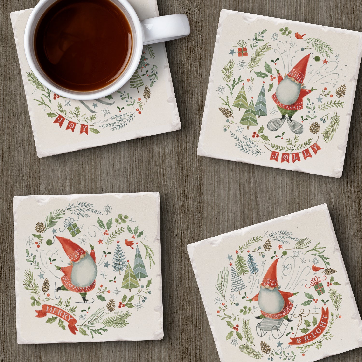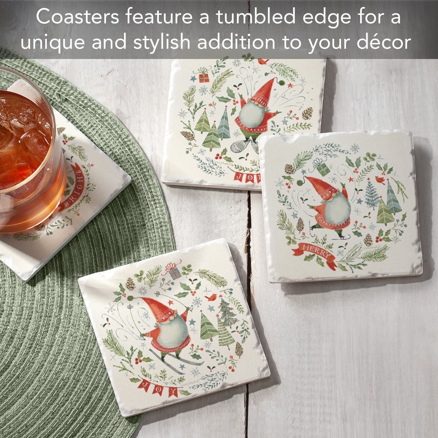 Thirstystone Jolly Gnomes 4 Pack Assorted Tumbled Tile Stone Coasters 4" Square
