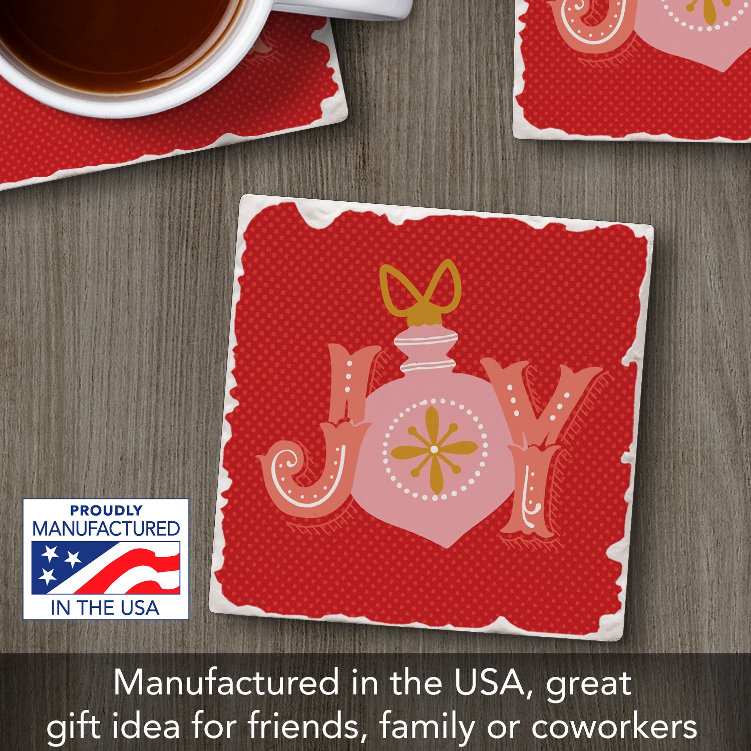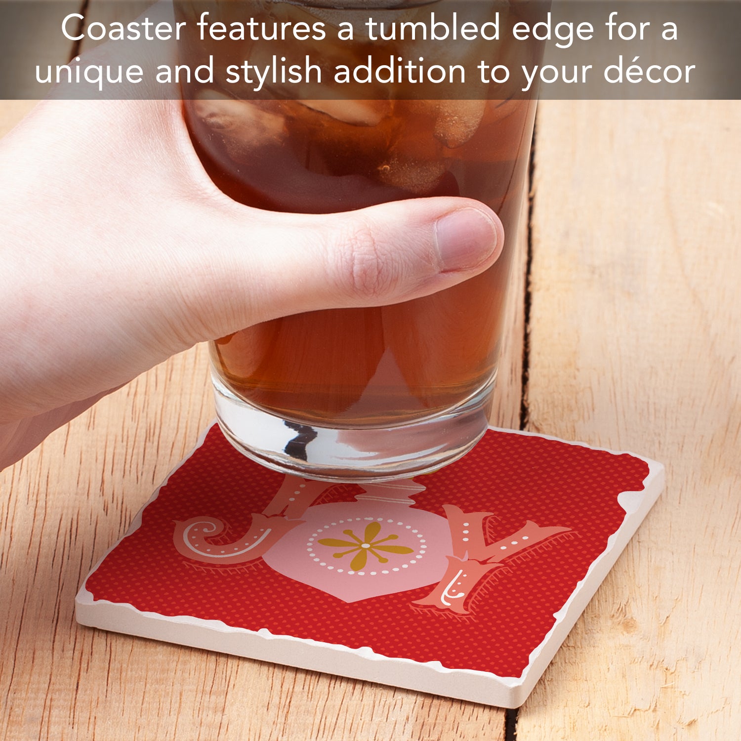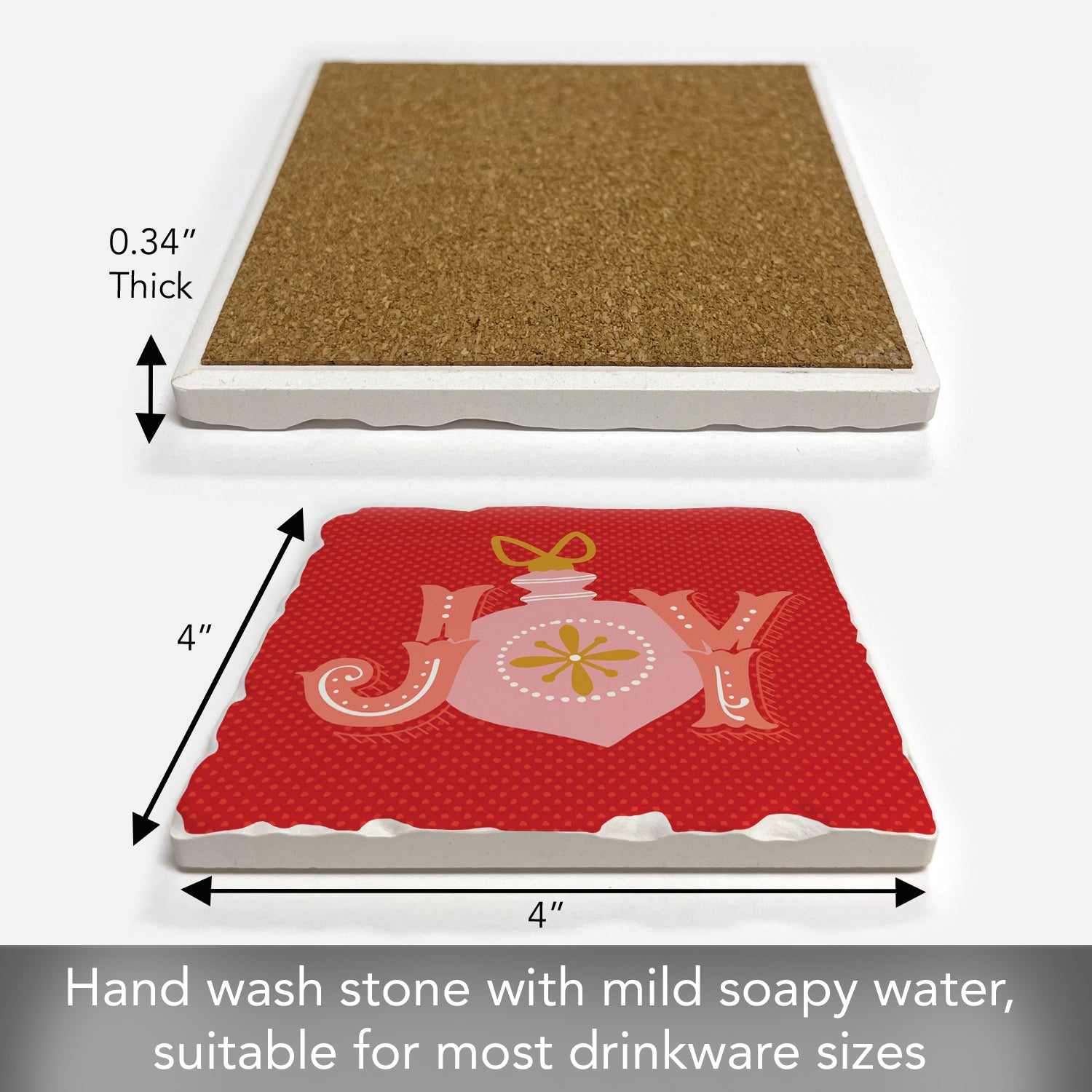 Thirstystone Joy Ornament Single Absorbent Stone Coaster with Protective Cork Backing Manufactured in The USA 4" Square, Artistic, Easily Wipes Clean