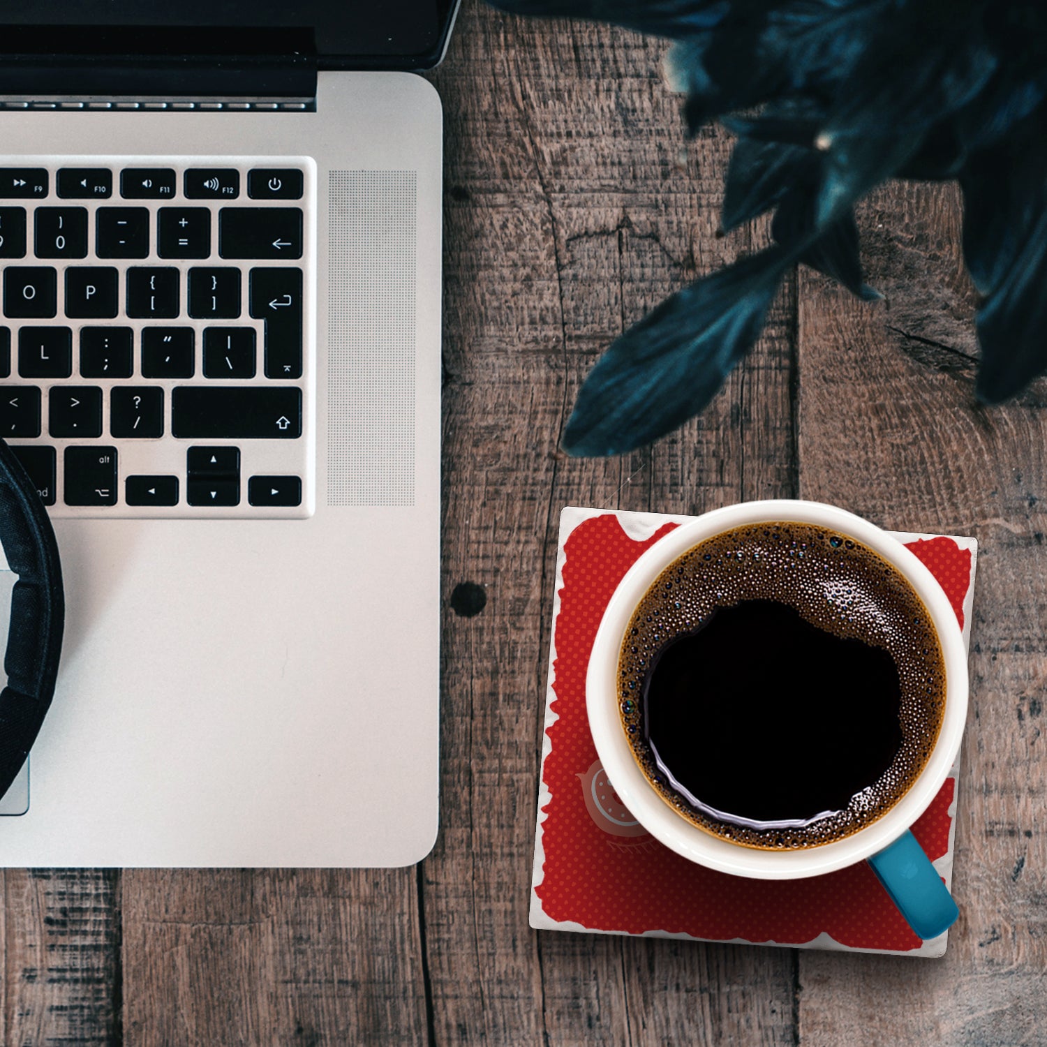FUNCTIONAL ART-Beautiful artistic design allows the Coaster to remain displayed even when not in use. Each Coaster measures 4” x 4” x .25”. Sized to fit larger Mugs & Glasses.