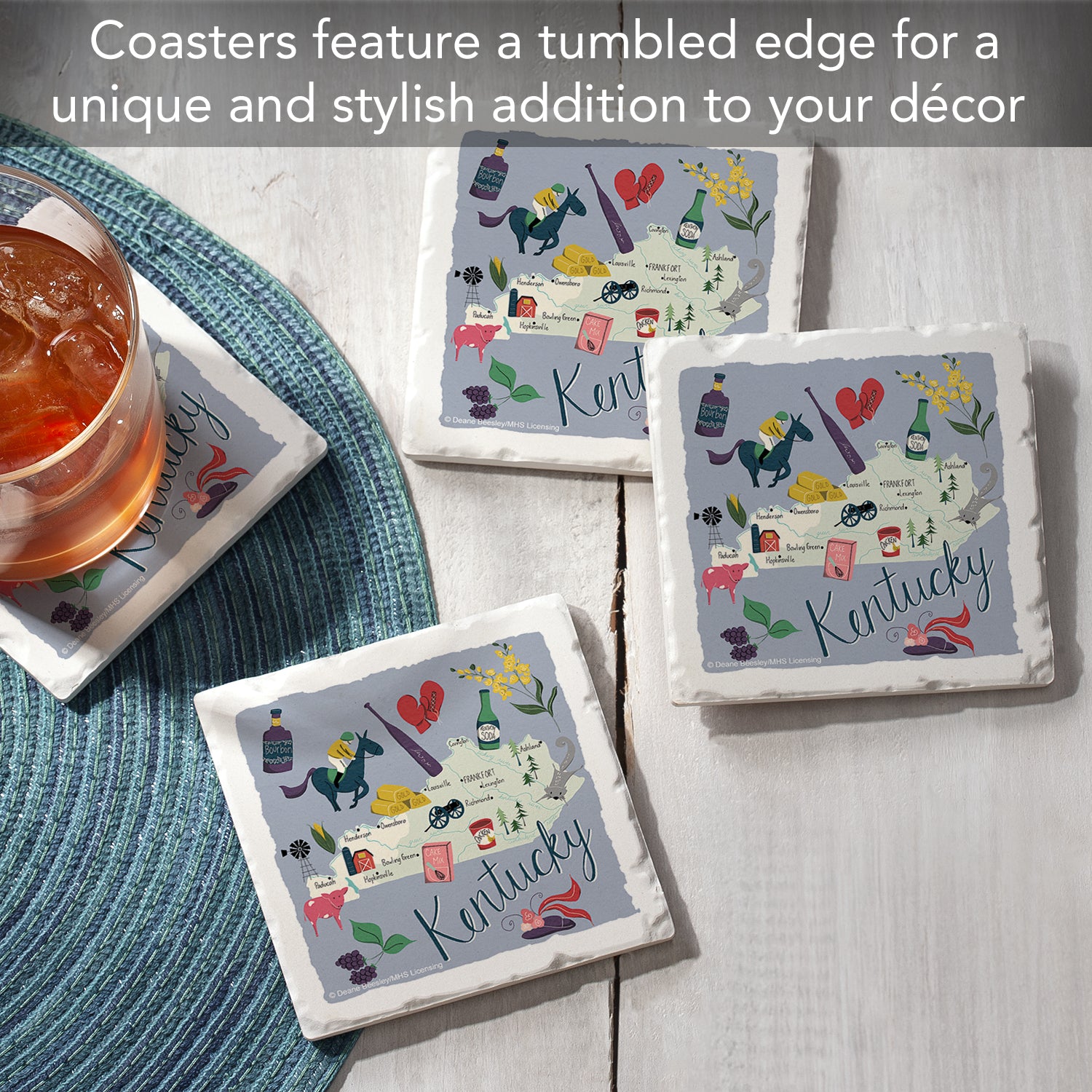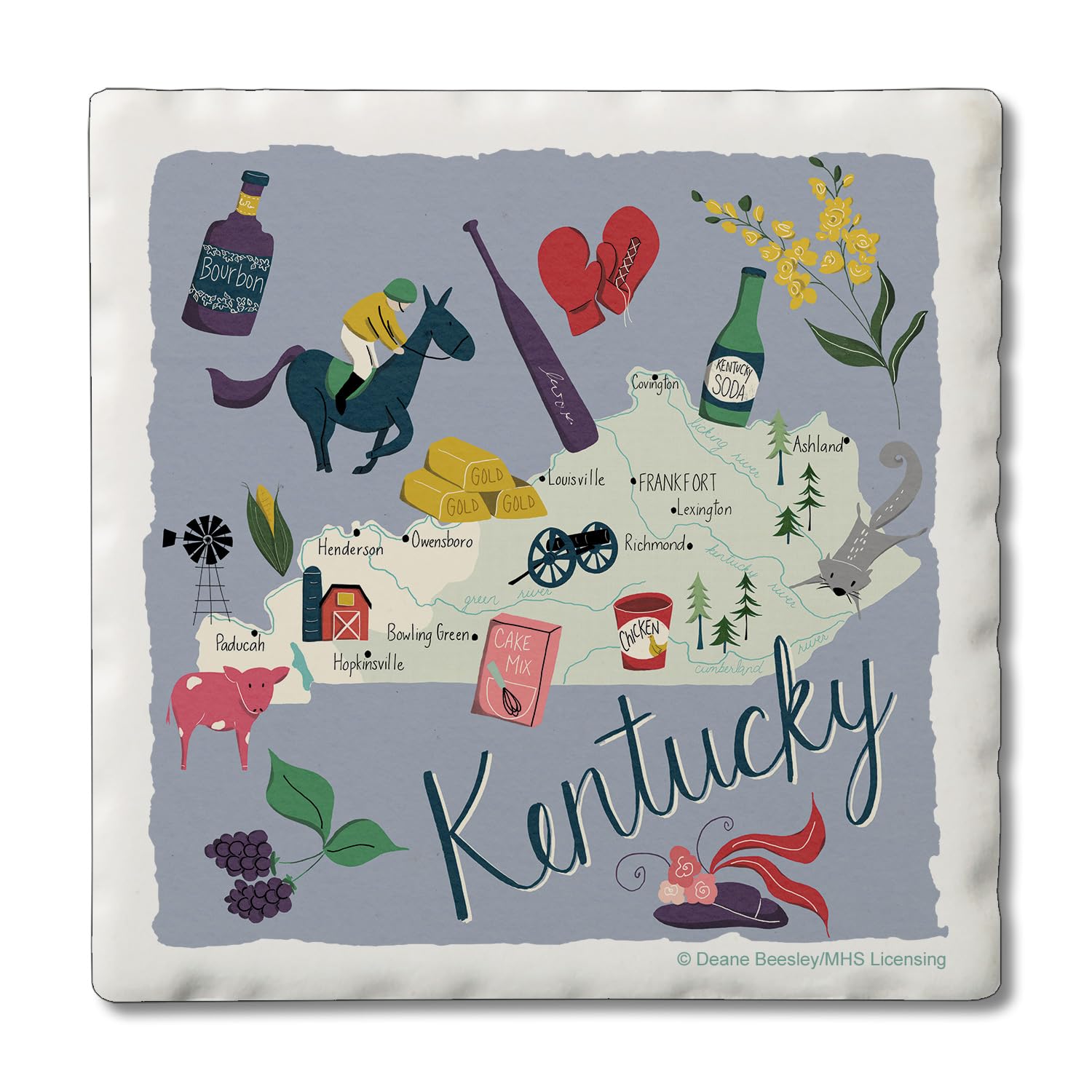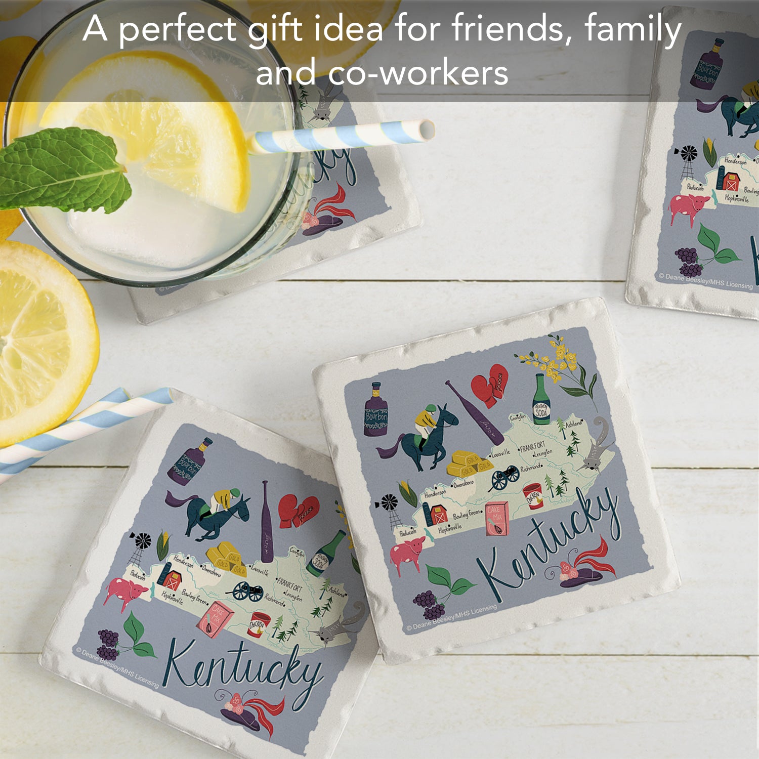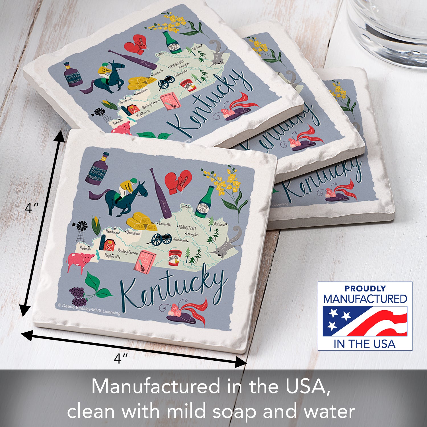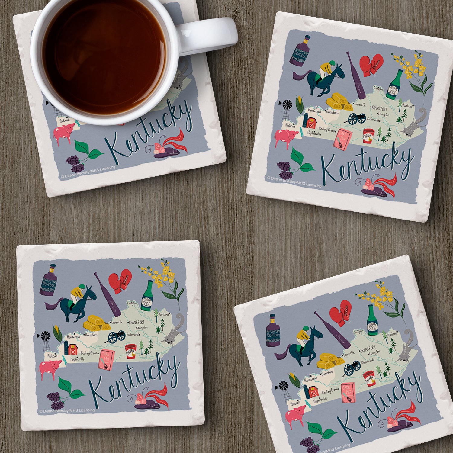 Thirstystone Kentucky Home State 4 Pack Tumbled Tile Stone Coasters 4" Square Manufactured in the USA