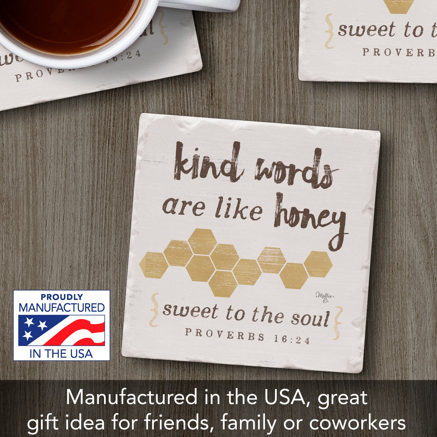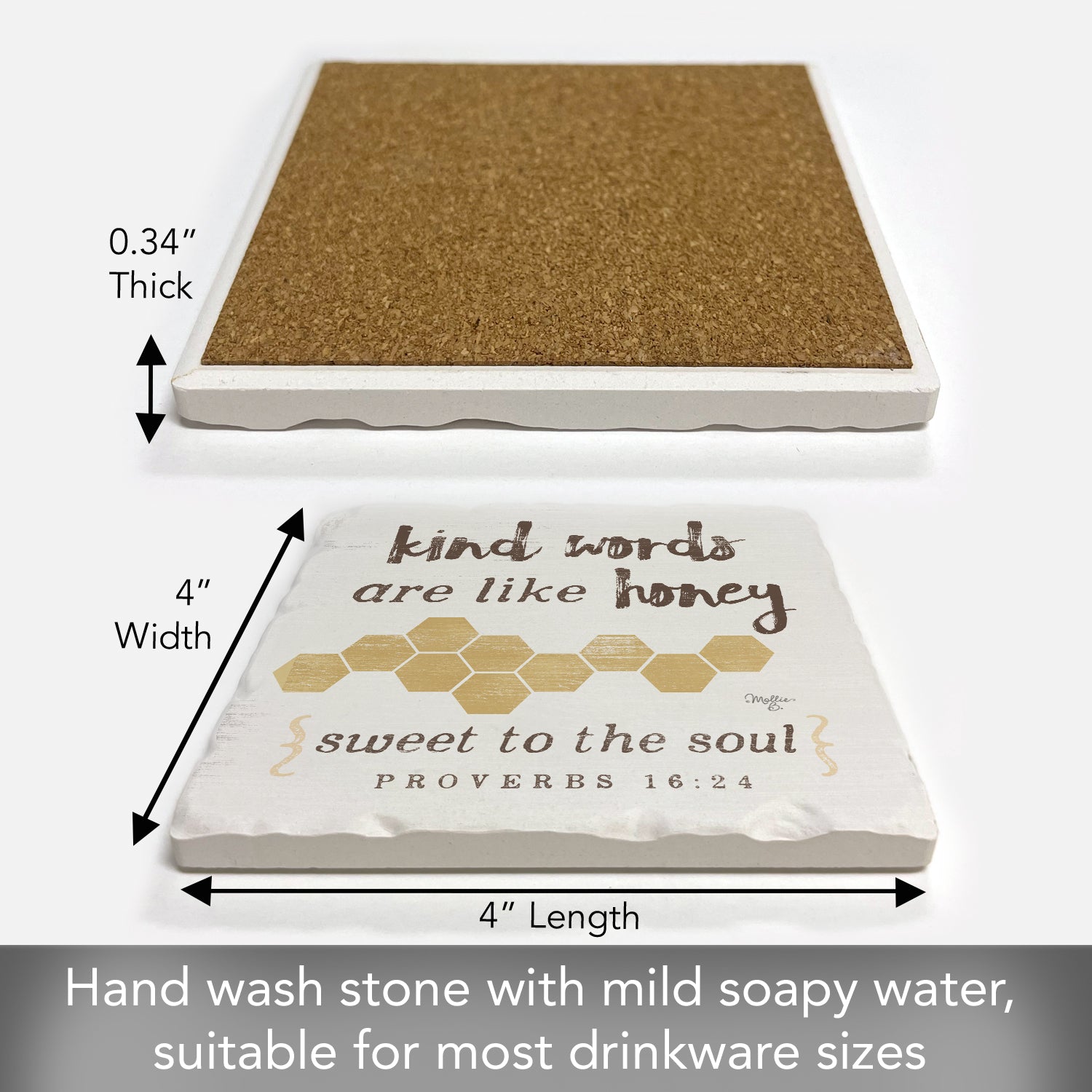 Thirstystone Kind Words Like Honey Single Tumbled Tile Stone Coaster with Protective Cork Backing Manufactured in The USA 4" Square, Artistic, Easily Wipes Clean