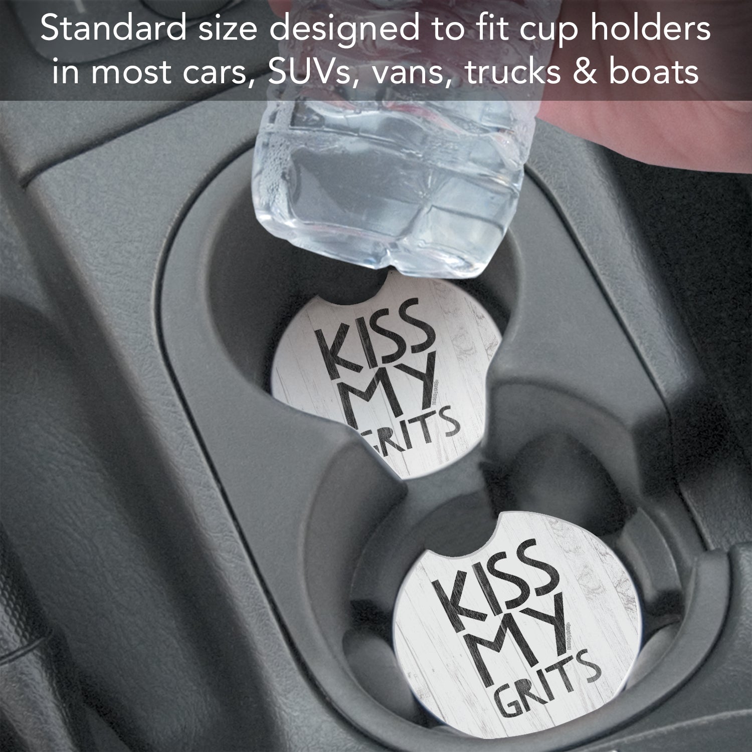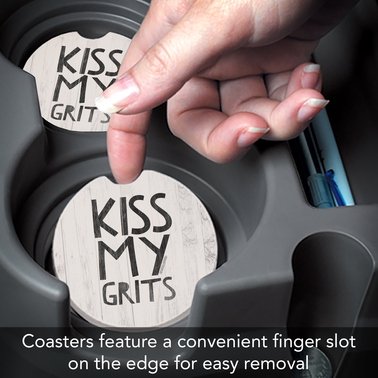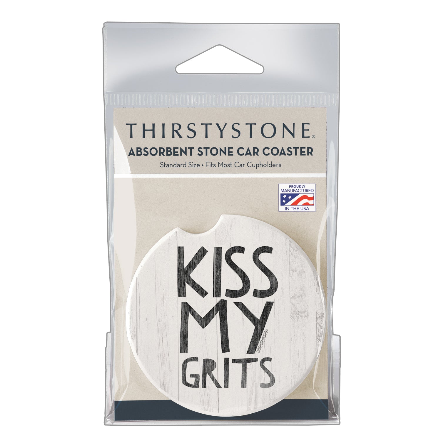 Thirstystone Kiss My Grits Single Absorbent Stone Car Coaster 2.6” Diameter Manufactured in the USA