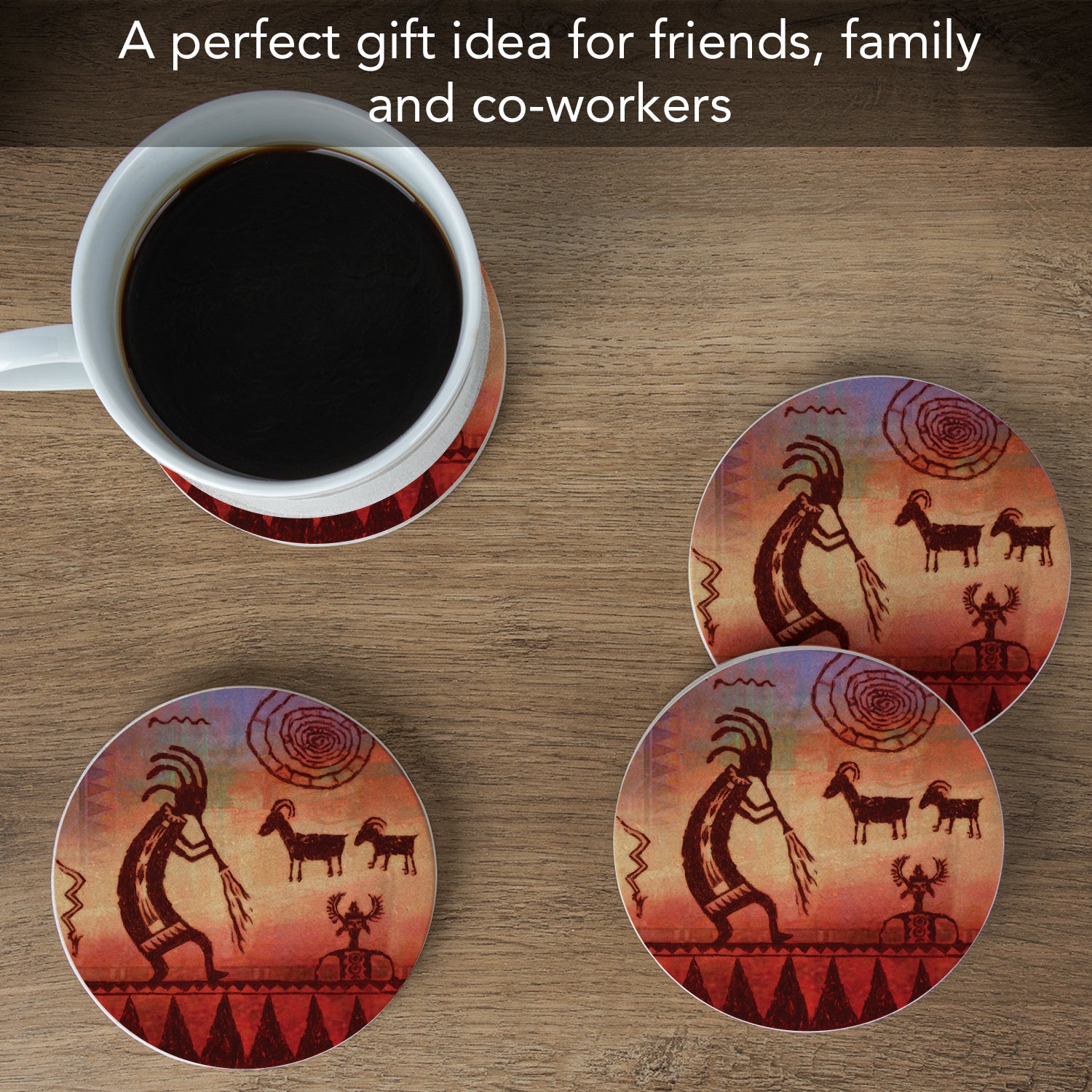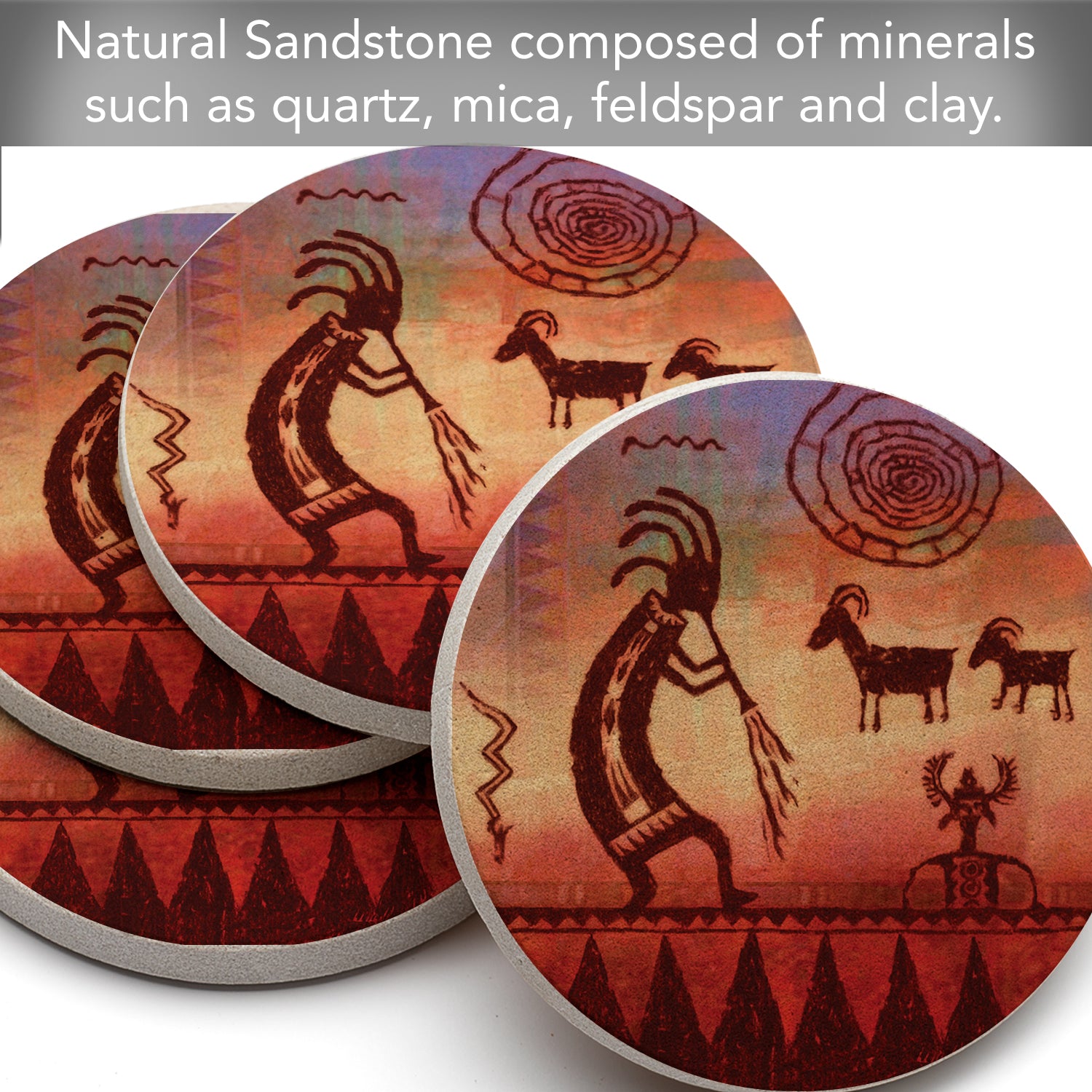 Thirstystone Kokopelli Petroglyph 4 Pack Natural Sandstone Coaster 4" Round