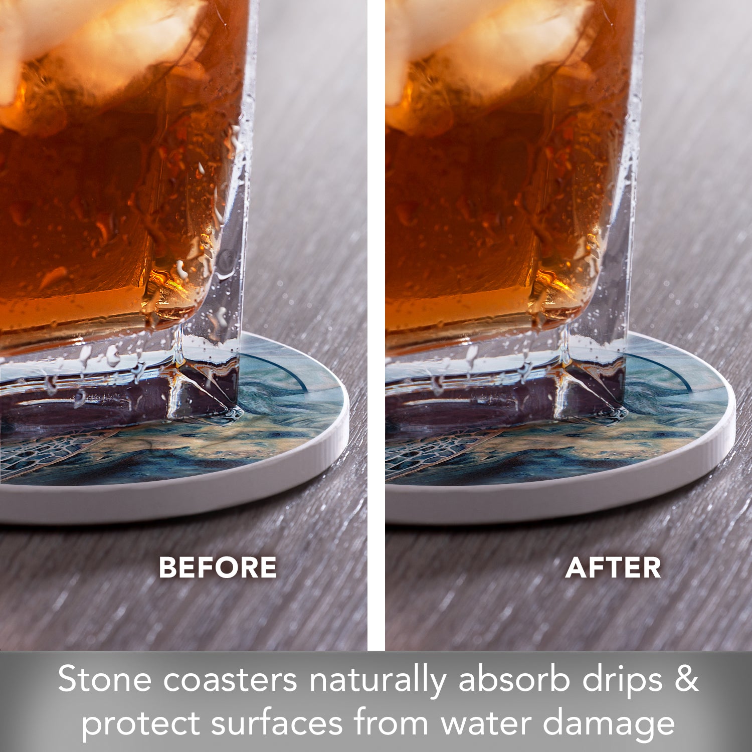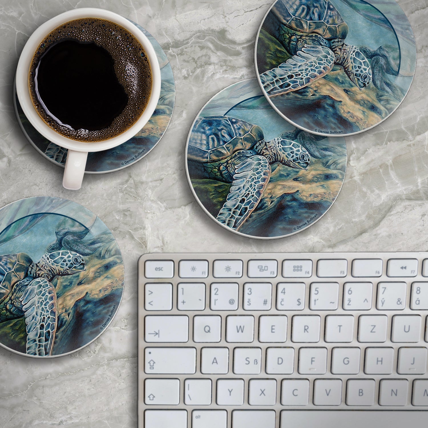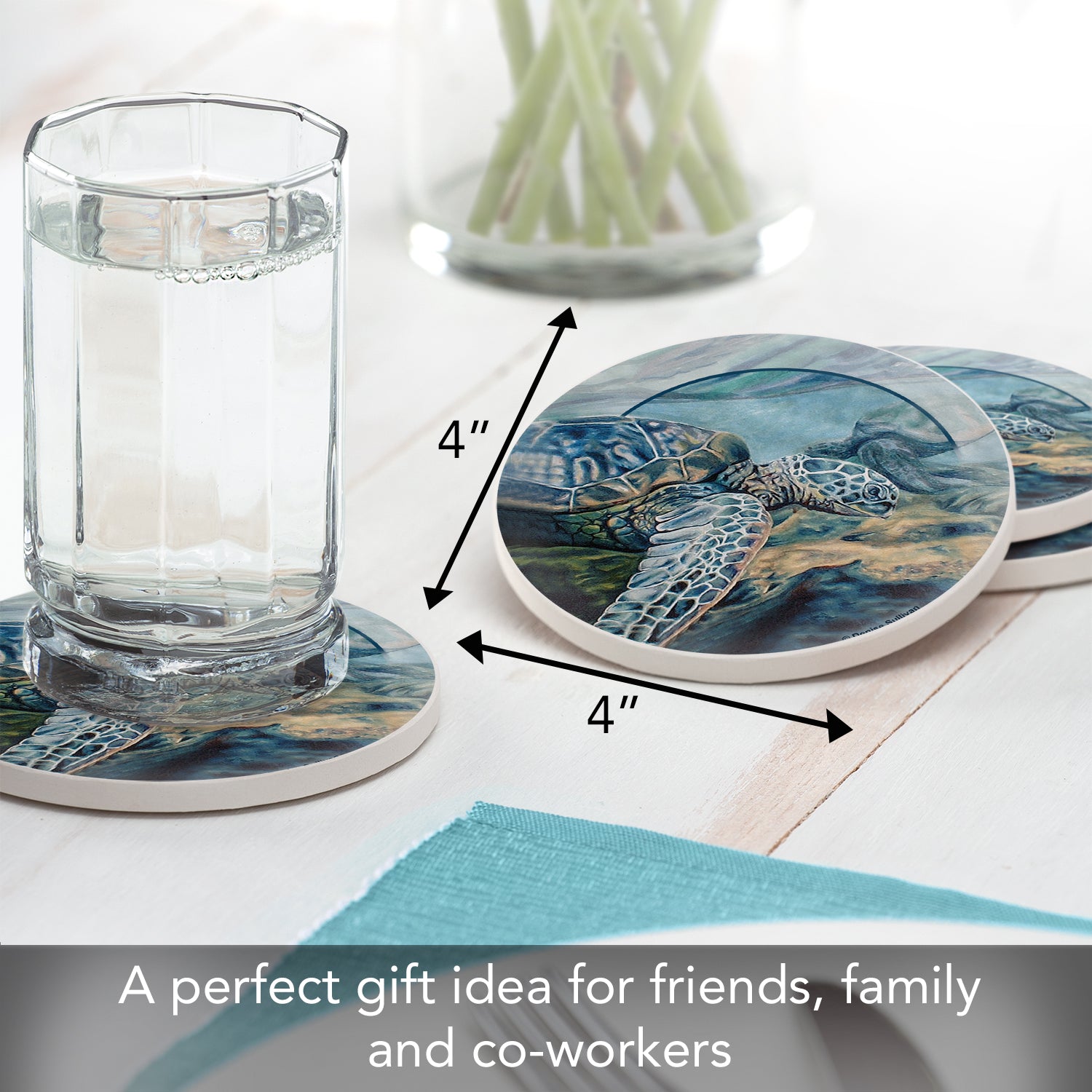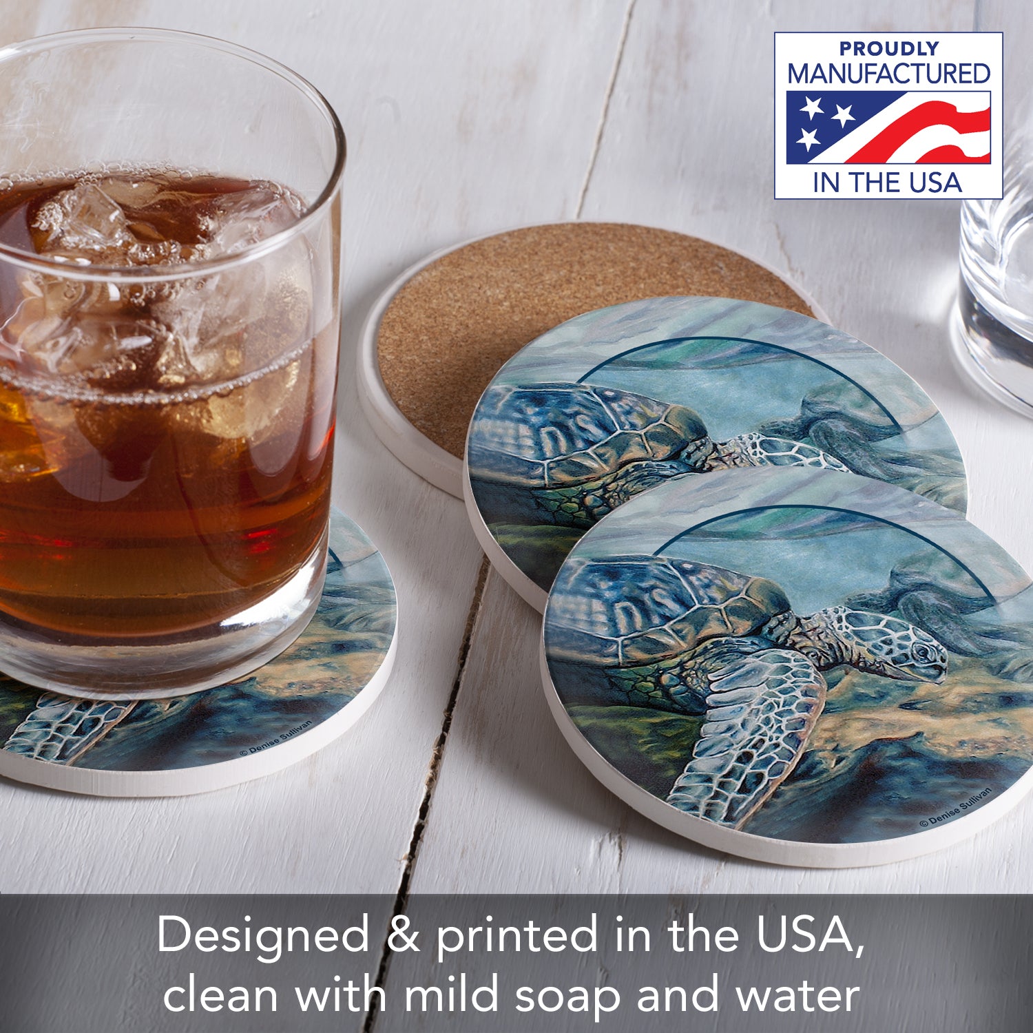 Thirstystone Kona Sea Turtle 4-Pack Round Absorbent Stone Coasters with Protective Cork Backing Manufactured in The USA