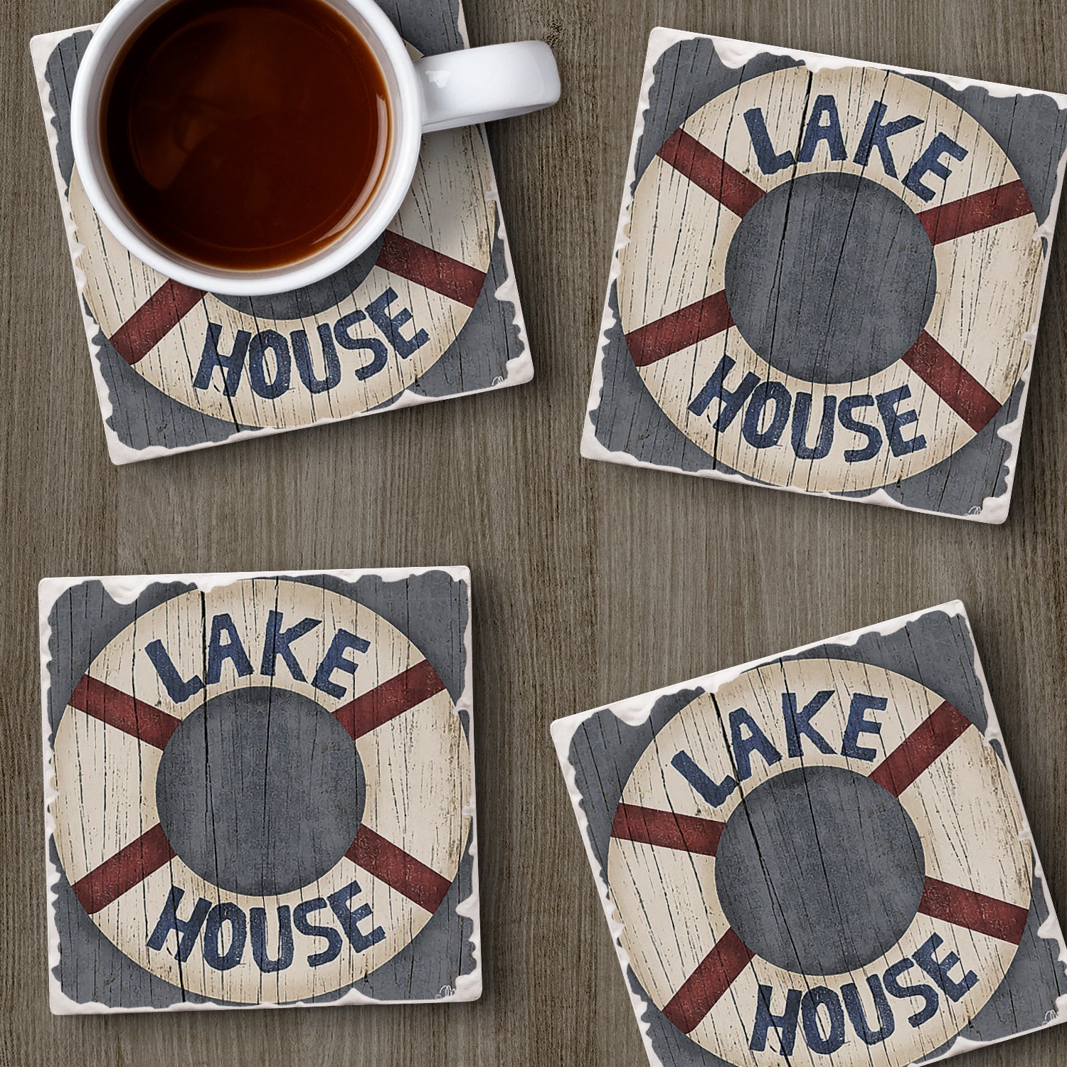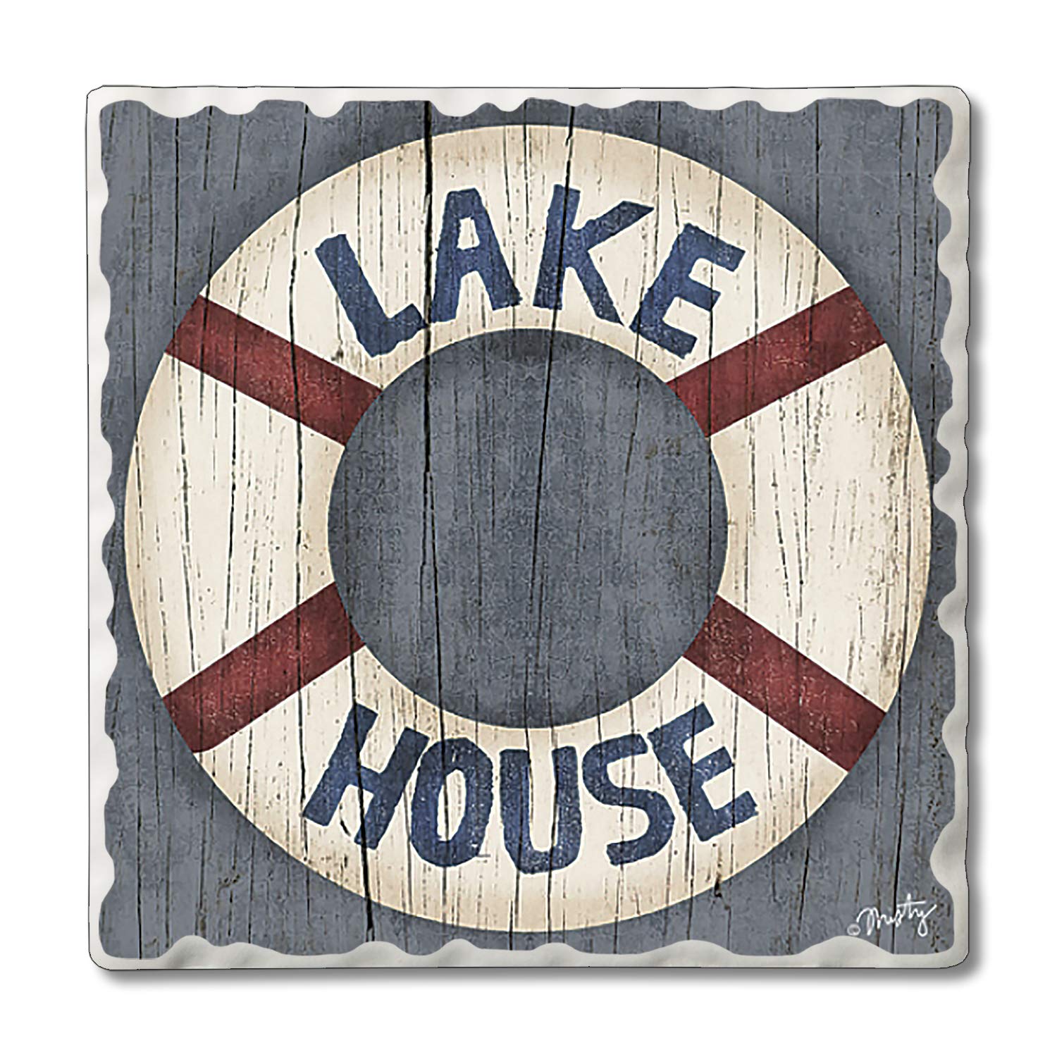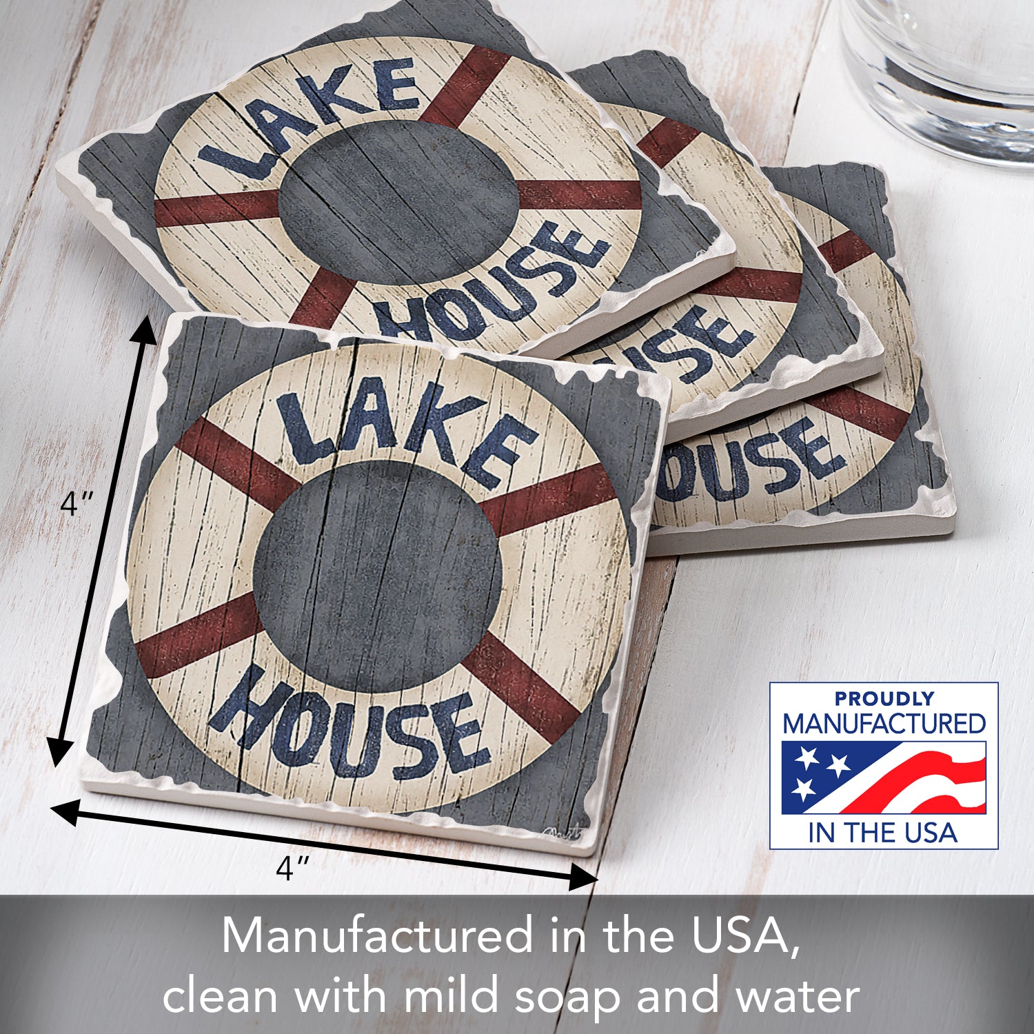 Thirstystone Lake House Preserver 4-Pack Tumbled Tile Stone Coasters 4" Square Manufactured in the USA
